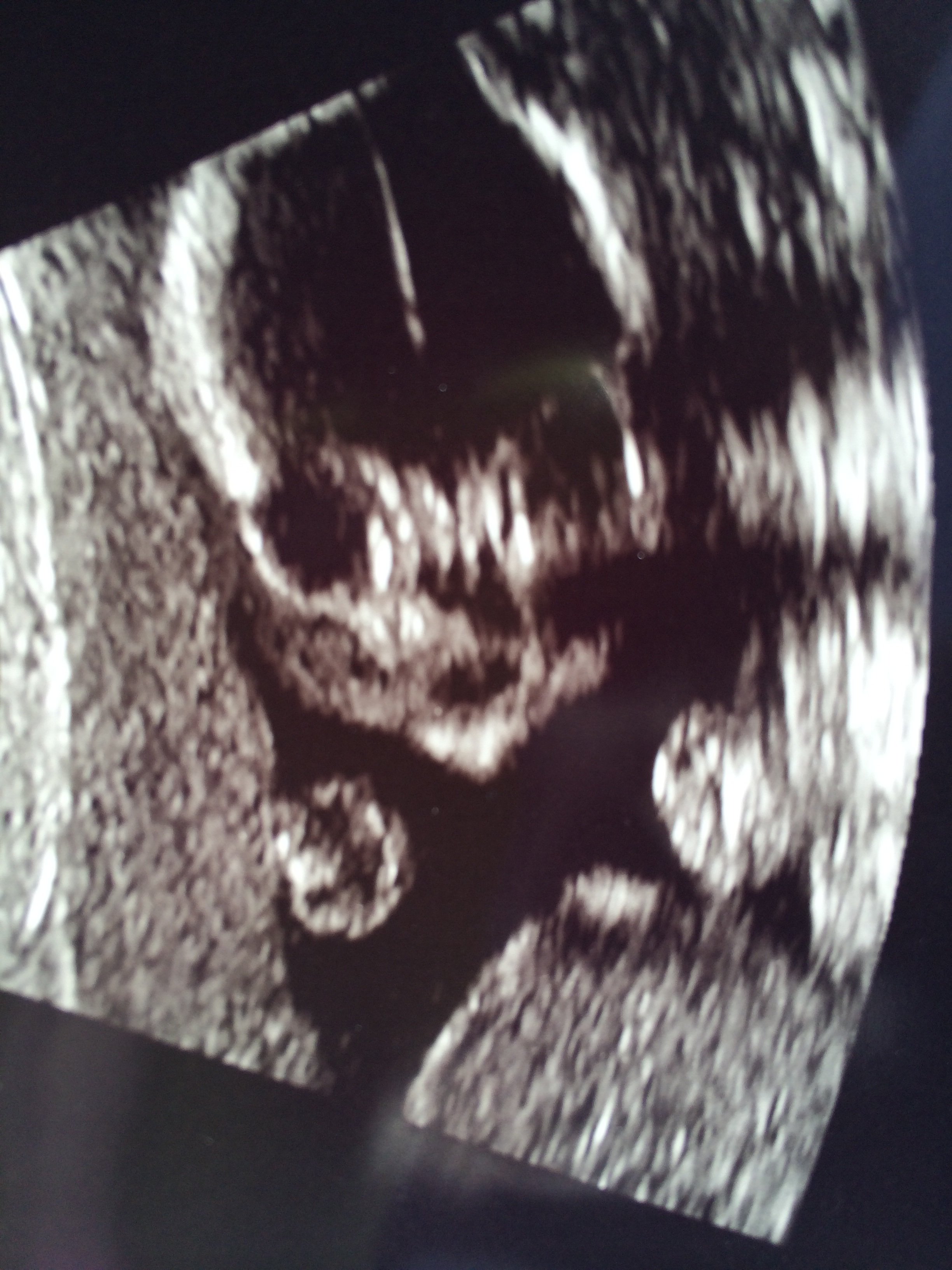 Appointment went well today. Baby was laying in such a way that it was hard for the tech to get a good view of the heart and face. We go back in 4 weeks to see if we can get some better shots and have the Dr. look at all the measurements and review them with us. I don't like to worry until there is something to worry about so I'm looking forward to seeing baby again in a month. I do have one pretty cool picture where baby looks like a demon, so there's that. We are officially Team Green - we told the tech that we didn't want to know today, but asked if she would put it in a sealed envelope for us. (I'm committed to keeping it a surprise, but still wanted that U/S pic that said "boy" or "girl" for posterity. Is that weird?)
