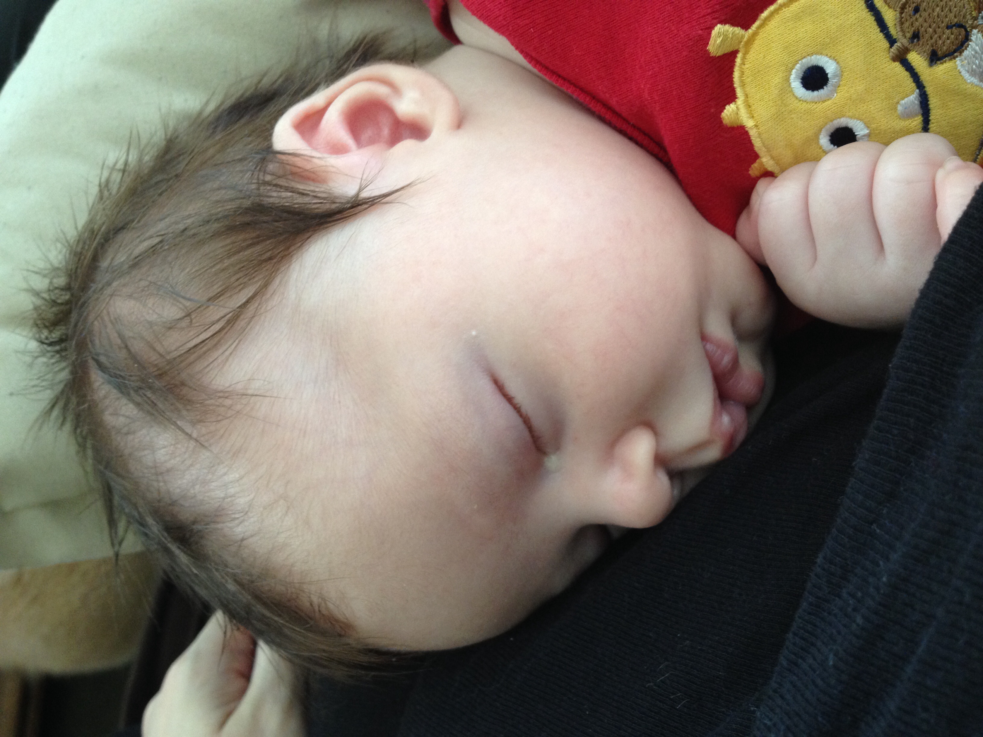 I love these pics! So many adorable squishy faced babies!!! Here's a close up of my DS smiling in his sleep