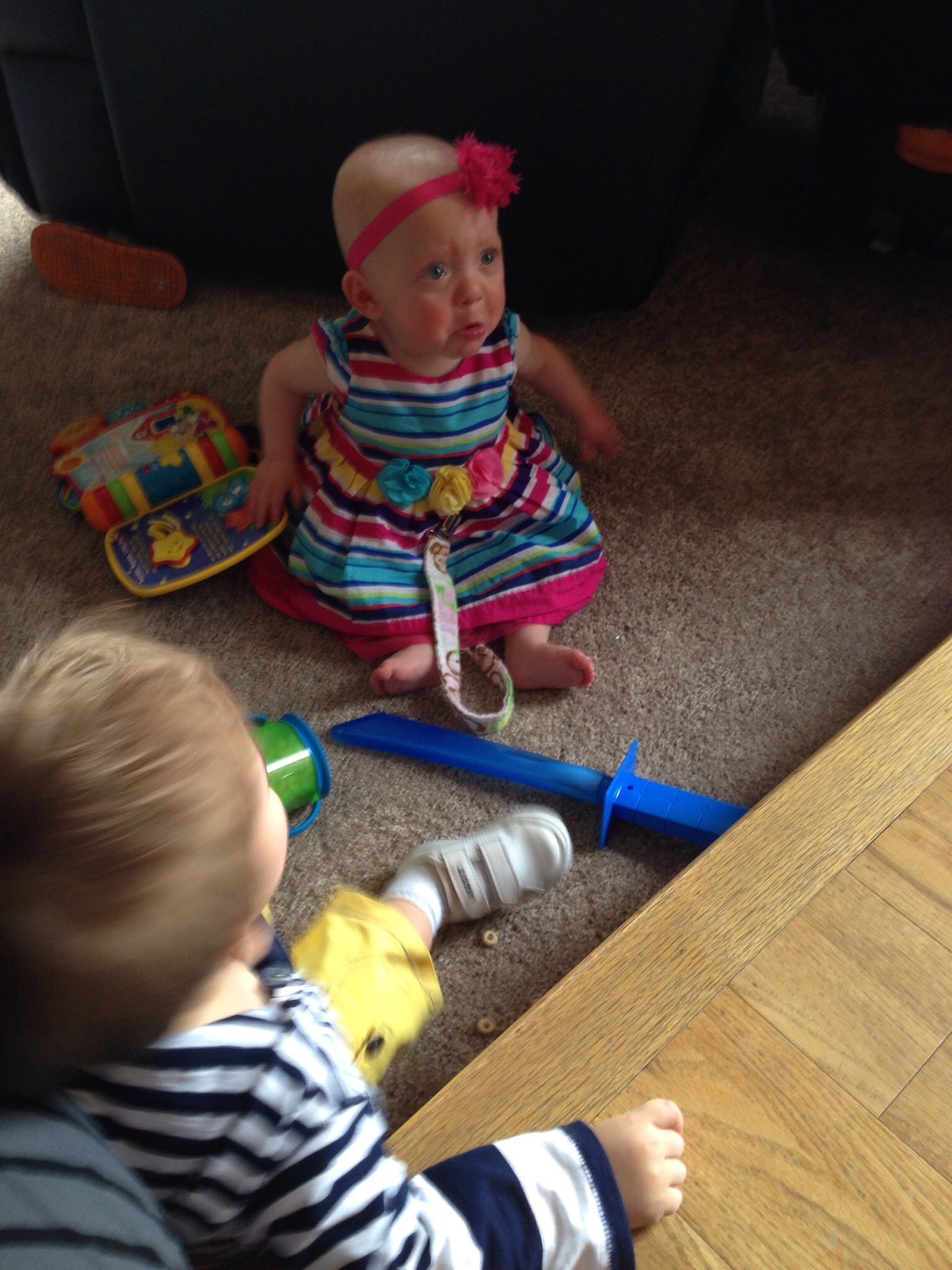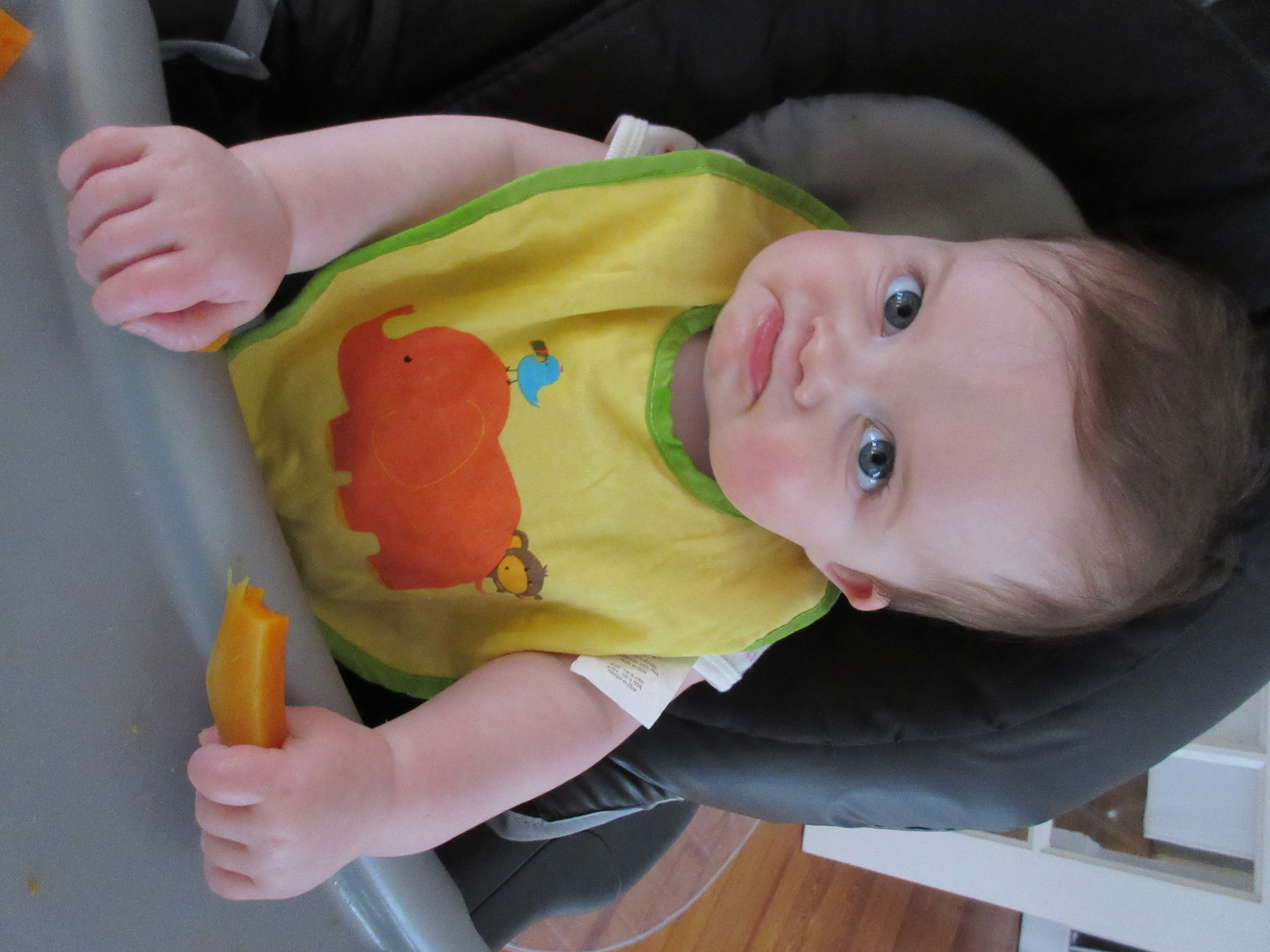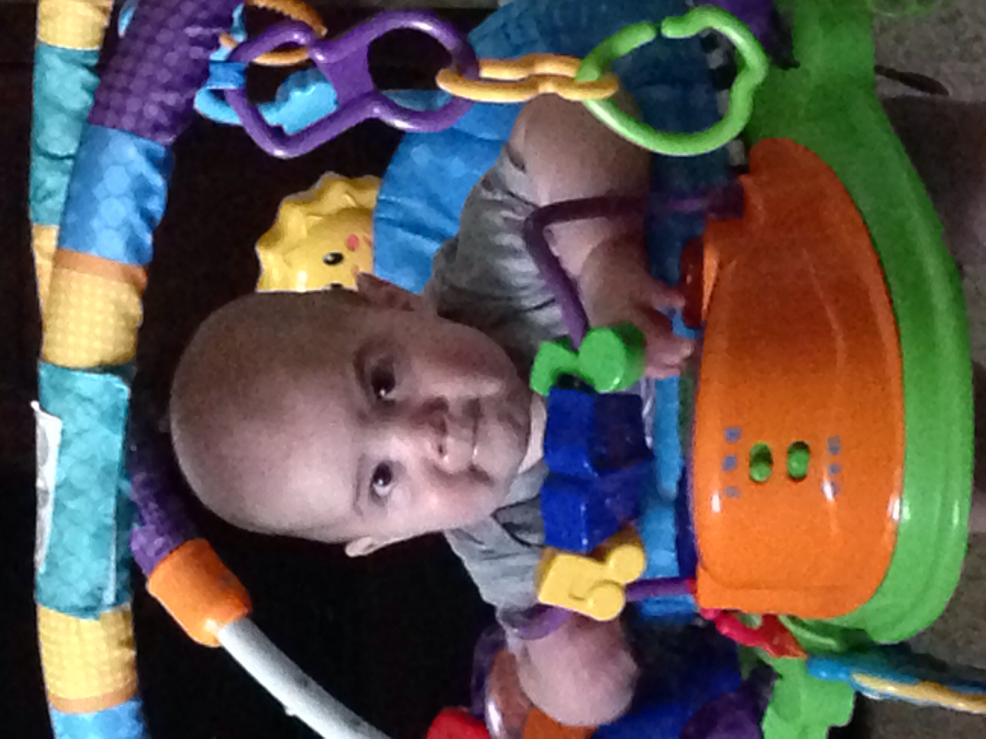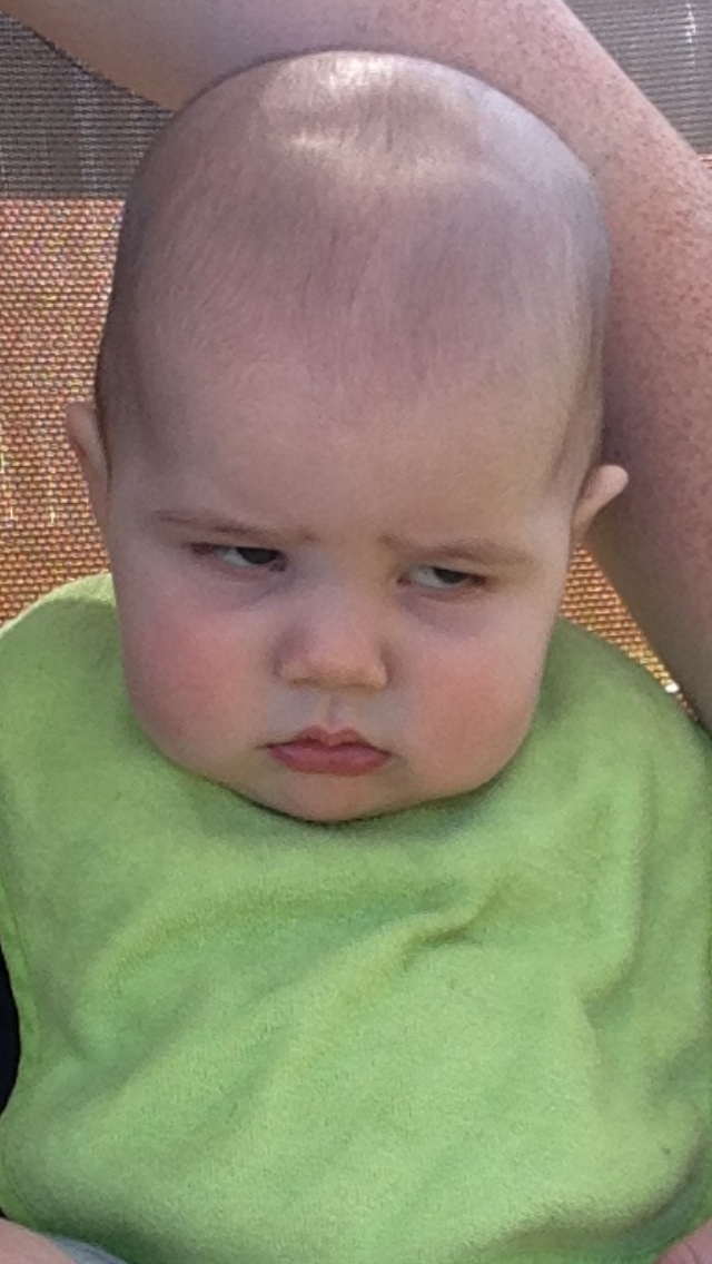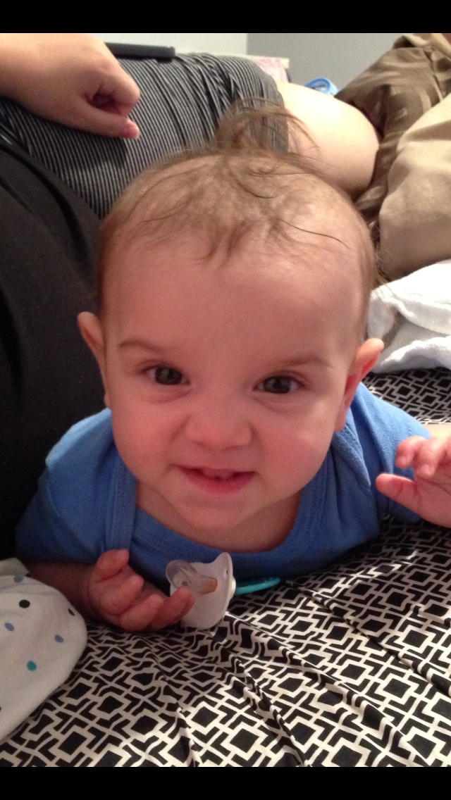 Hard for me to get funny faces bc DS grins like a fool when he sees a camera. Think he gets his picture taken much?? I do find this one funny from a couple of months ago. Looking like a bad ass in his boppy.