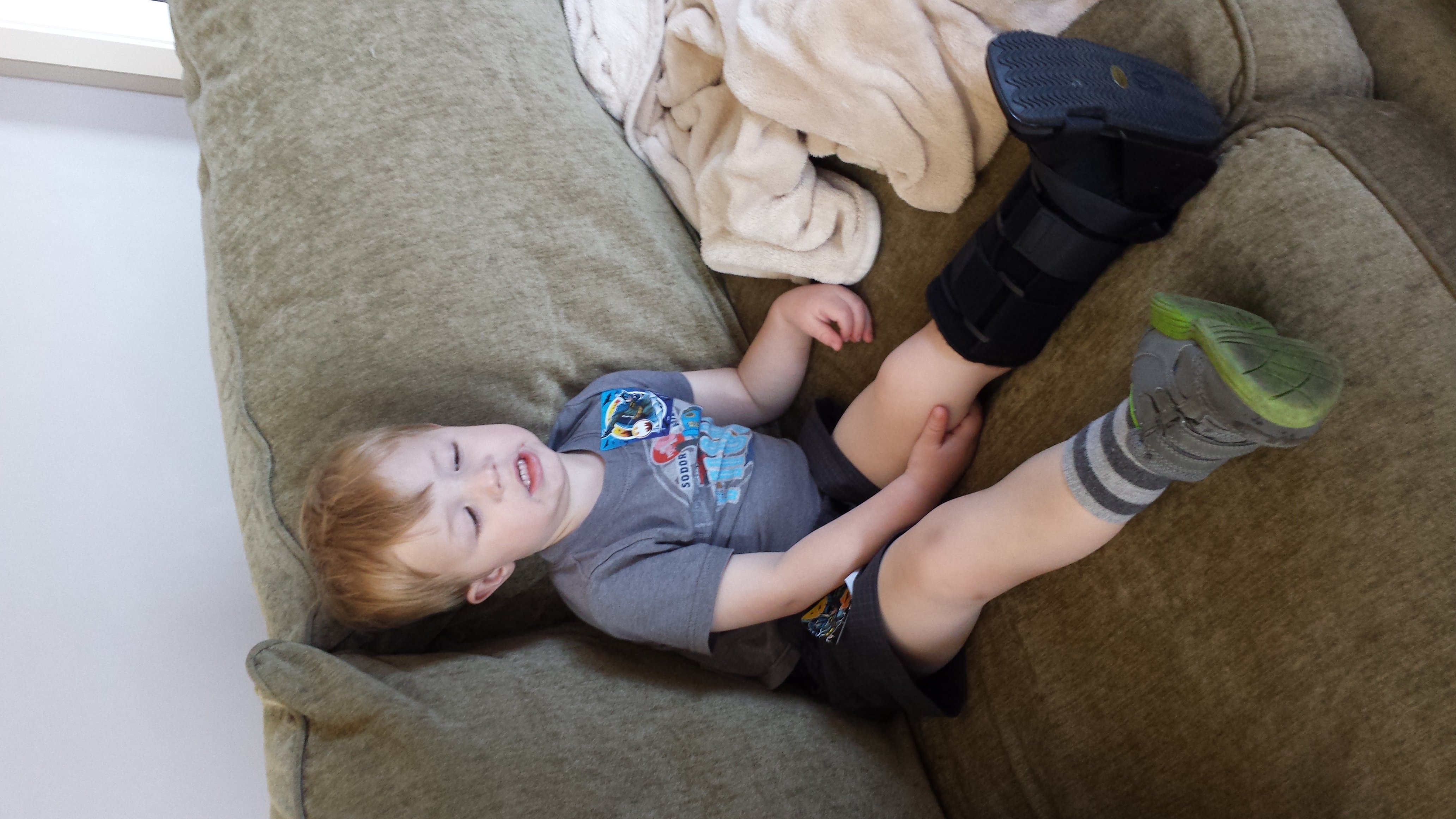 • He loves his boot. All the older boys on our street were oohhhing and ahhhing over it this morning. He needs a good war story to go with it.