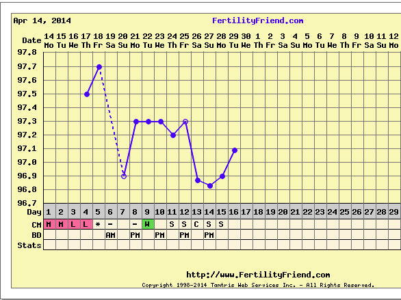 @NittanyMama I had a crazy low temp today too. Hoping your chart evens out soon!