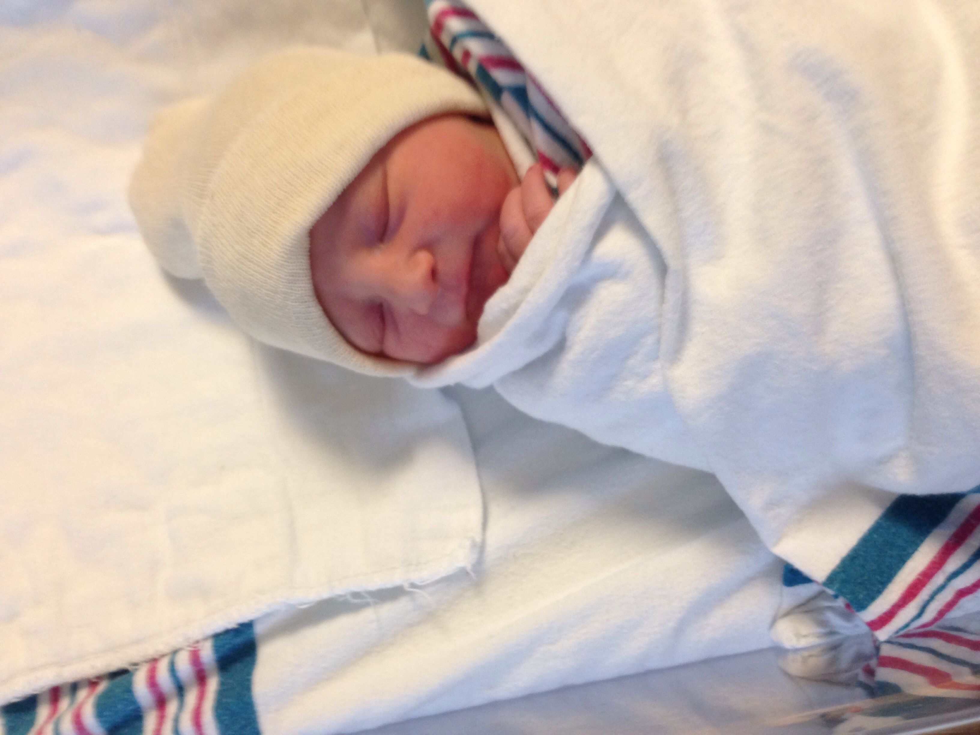 His name is Victor James and he was born at 3:29 PM yesterday at 6 lbs 15 oz and 19 1/4 inches. Here is a pic (not the best) and I'll try to update with more later: