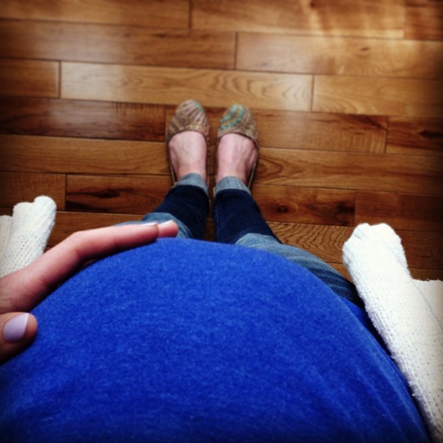 It's probably only noticeable to me, but I think the left side of my belly sticks out a little more than the right. I also notice my back is generally sorer on that side and I can't bend to the side as well in that direction anymore. I think this kid is pushing everything over to my left!