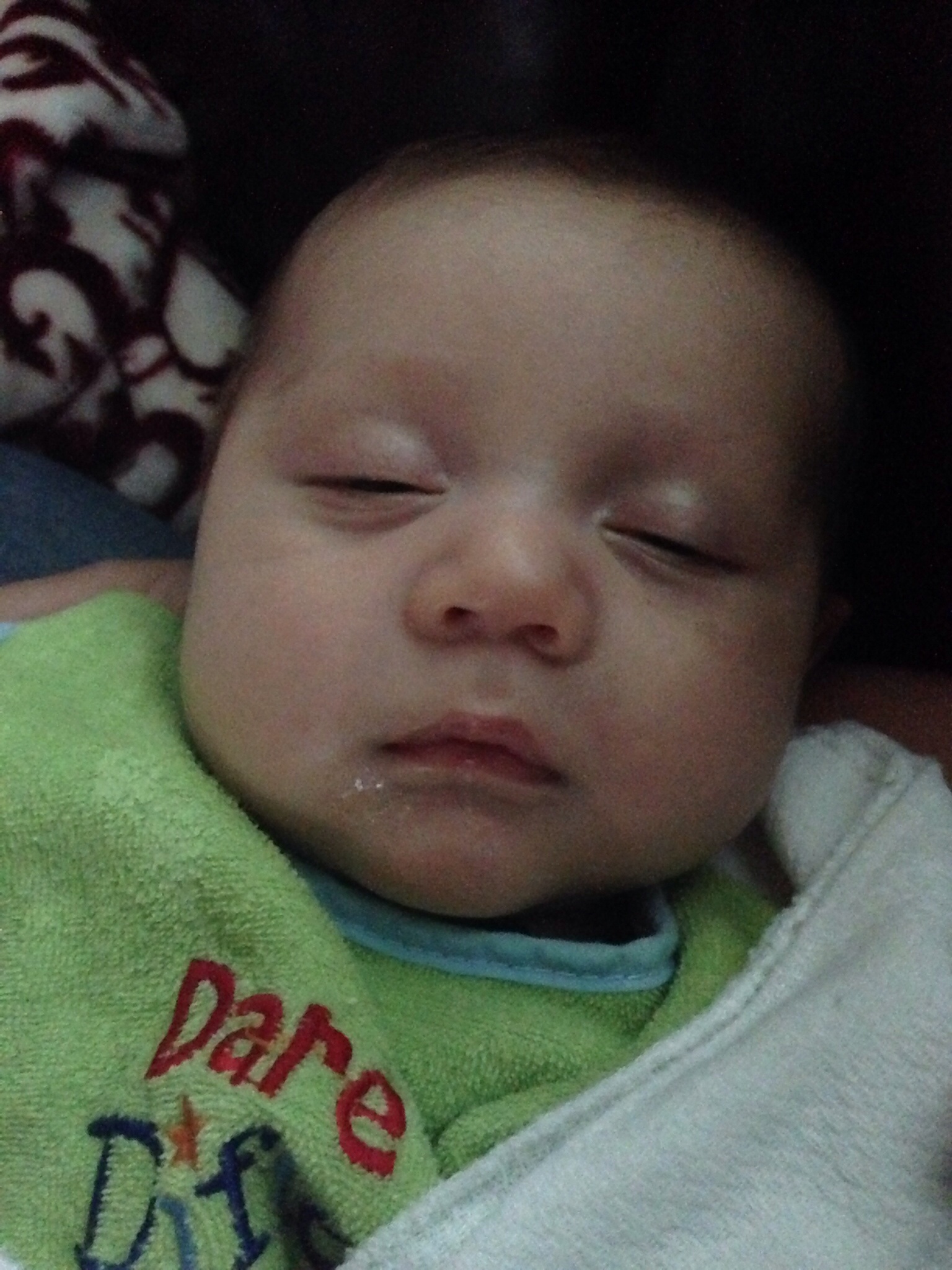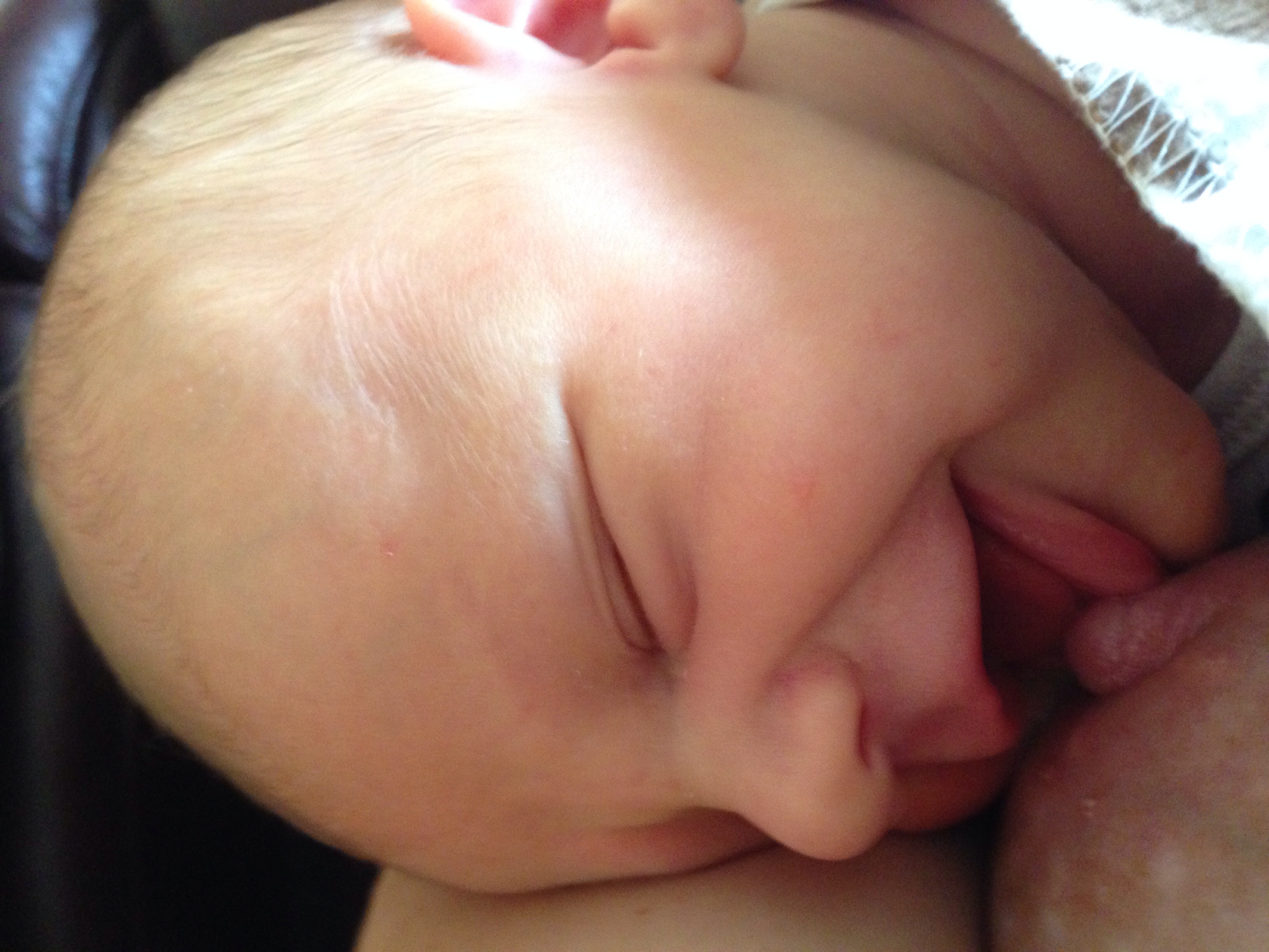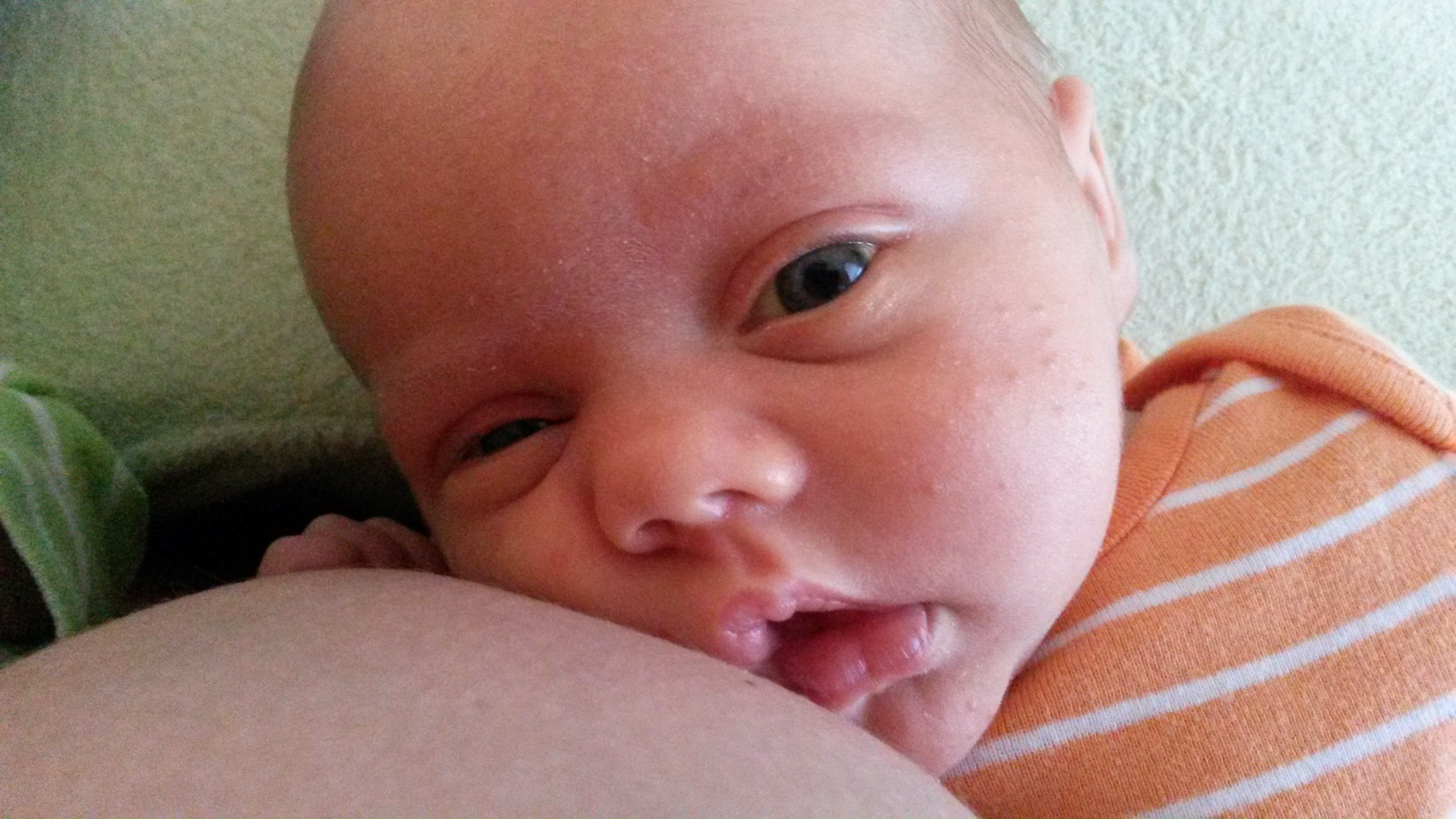I love the milk glisten on the chin & the fact that his eyes are barely open. I wish this photo had sound because he was making this really low hum-like grunt that quite obviously meant he was so full. Lol!