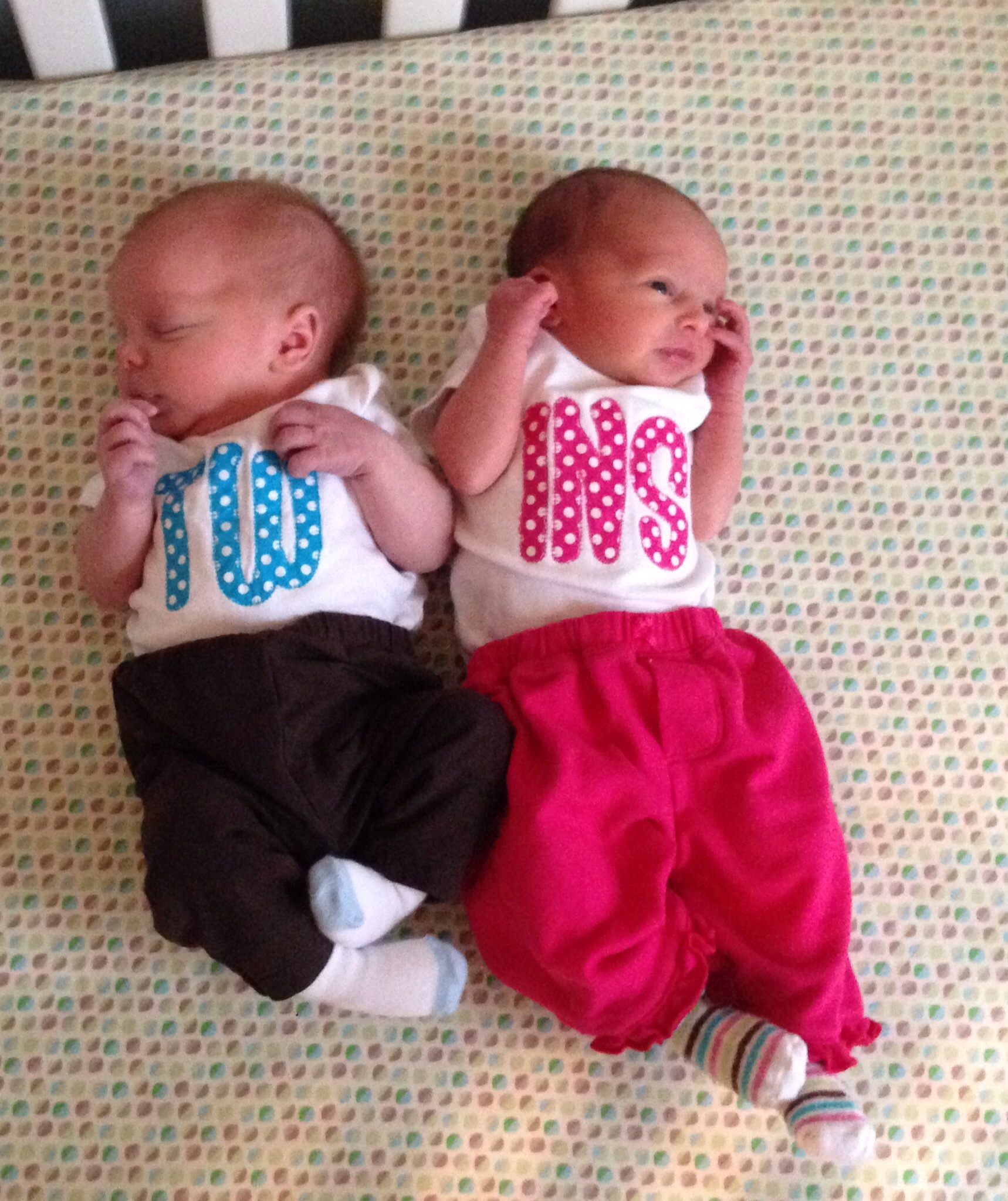 So I announced on my BMB and on the loss board, but I completely spaced telling you lovely ladies about how my little rainbows were here! You all have been so much help to me through this pregnancy I thought I'd share my little sweeties with you!