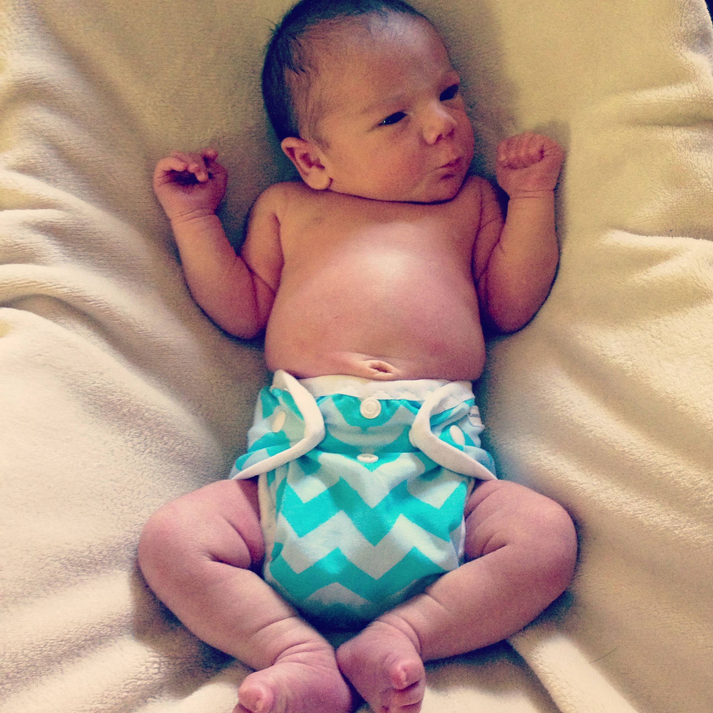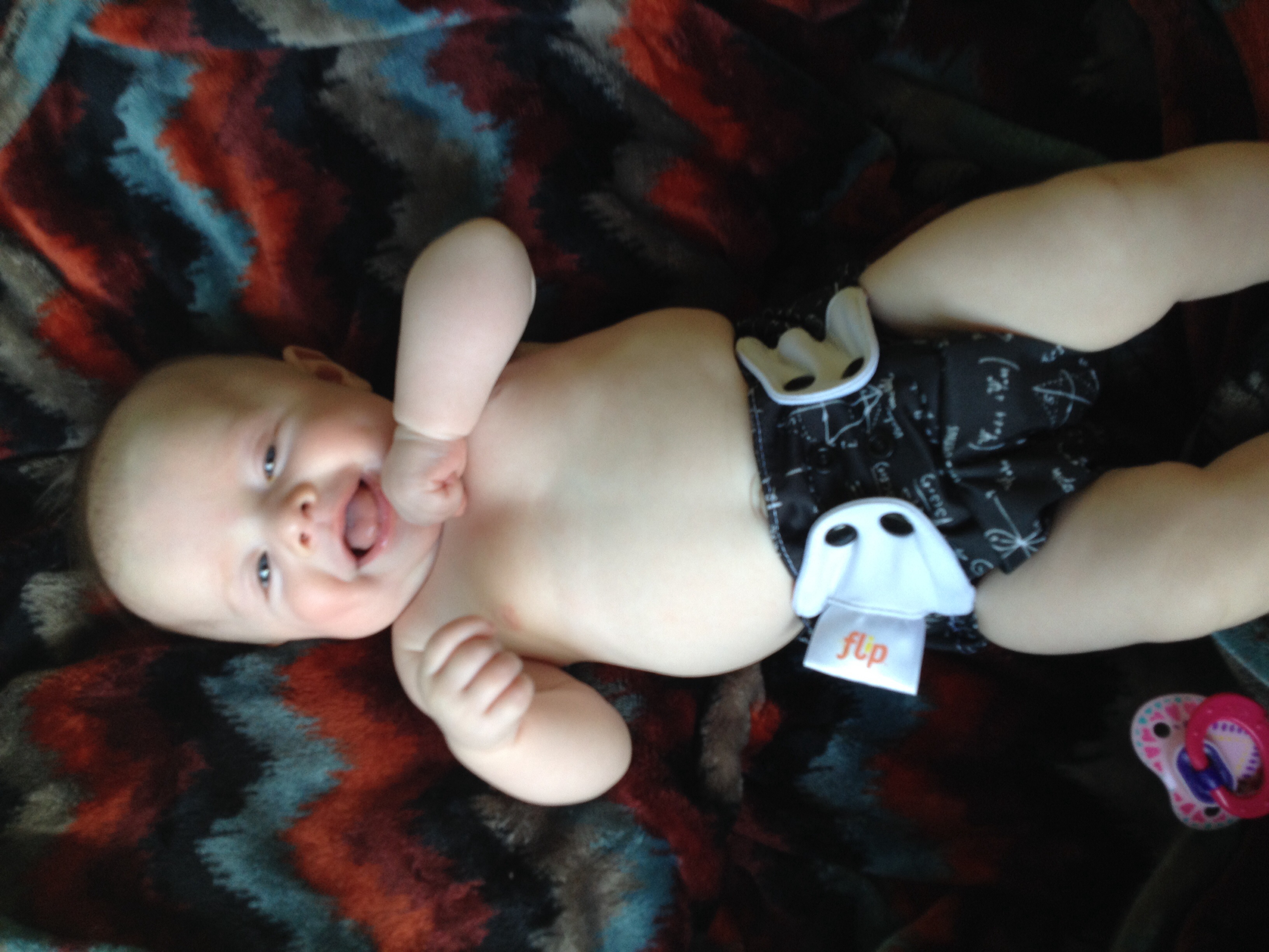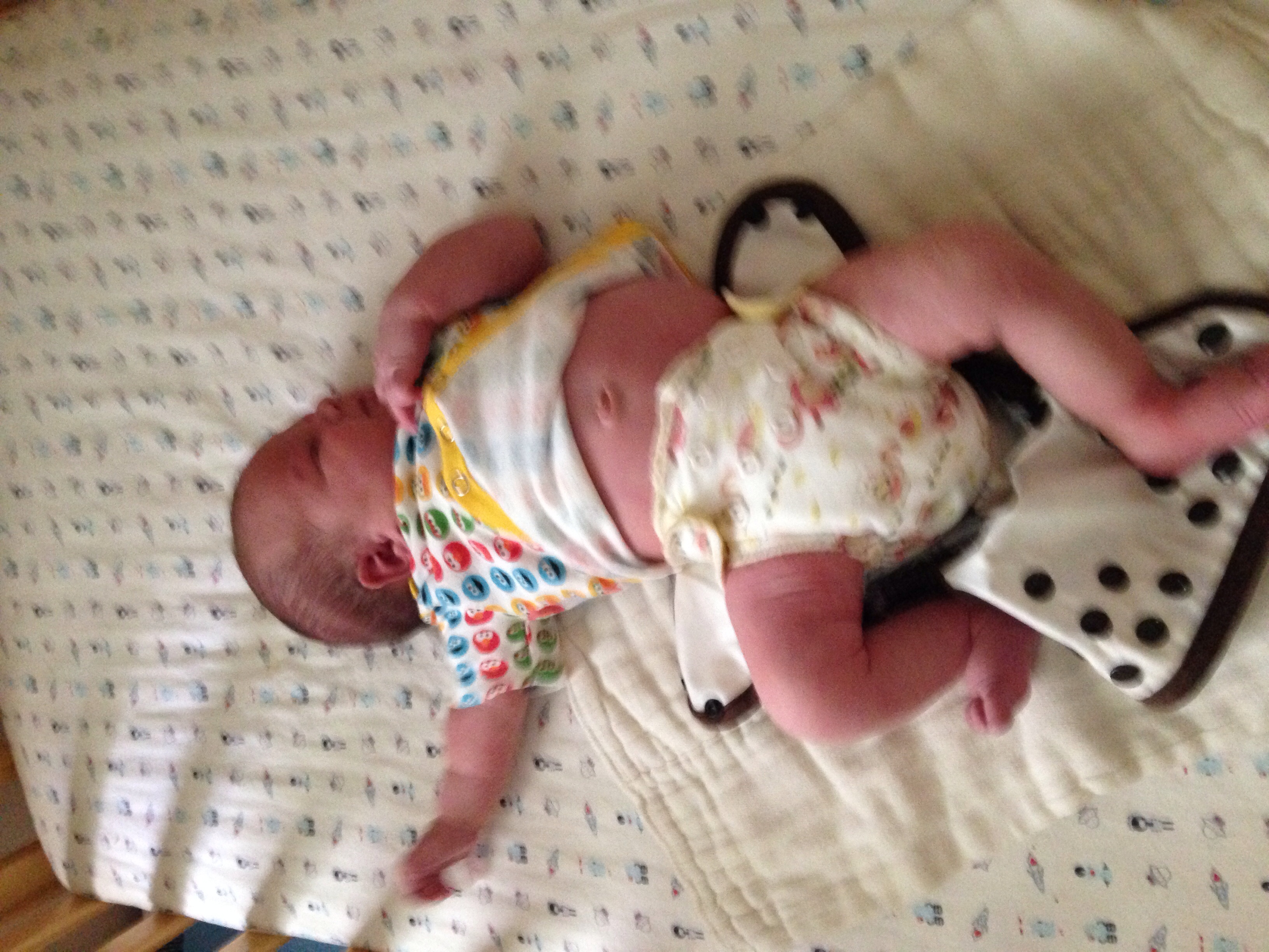 Nothing exciting diaper wise, just one of our BG 4.0s, but this is the first diaper I am trying on the medium rise setting. On the smallest rise they were starting to ride low, so I'm going to give this a try. No leg gaps so I'm hoping it will not leak on Isaac.