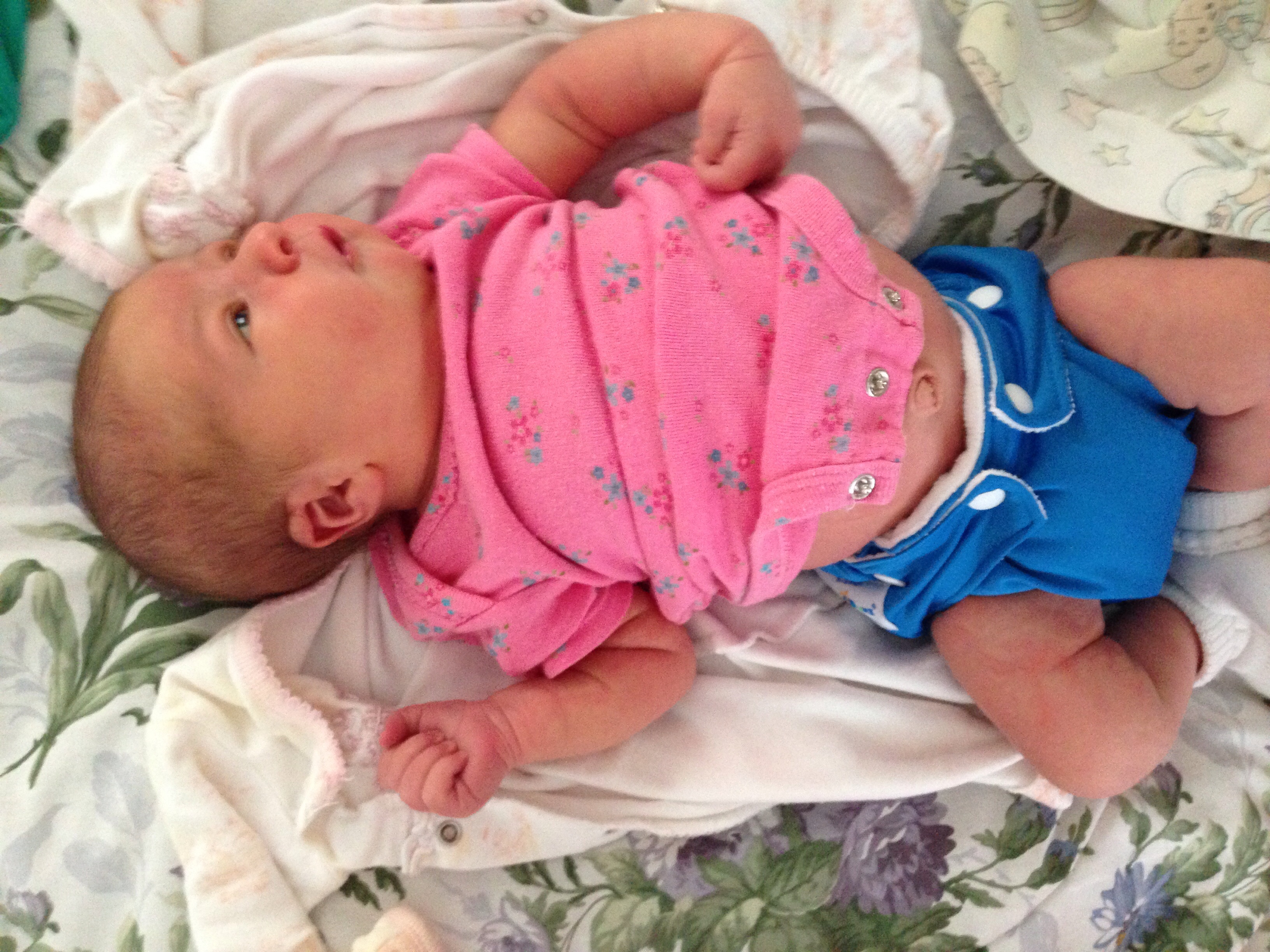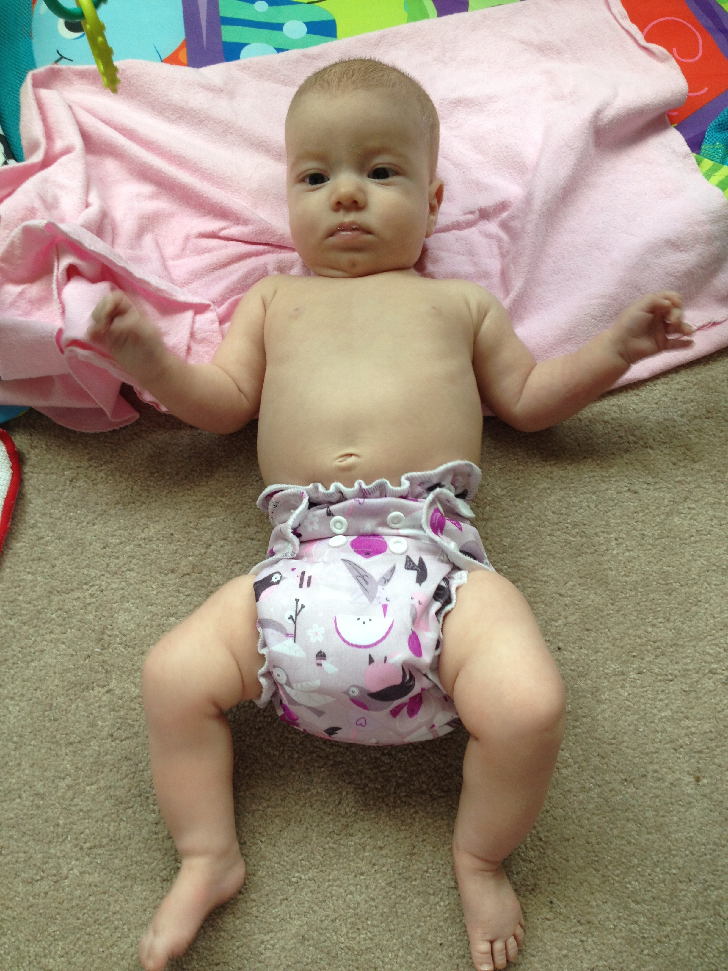 Here she is in a fuzzibunz xs dipe. Not my favorite. Much prefer my fitteds and rar NB covers.