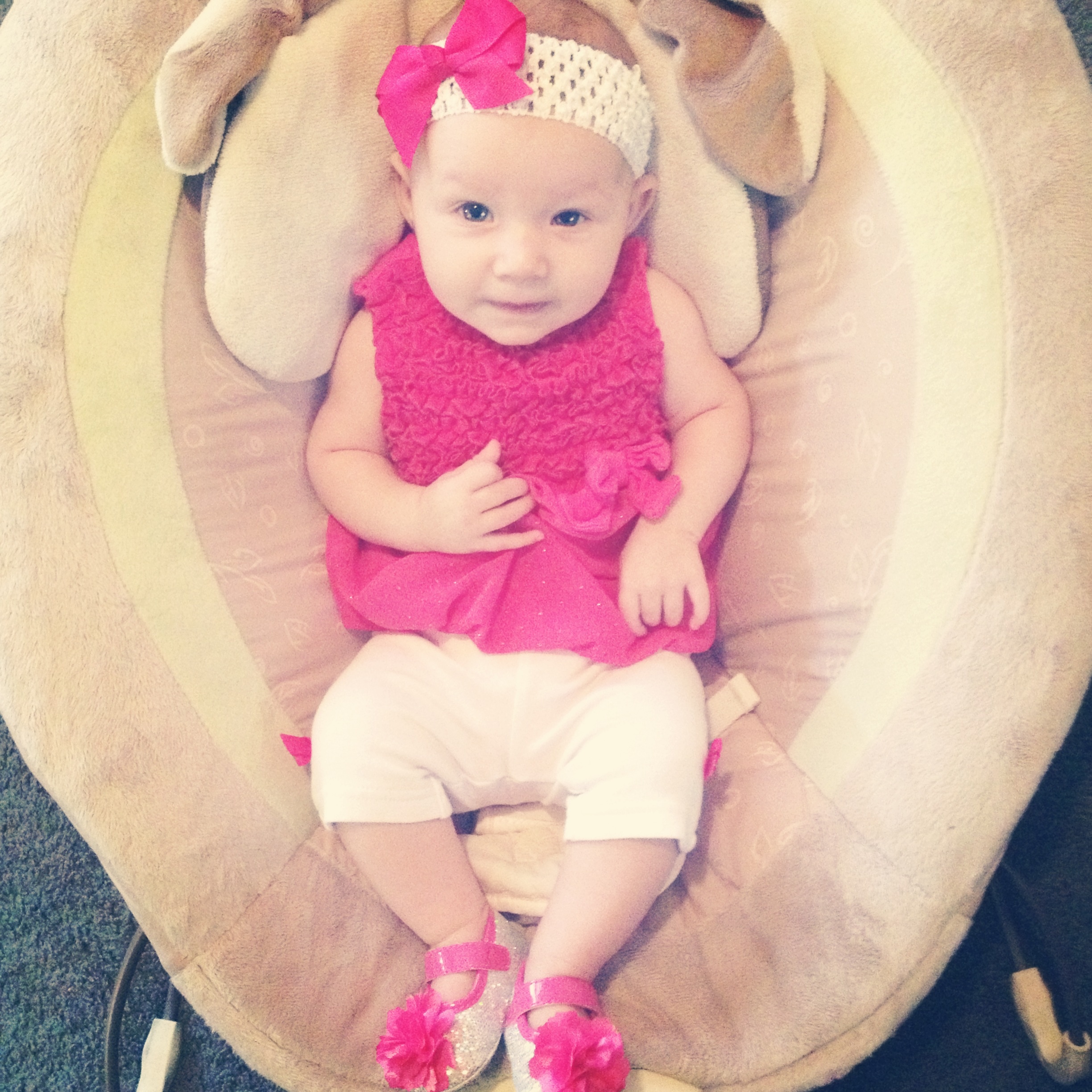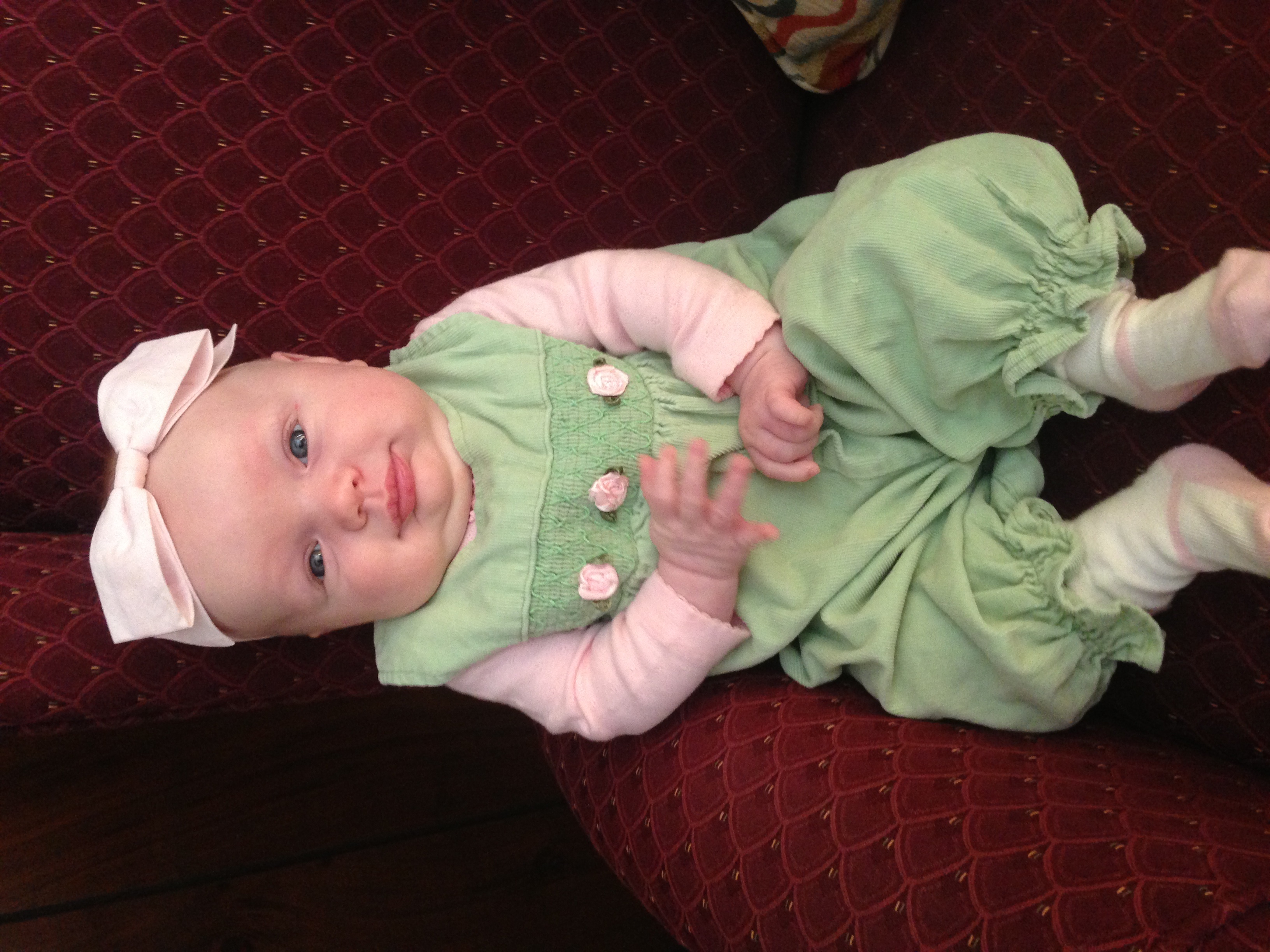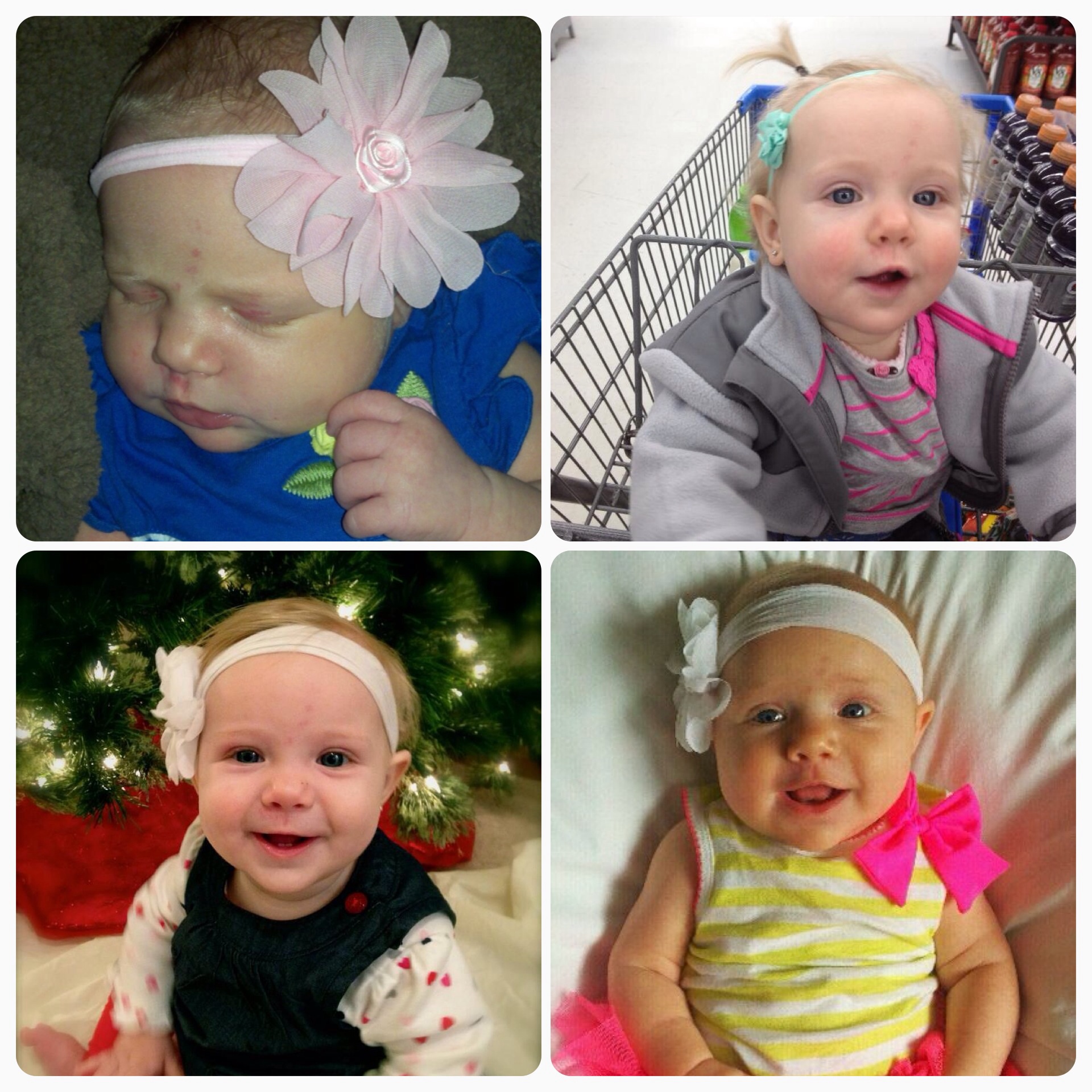 And I always put a hat on her when we go anywhere so she has lots of cute hats that she wears to match outfits instead of headbands. It's too darn cold here to not have a hat on!