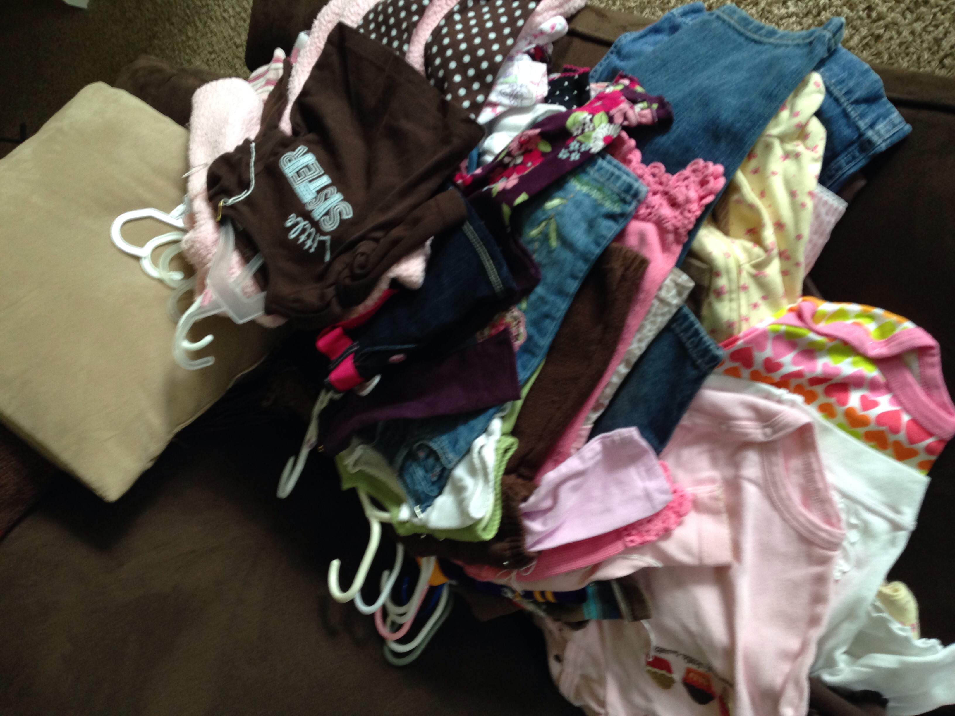 So for about $100, I got about 50 outfits / pieces of clothing and the promise of a double stroller. James whole summer wardrobe is set, plus tons of stuff for baby girl.