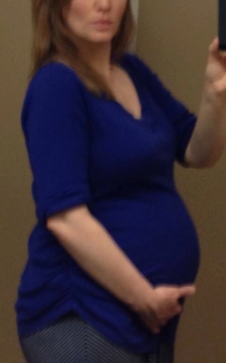 I can't even believe that it is here!  V-day at last. To celebrate, I took this horrible, blurry photo in a totally unflattering outfit. :P  Seriously, though, I'm so incredibly thankful to feel BabyPants kicking around in there.  They diagnosed me with a low-lying placenta at my A/S, but they seemed to feel confident that it would move up on its own.  I get to go back in one more month to check and I'm excited to get another peek at him. In the meantime, we're starting to talk about getting hitched (ha! happy @Qfrump?) and may be either running away or having a tiny ceremony before too long, before I get huge(r) and more uncomfortable.