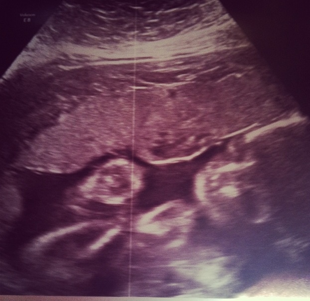Creepy alien baby giving us the finger at my anatomy scan. I've got one more ultra sound on Thursday and she hates them so maybe she'll make more crazy faces.