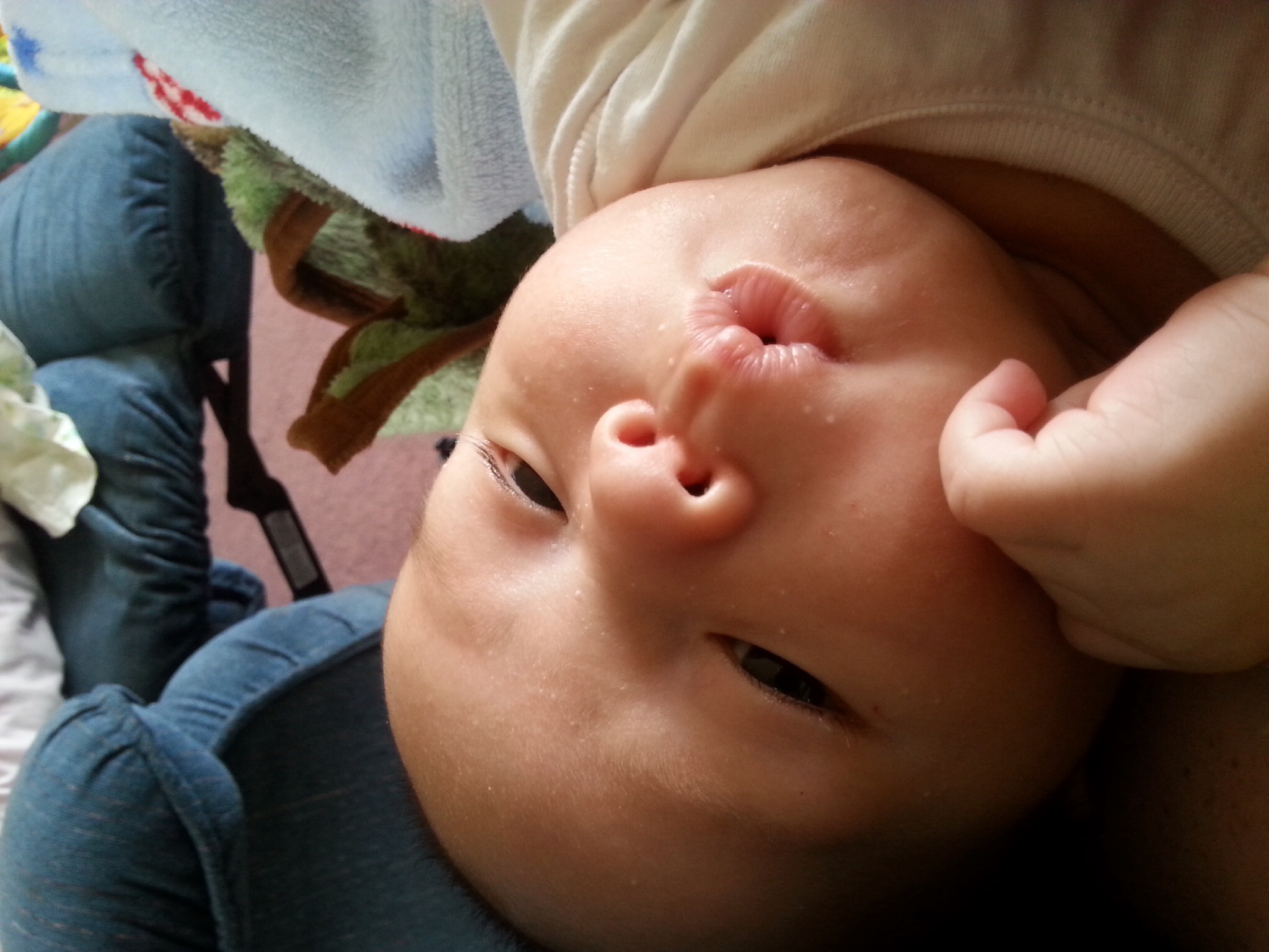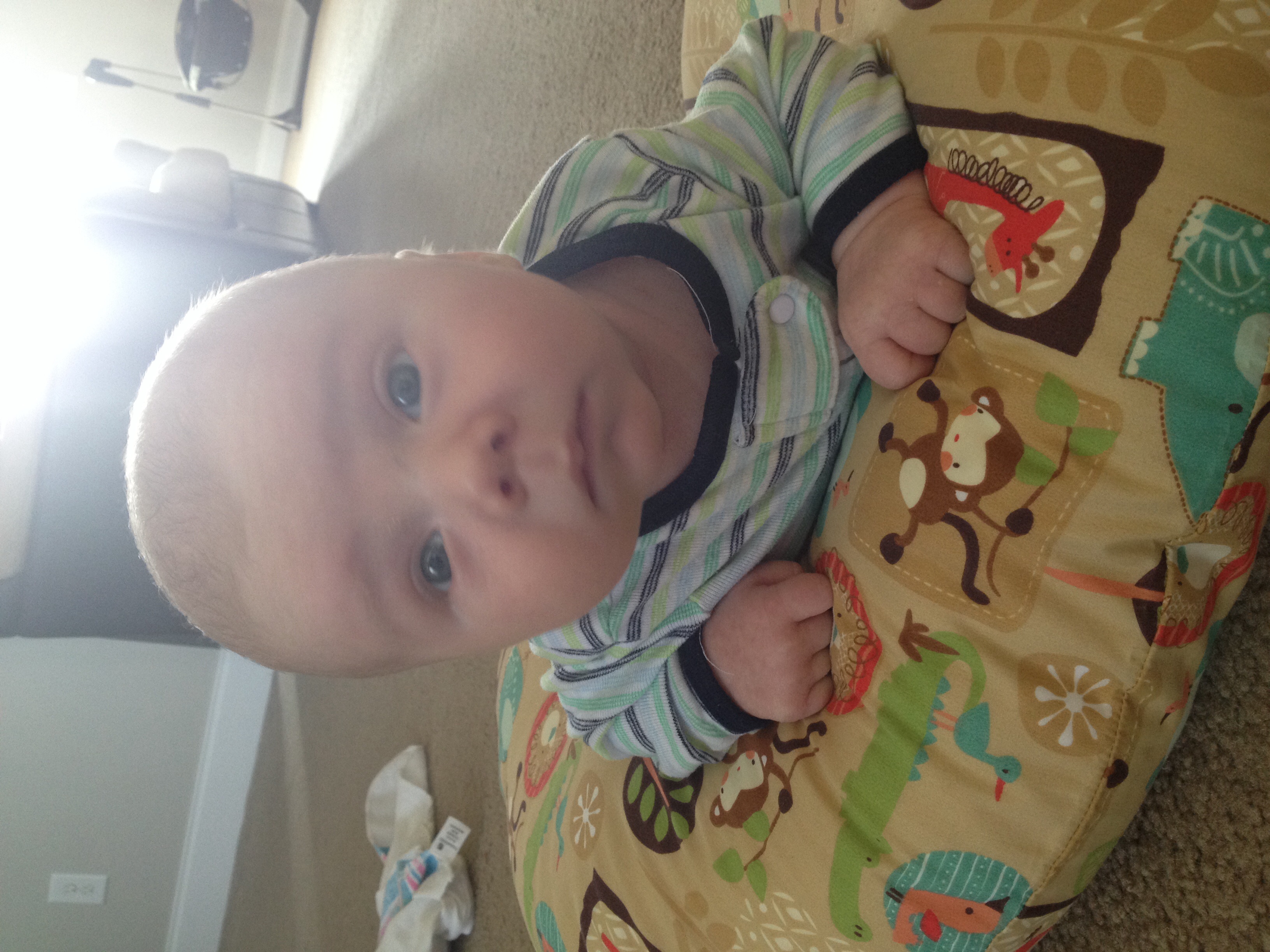 Levi at 2 months old (a few days ago). I was very shocked to find out he's in the 98th percentile for weight and 93rd for height. I think I grew a giant!