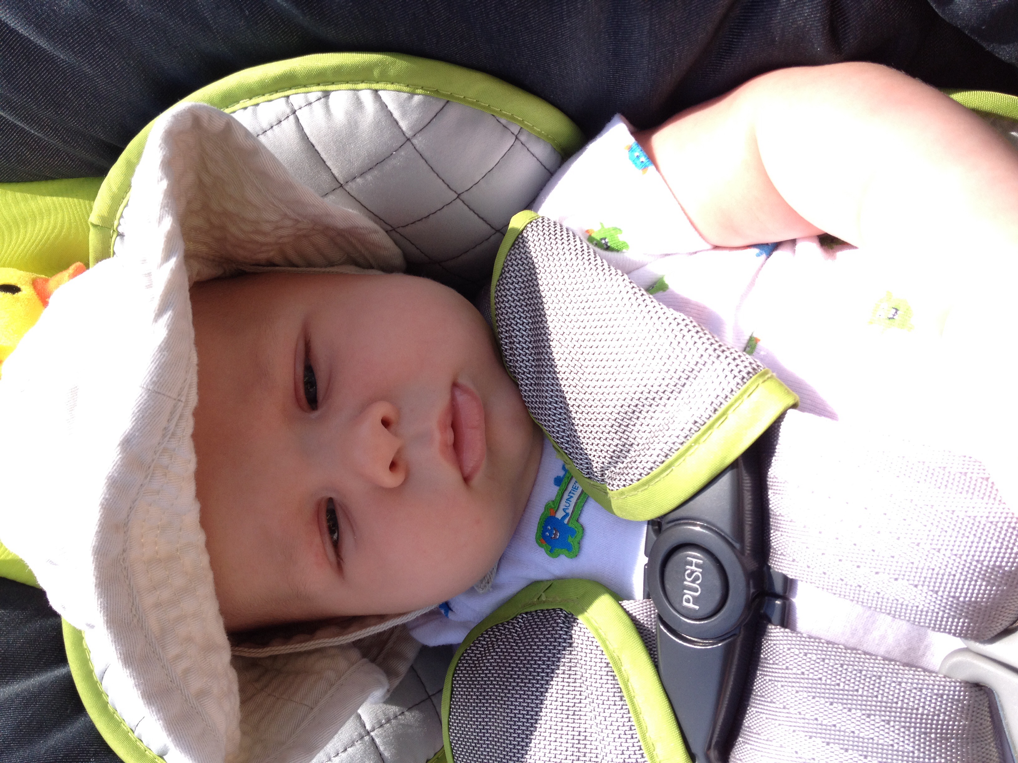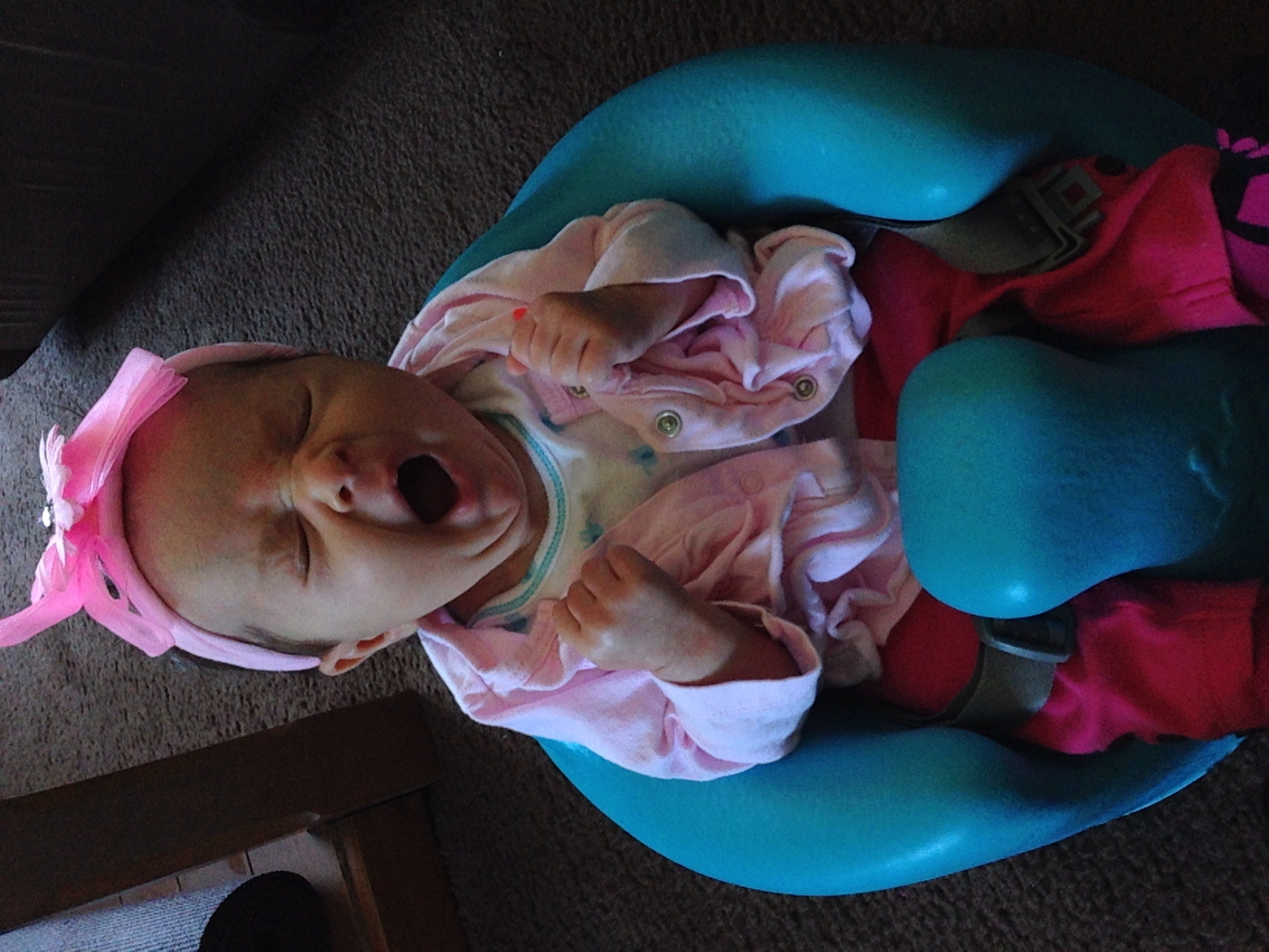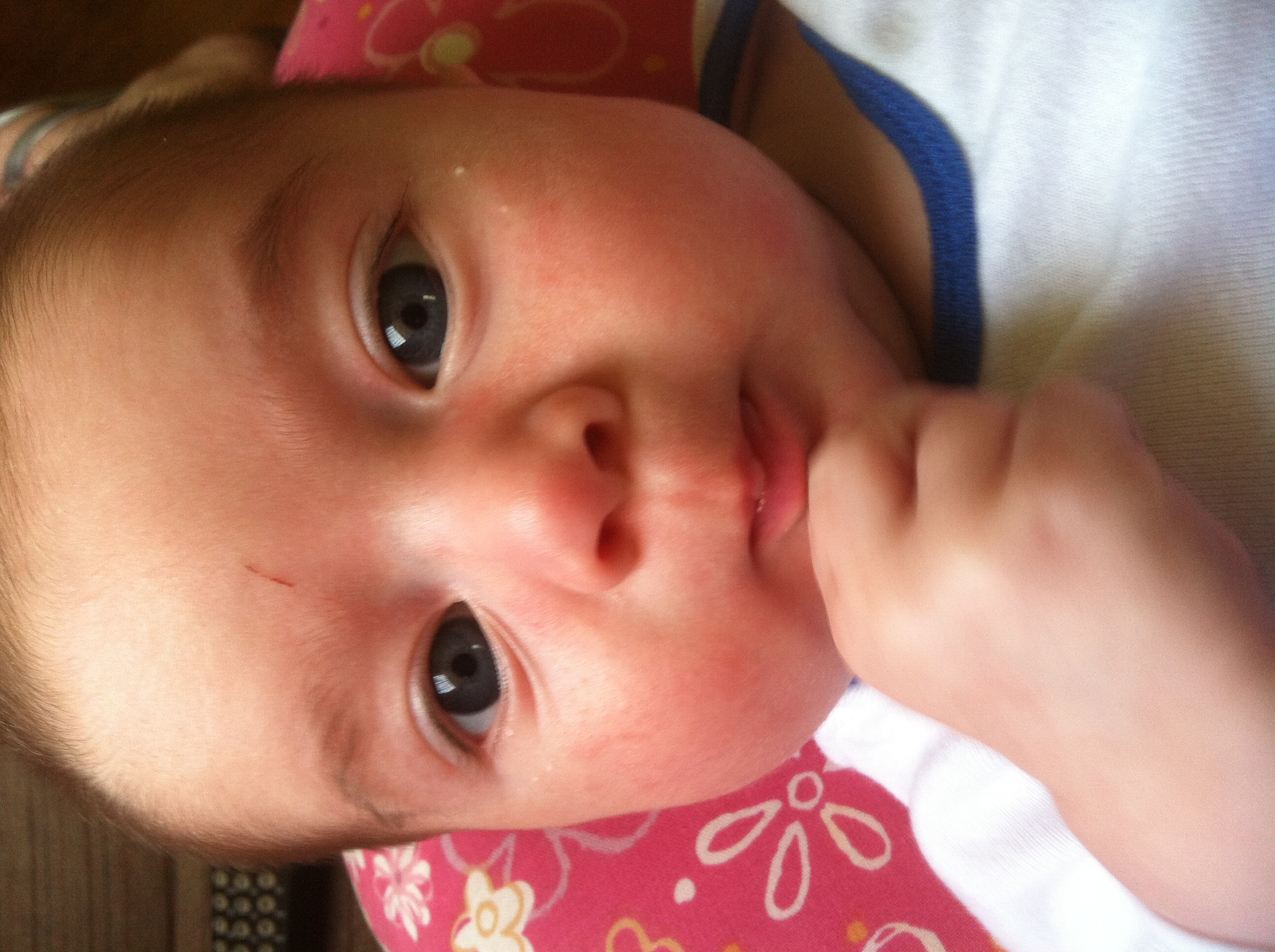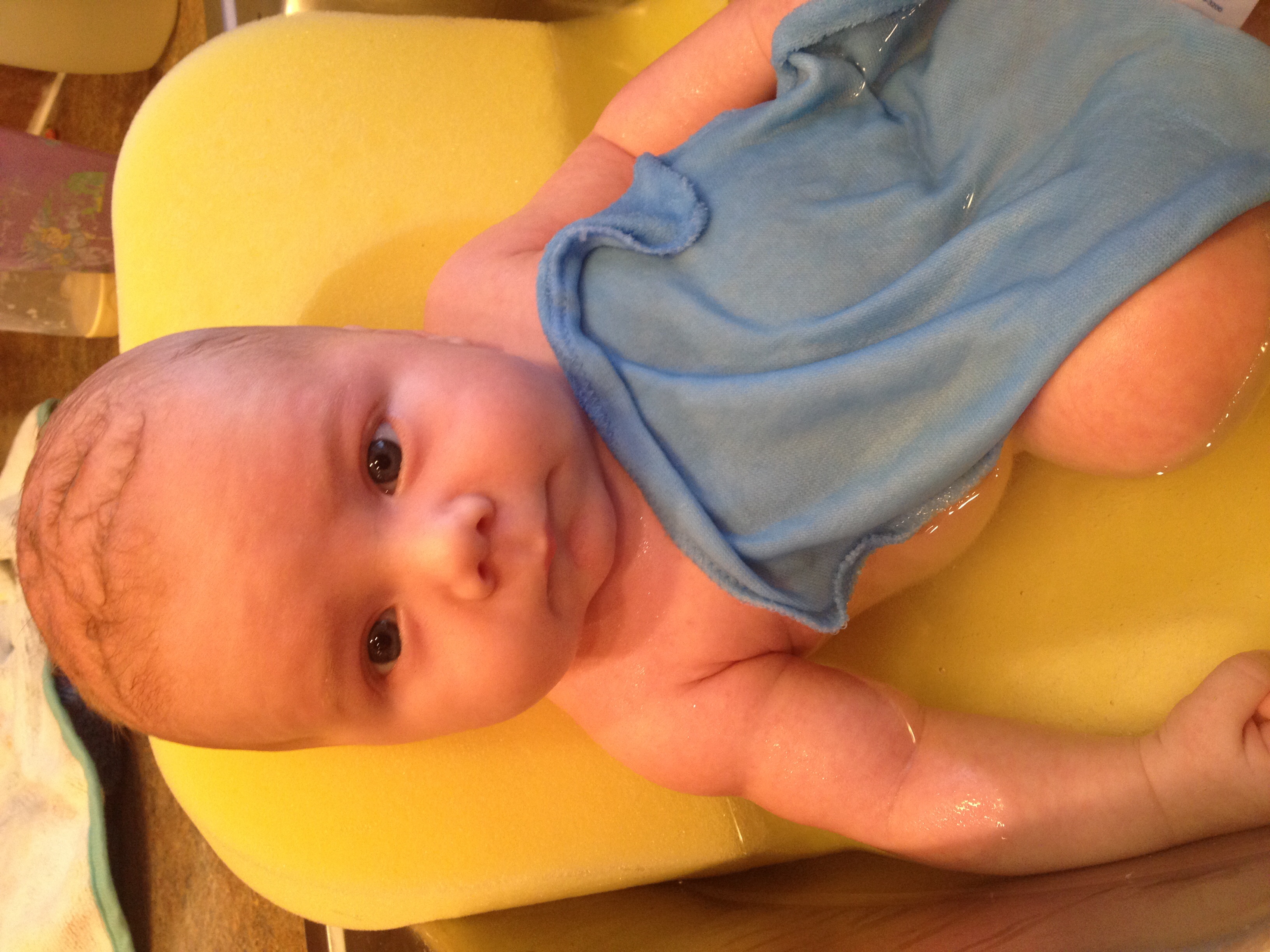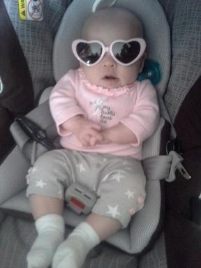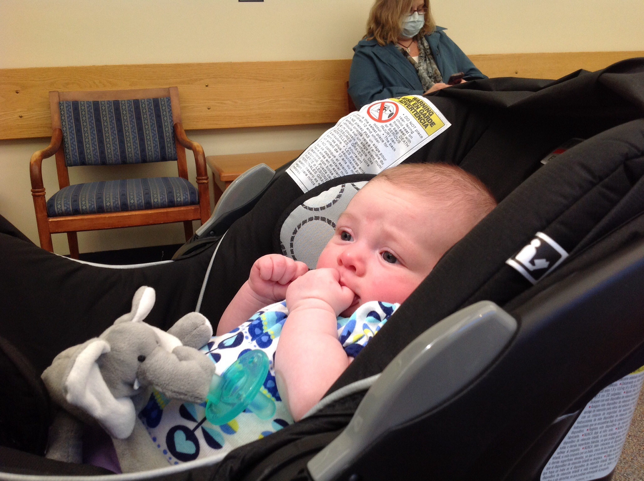 I'm always late to the party (:| this was Monday, 8w1d old. I had to go to the hosp. Lab for my follow up 2 hr glucola test. And yes I was paranoid about the lady in the mask and her germs until she explained to me (by offering this info, I didn't ask) that she is going through chemo and She is immuno-suppressed right now. Then I felt judgey and guilty :-&