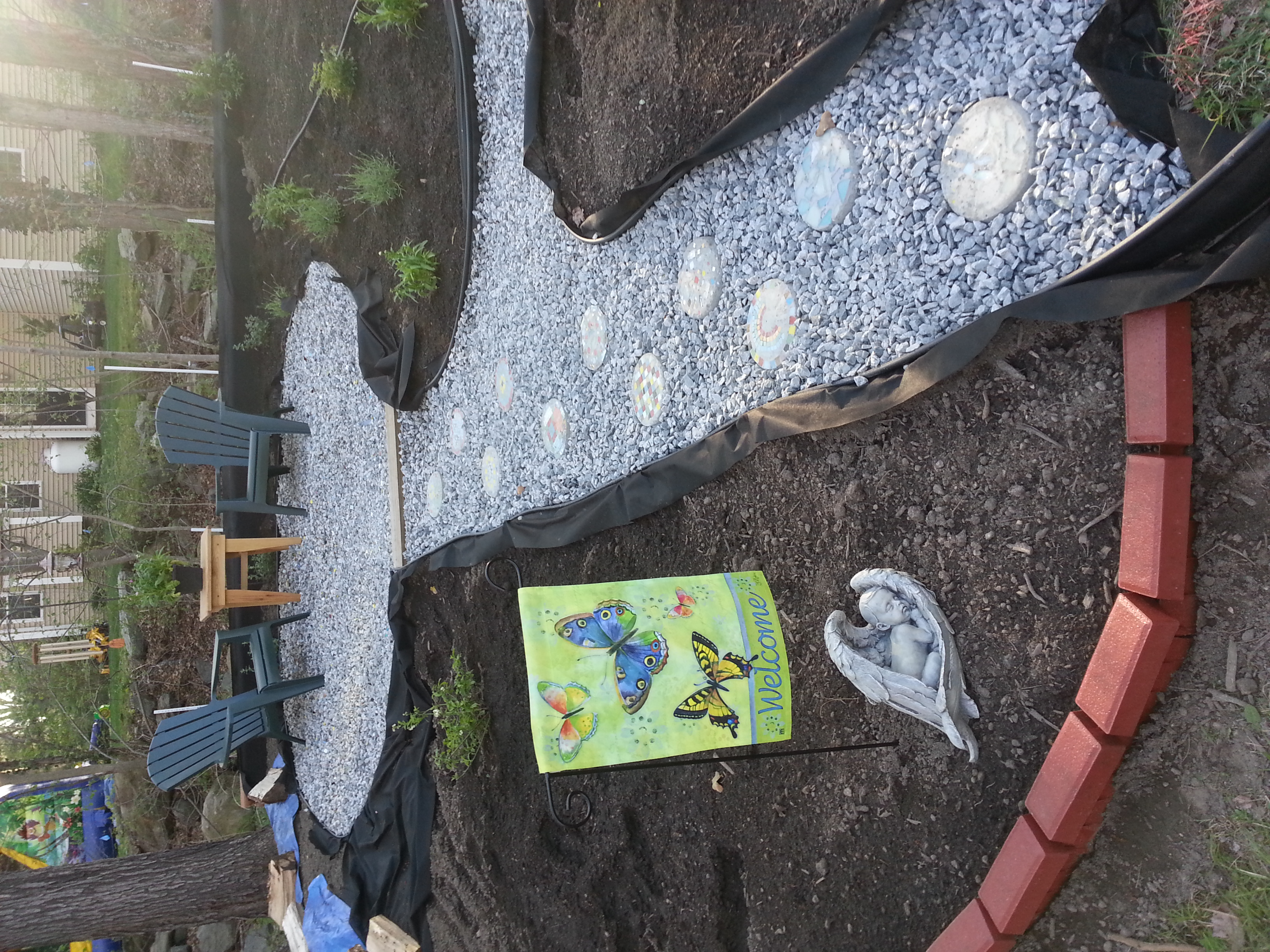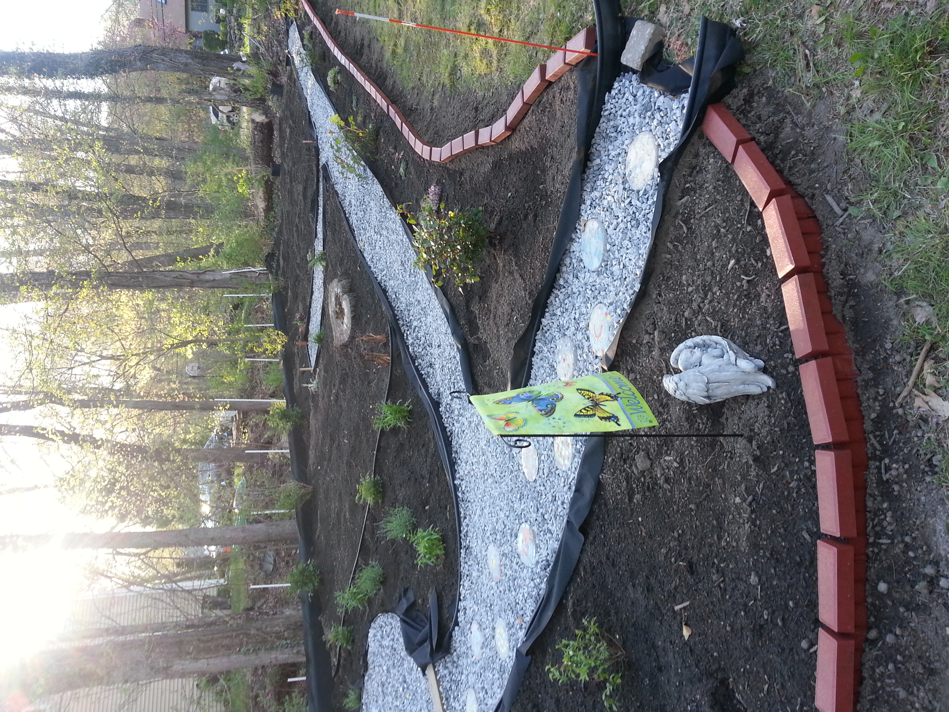 Ever since we moved into this home several months after we lost baby gary (2 years ago) I've been talking about this memorial garden that I wanted to put in. Well dh and I finally got it together this weekend! It took 20 cubic yard of loom, 5 tons of crushed stone and three days of strenuous labor, but it's just about done. We still need to mulch and there are a couple of little projects left to do, but I'm so happy with the way it came out! The whole big empty back section will be wild flower... I spread the seed today but it takes a few weeks to come in.