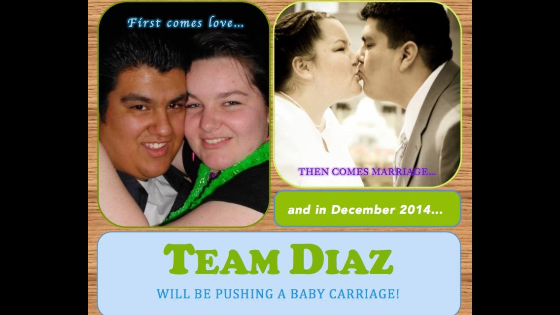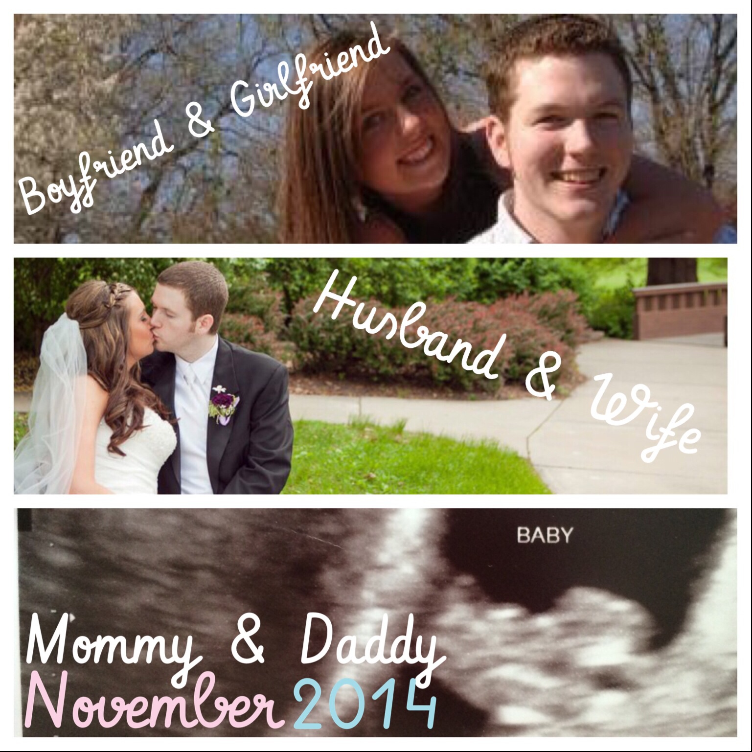 Here is ours! Tomorrow is our 3rd Wedding anniversary so we will be posting to Facebook. We will be 12 weeks at the end of the week so we are close enough. We were 18 and 19 in the top pic. Young love!