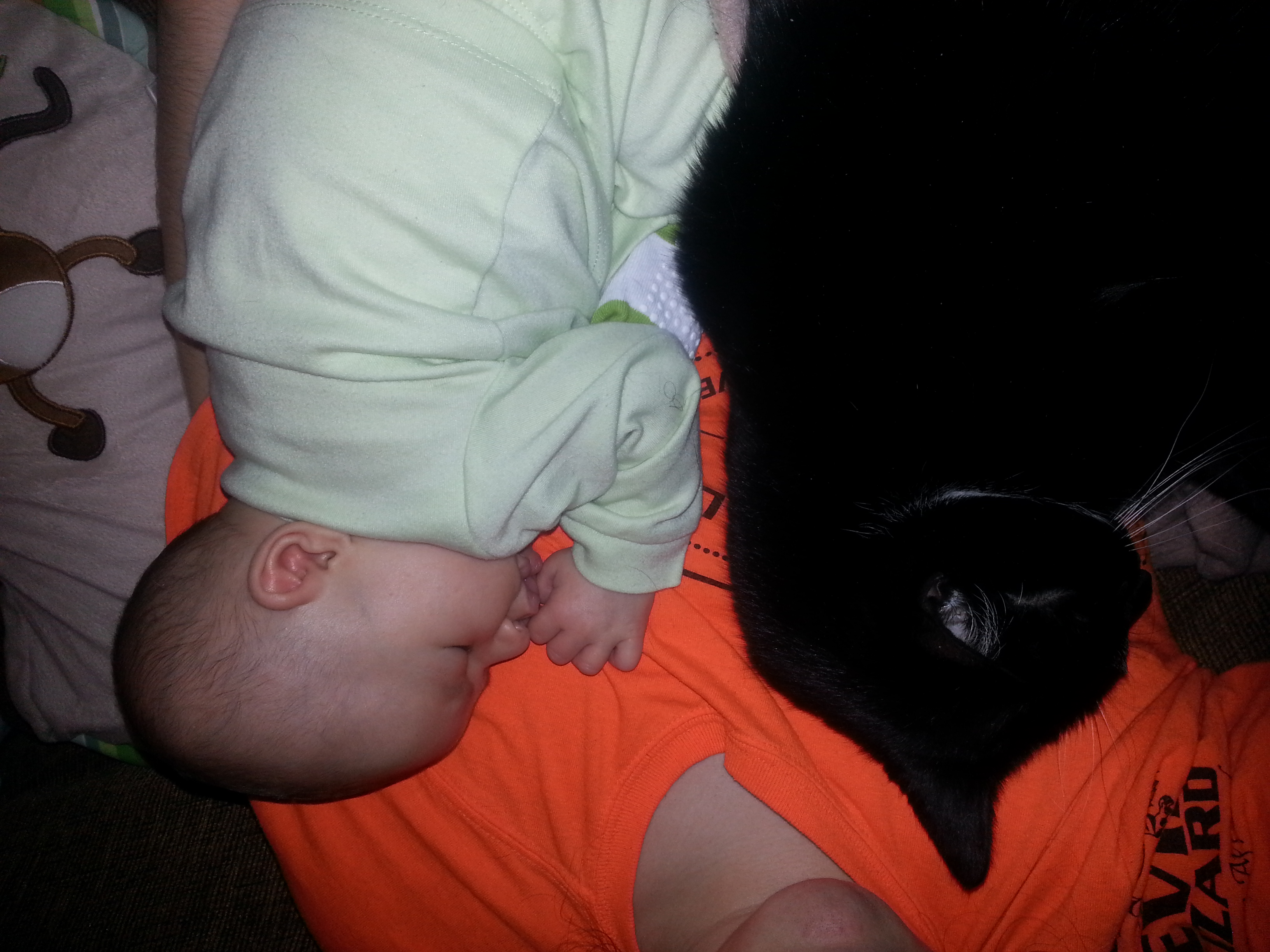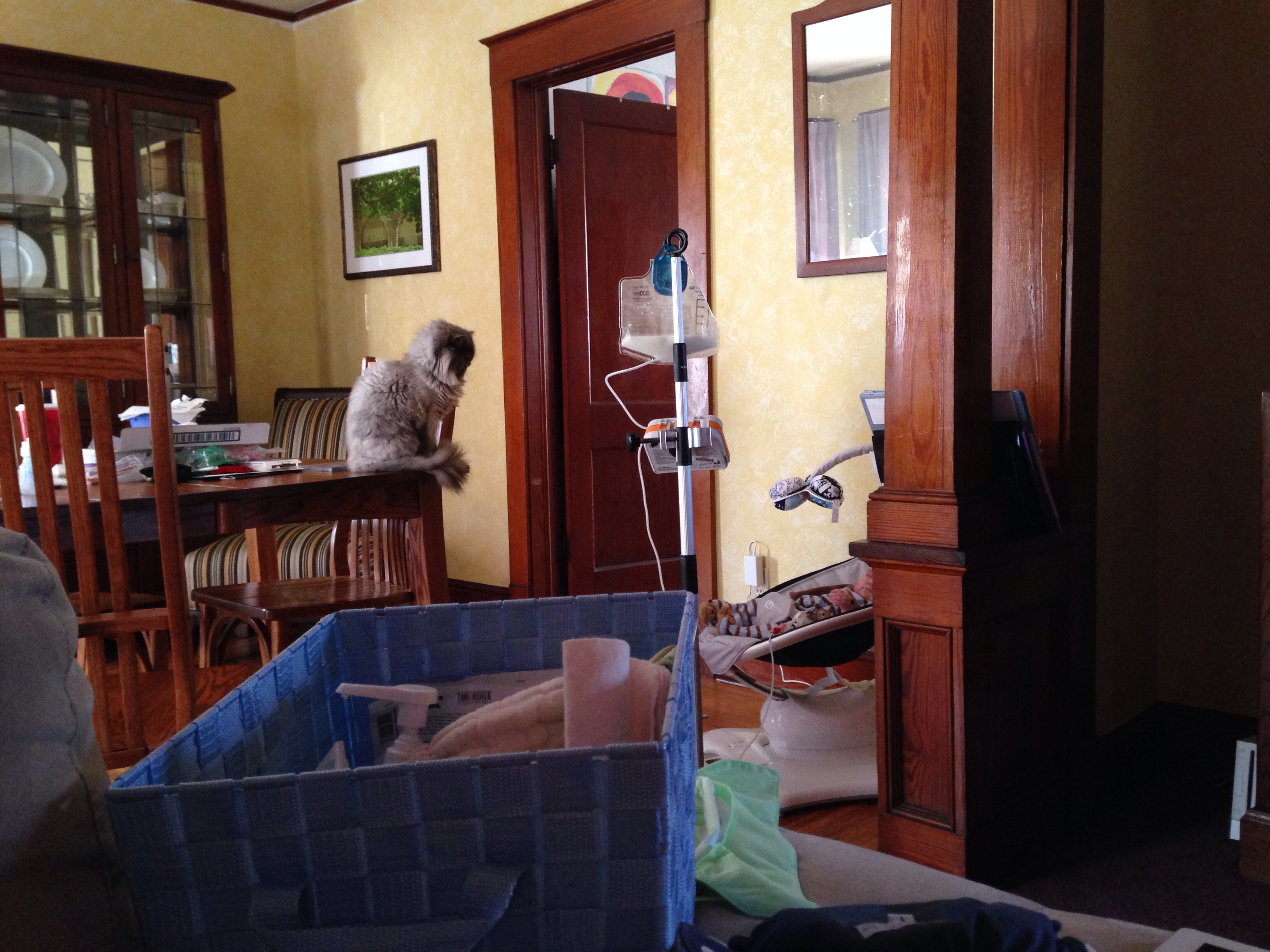 • Ignore the mess. The cat just looks at Sam from afar! And yeah I know it's gross to let the cat sit on the dining room table :/