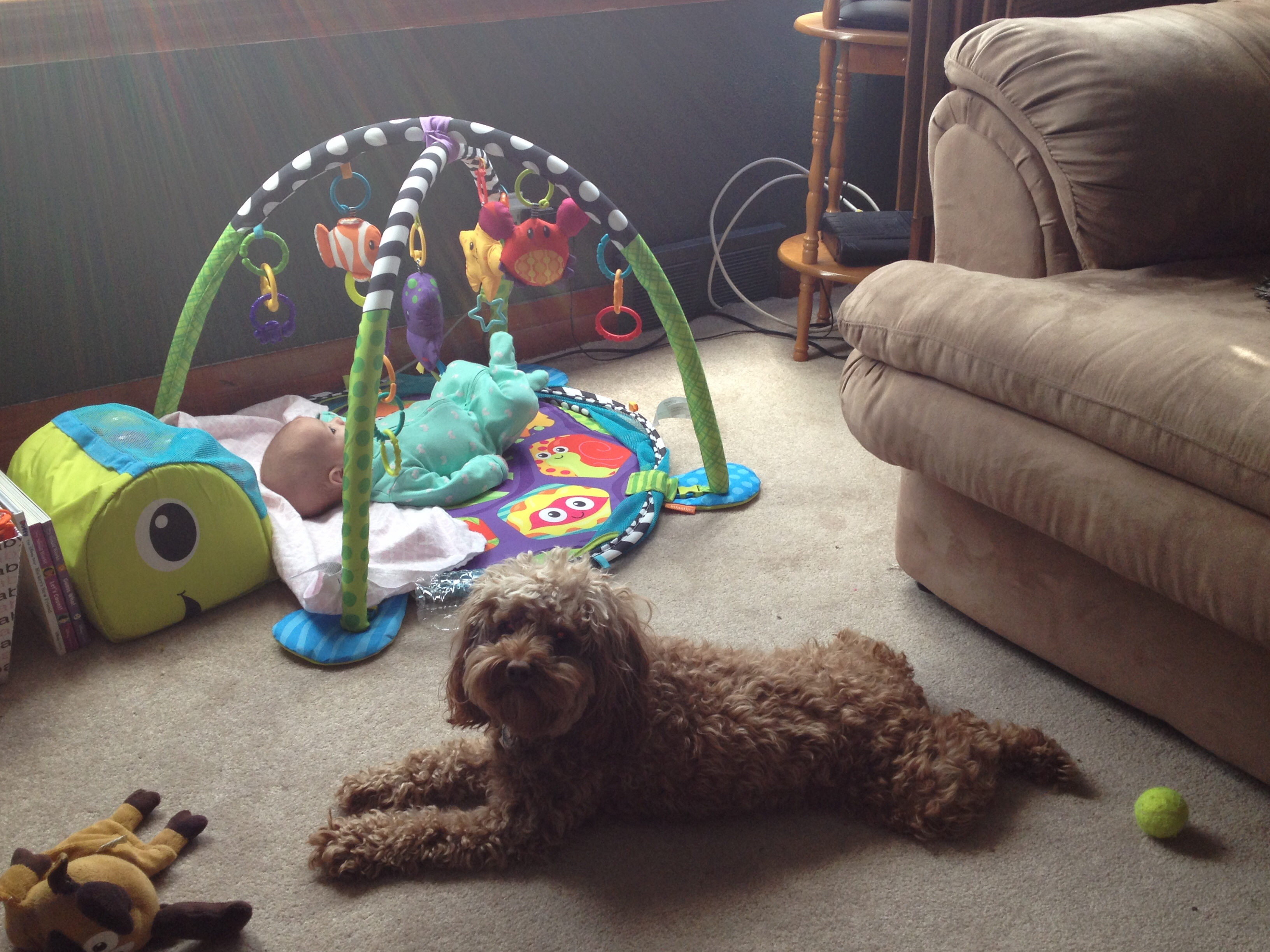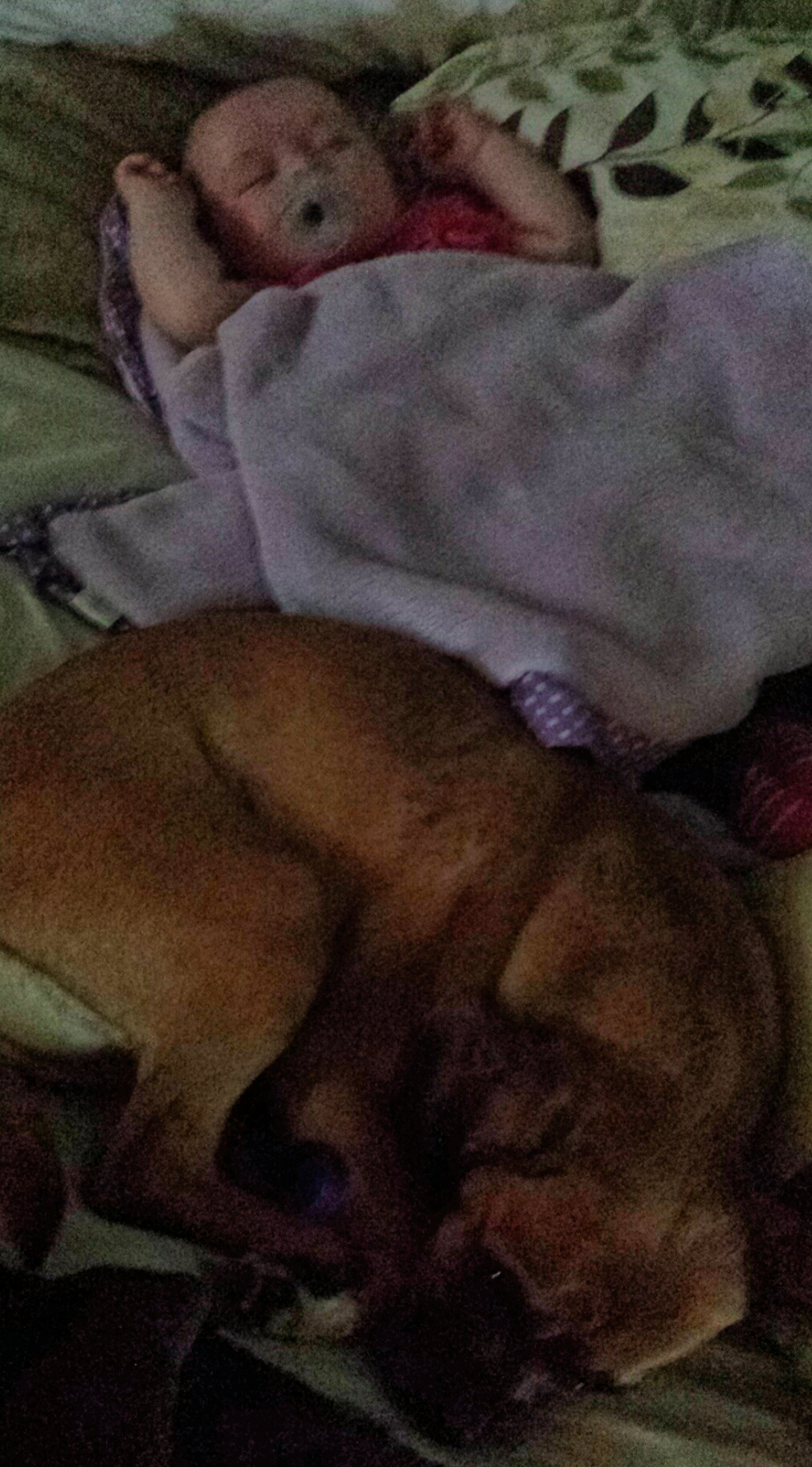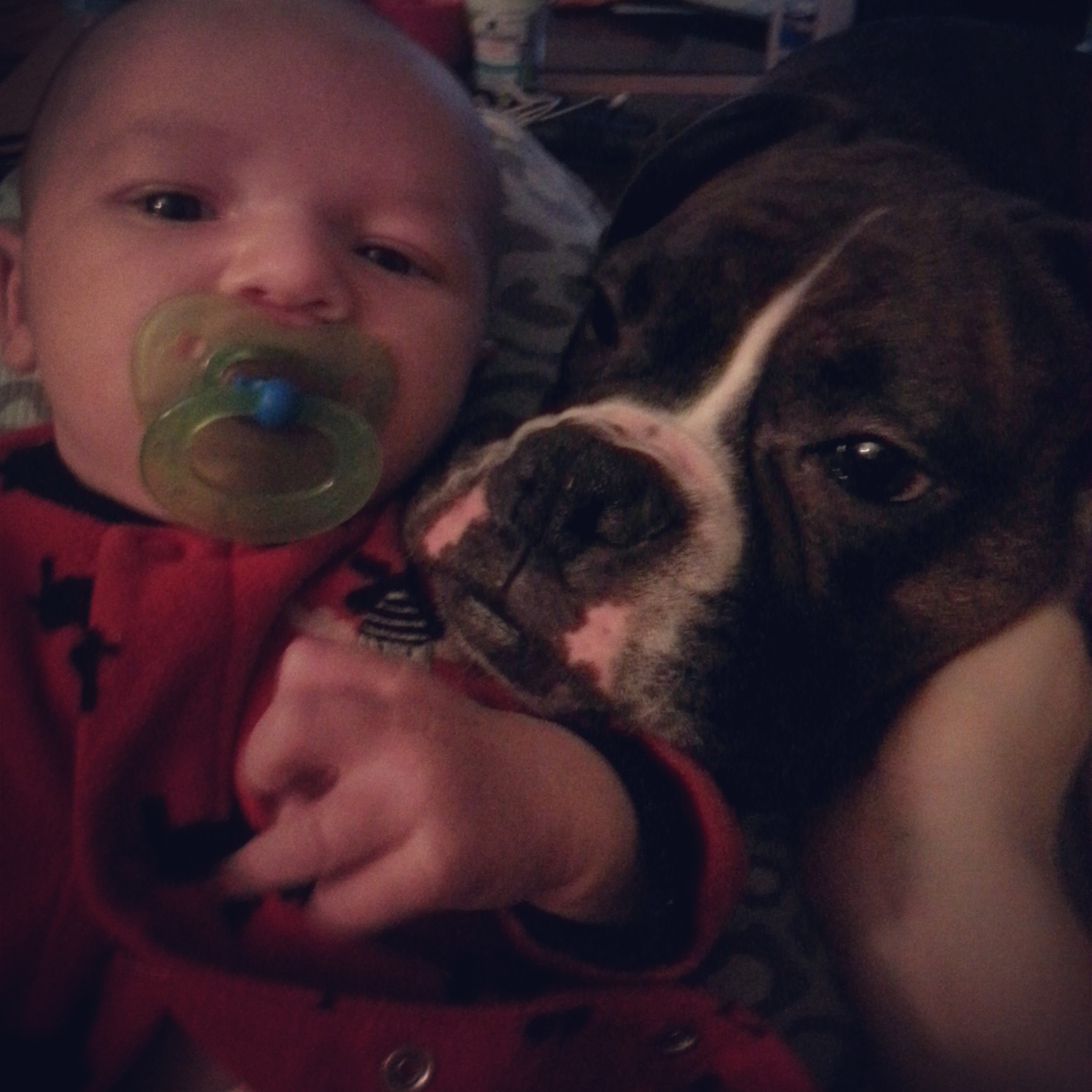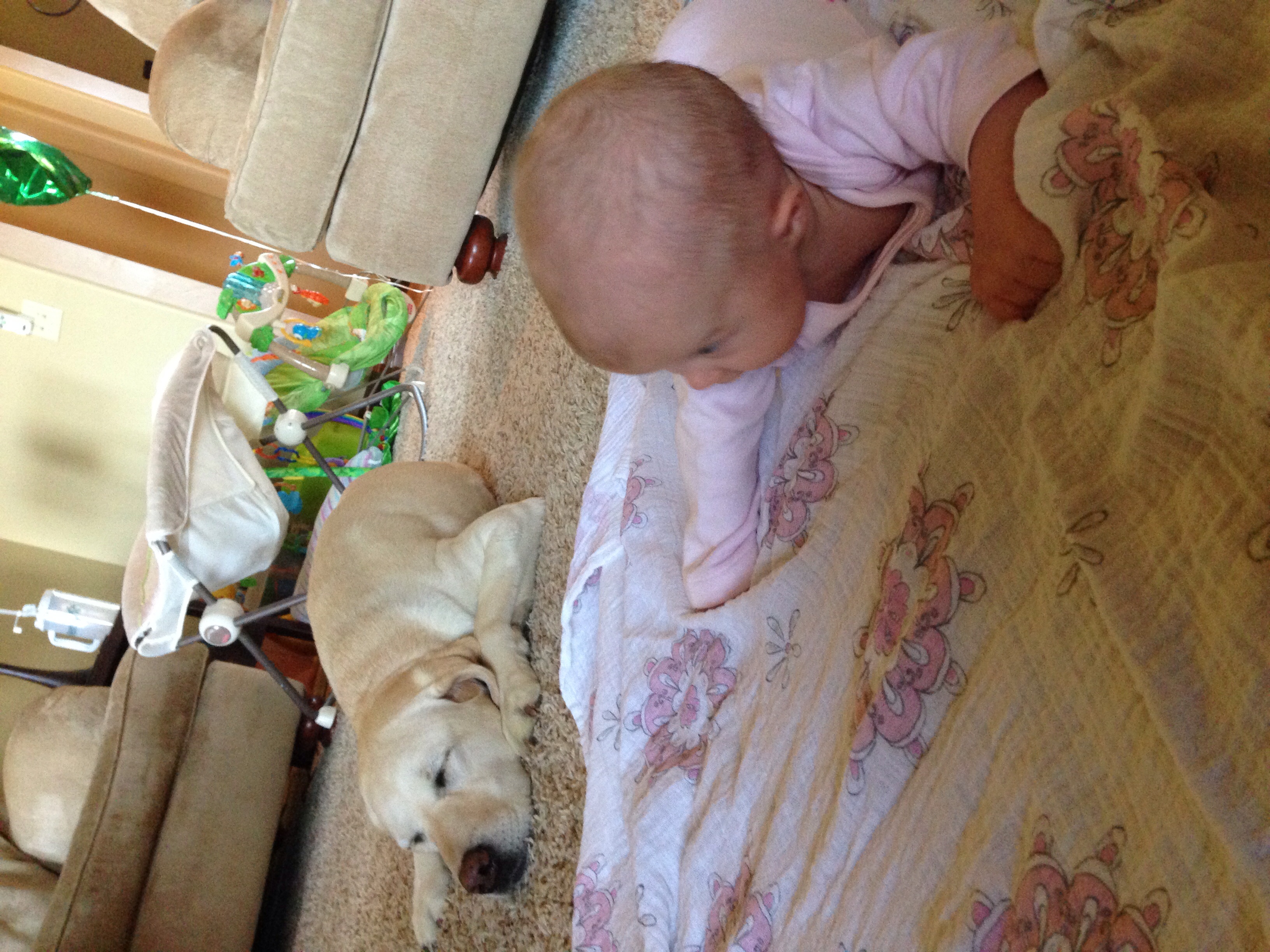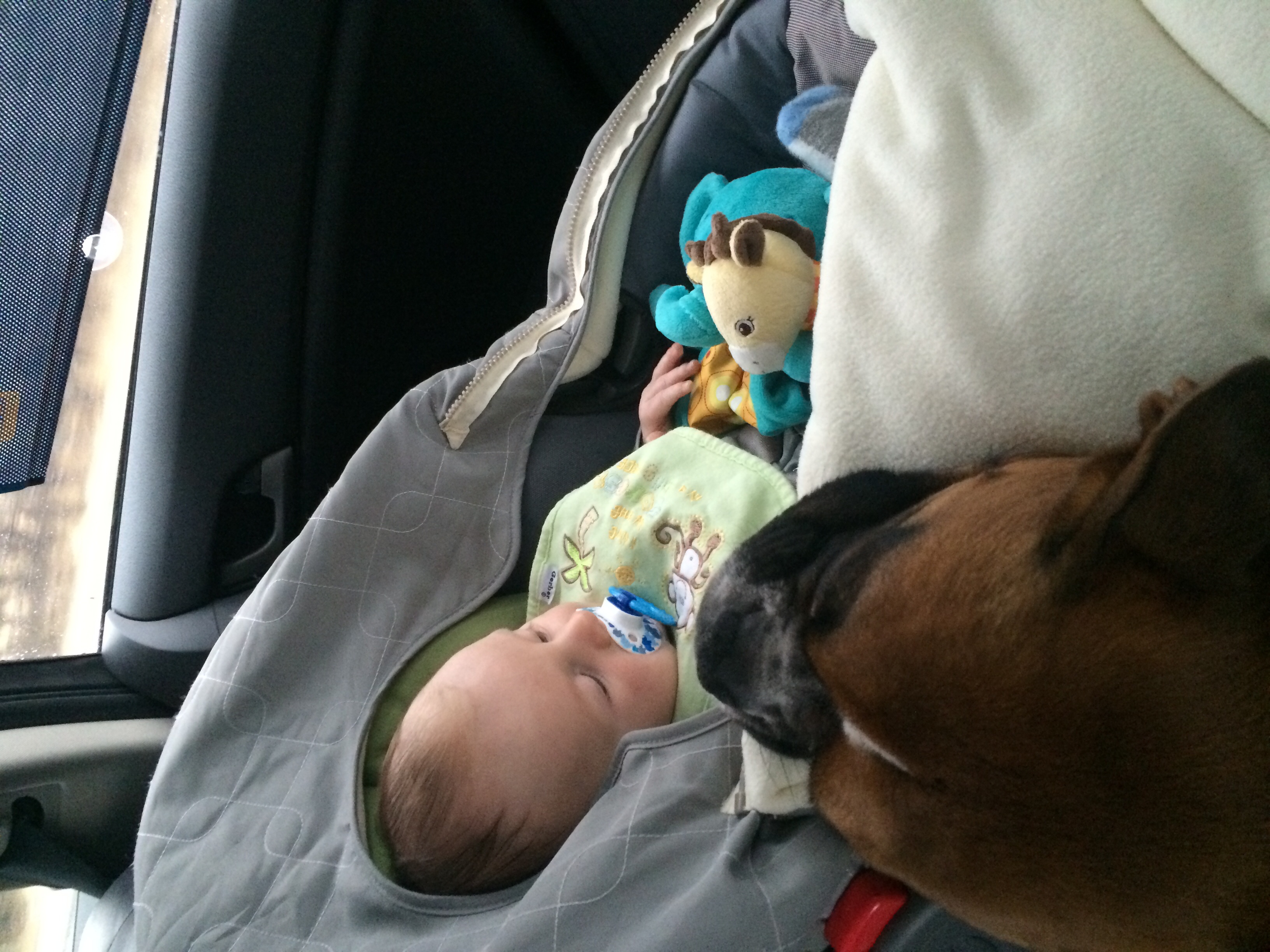 Zoe dog keeping an eye on baby D on our 5 hour car ride to WI last weekend. :)