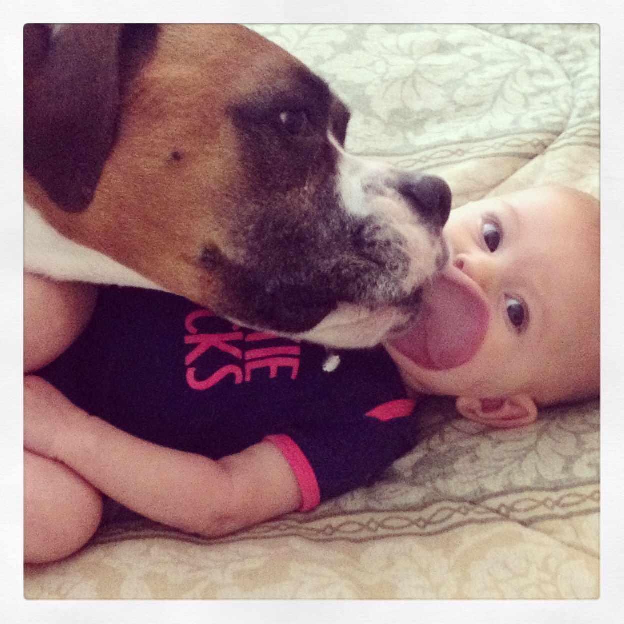 Awwww how sweet. Boxers are the best. We have 2 of them and they just lick DS to death, ha ha
