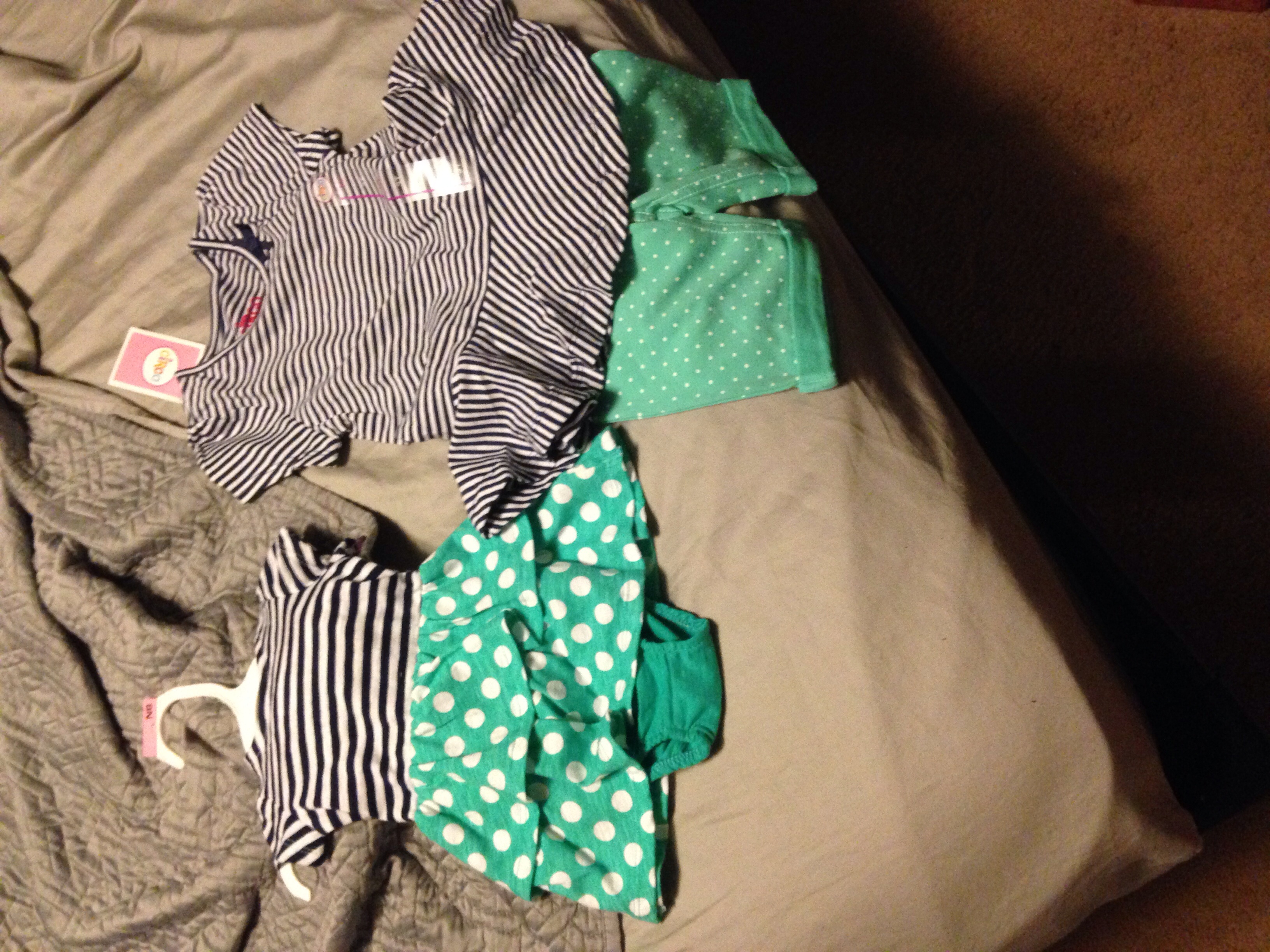 • Coordinating outfits for Eleanor to bring home baby Cora. She is very excited about it. There are also matching denim peep toe flats with a bow on them :)