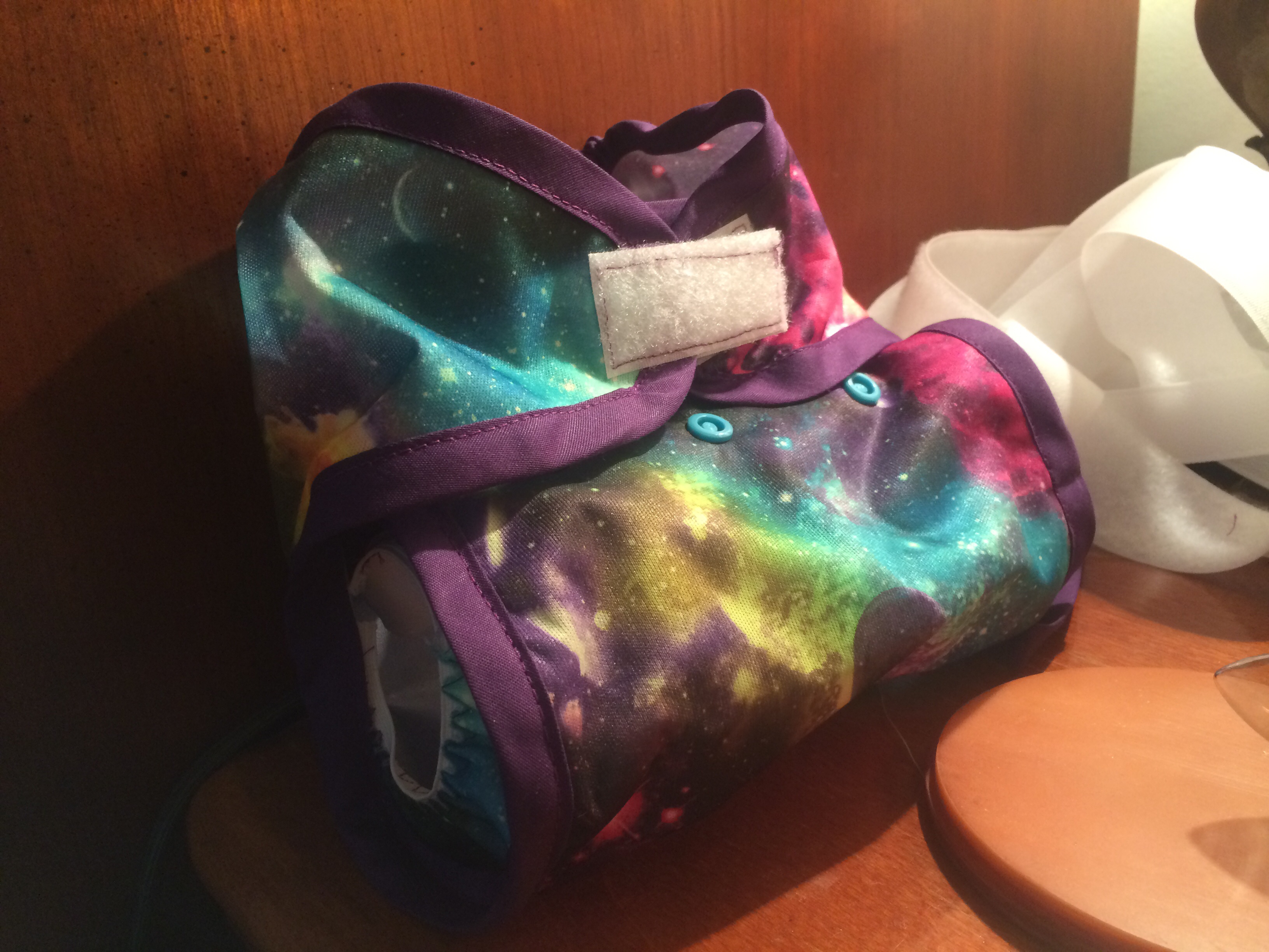 PUL is from fluffys diapers on etsy. Elastic, thread from Joann's. The binding is 1/2" double fold bias tape, also from Joann's. The aplix was ordered from...Diapersewingsupplies.com