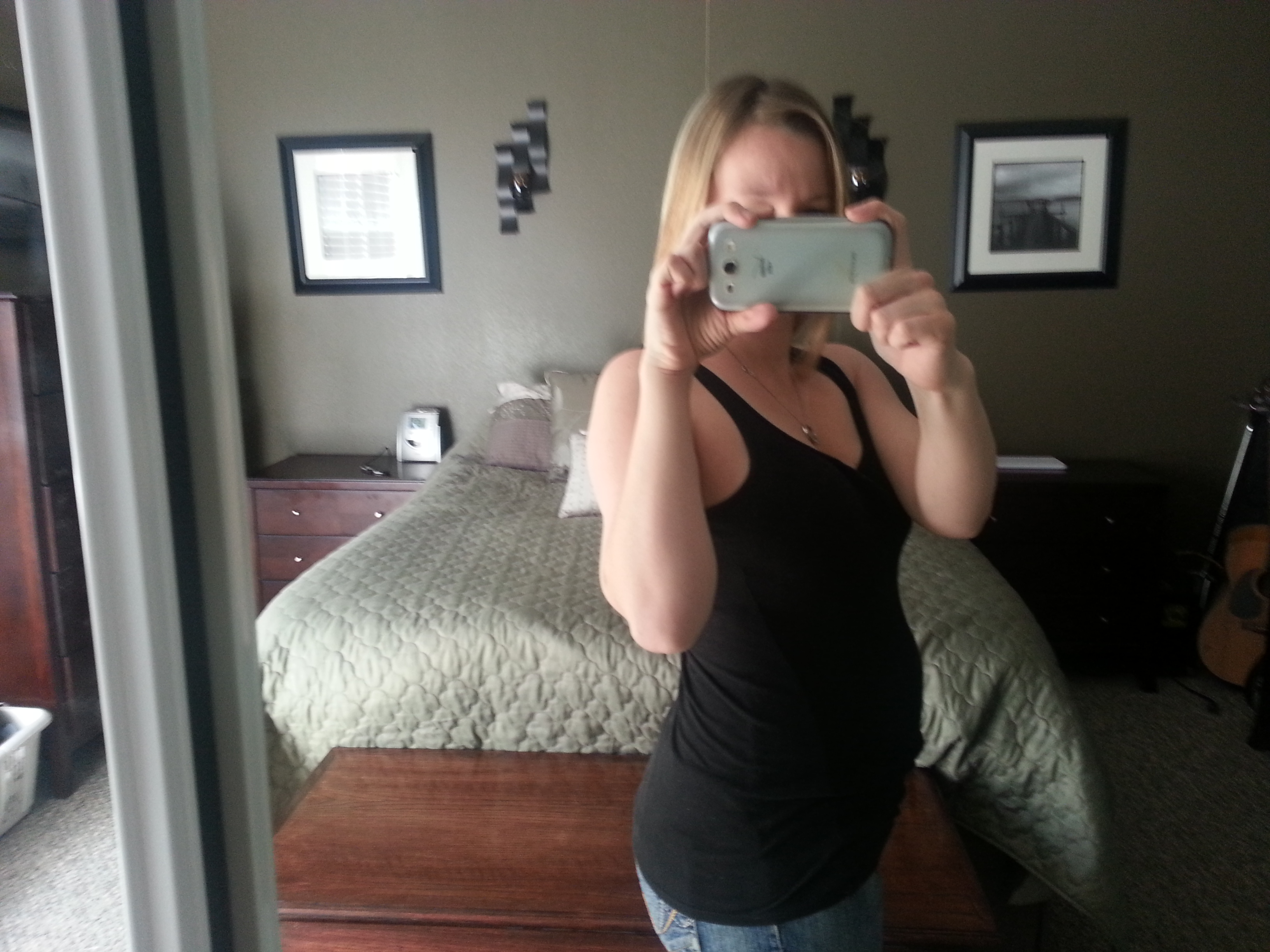 First pic was 16 weeks, that's when I started to feel like I actually 'looked' pregnant. Second picture is 20 weeks at my mid-point, and the third is 24 weeks. I'm at 27 weeks now but haven't taken a new pic for a few weeks.