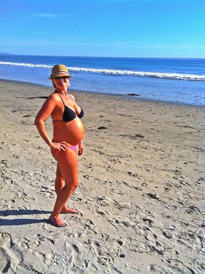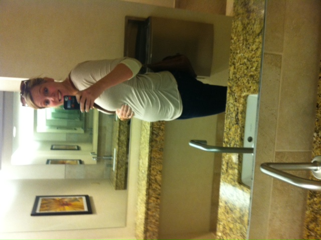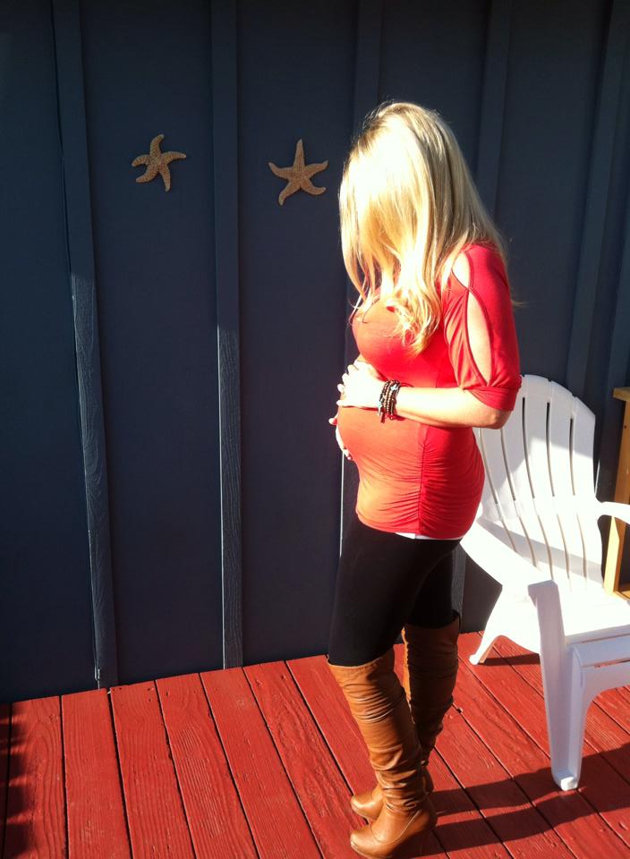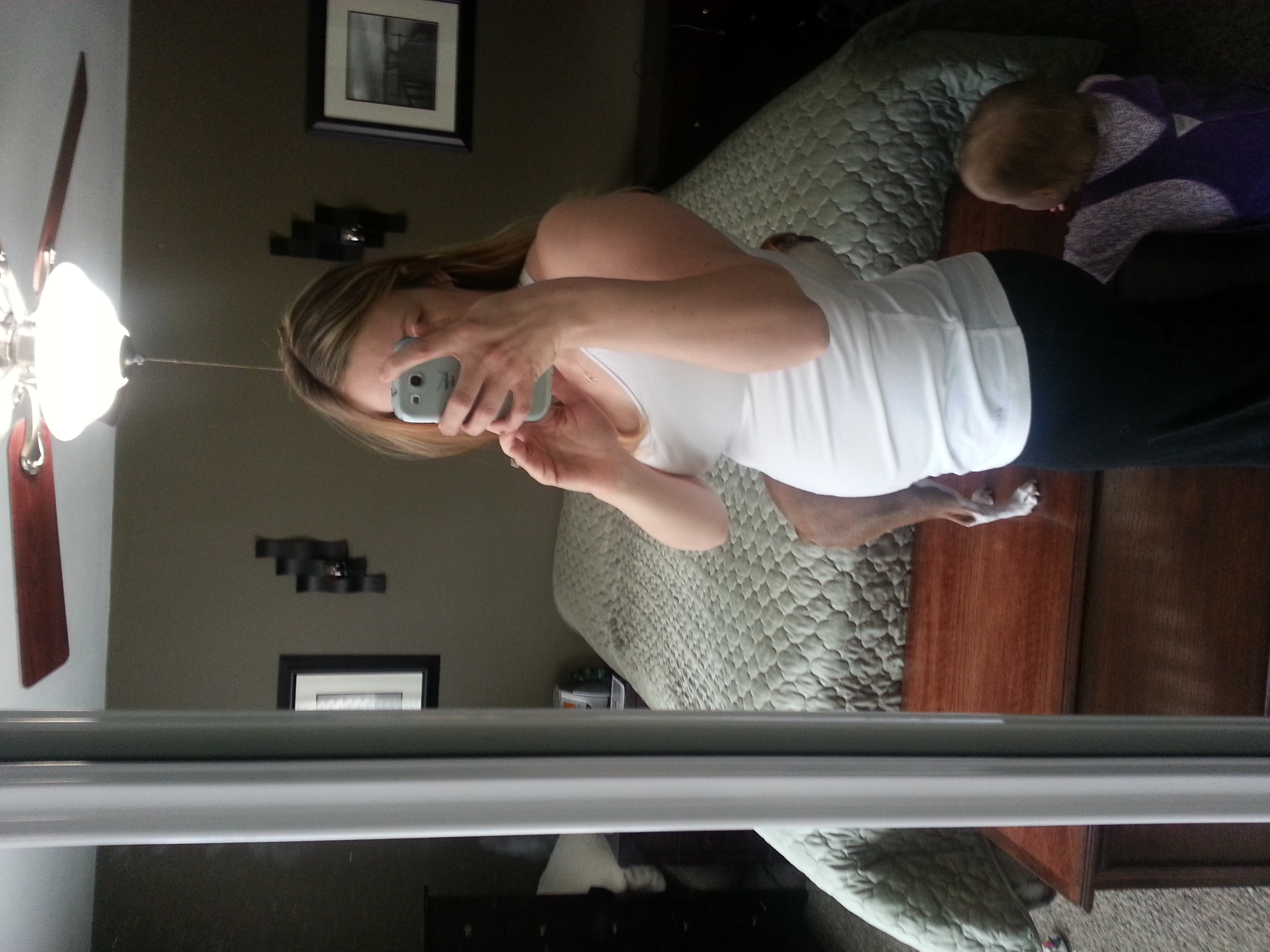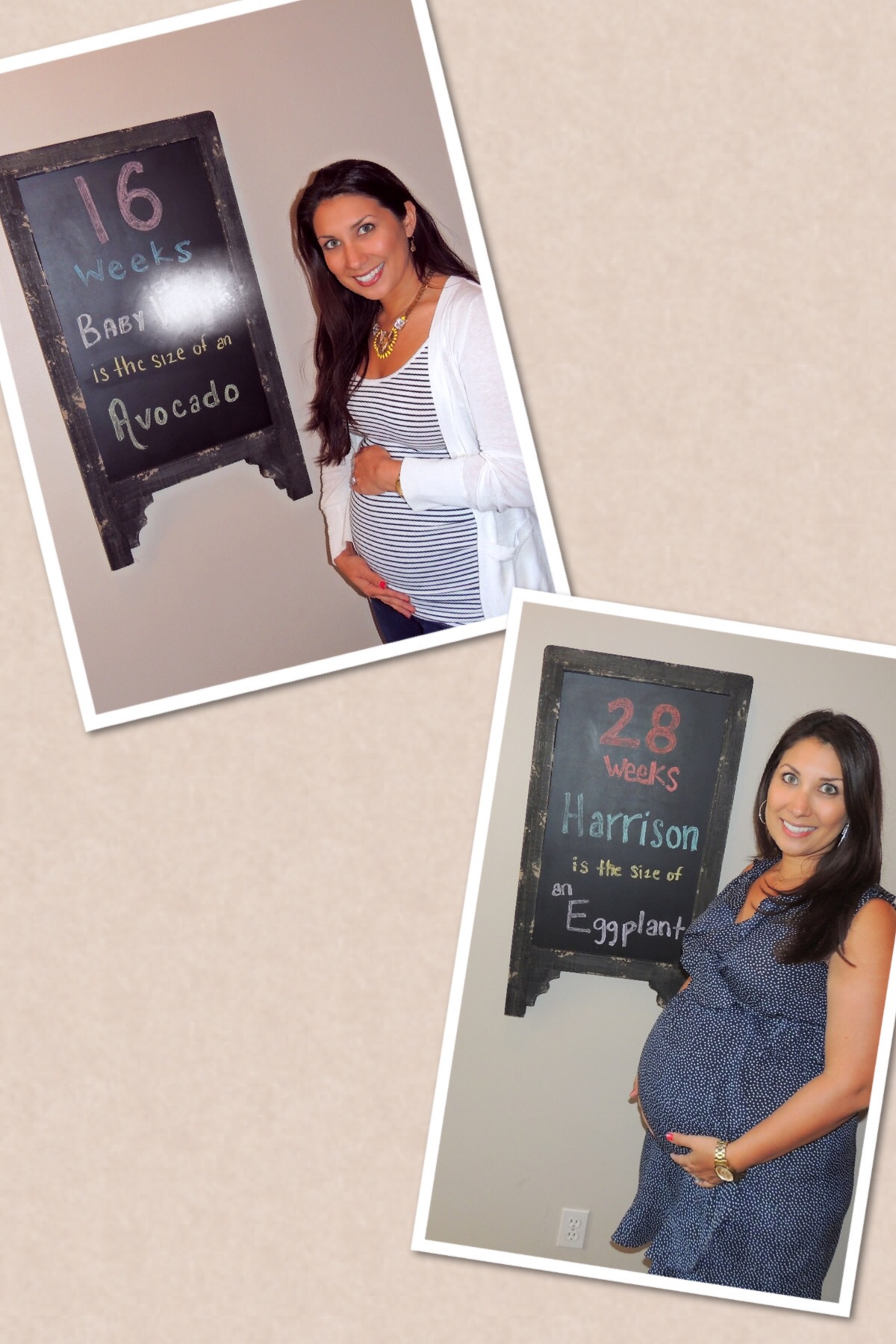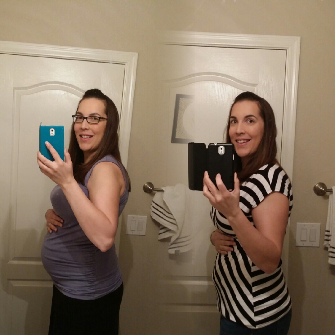 I feel like I still had a little pregnant belly when I wasn't preggo (I have that diatasis recti - ab splitting problem after baby #2)! This is 14 weeks (left) and 26 weeks (right, not sure why I am wearing my sunglasses indoors in this pic)!!