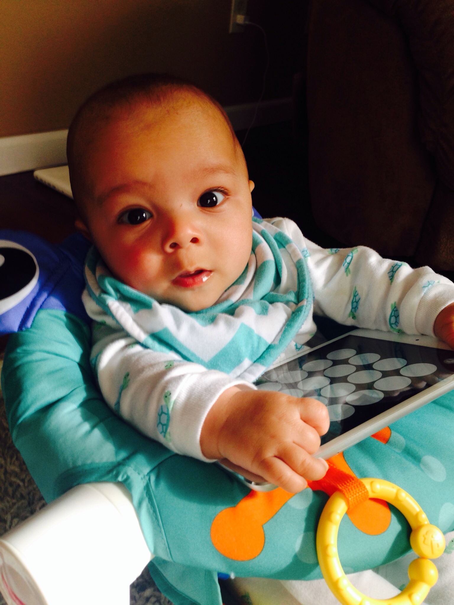 So DH thinks we should give him that iPad and we should get a new one. I am torn because I feel like he's a bit young for it but on the other hand I am amazed what he is learning (we sit and play with it together so it's not like I'm just dumping him on the floor with it). I'm thinking as long as I put time restrictions on it it's not bad thing.