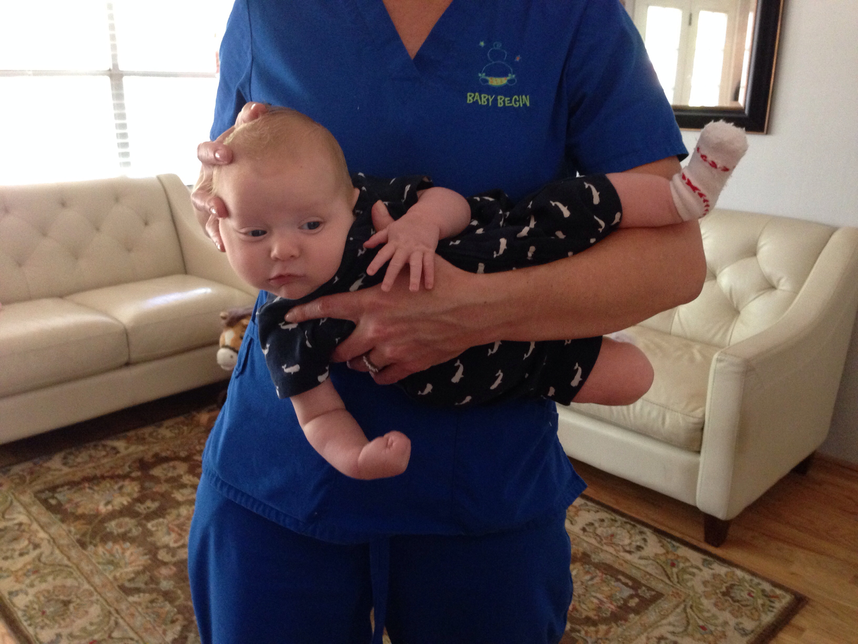 • katykatykatyjsmath  Levi  favors his right side so we're on to "push" for the left.  I'm not convinced he needs physical therapy, I think we can do these exercises at home and re-evaluate at 4months... I'll decide in the next week or two.  I found a few good examples of the stretches on Utube... The pediatrician gave us a handout but the video with live, kicking babies is easier to view than a piece of paper.  Levi does not like the one where you point his chin to shoulder...