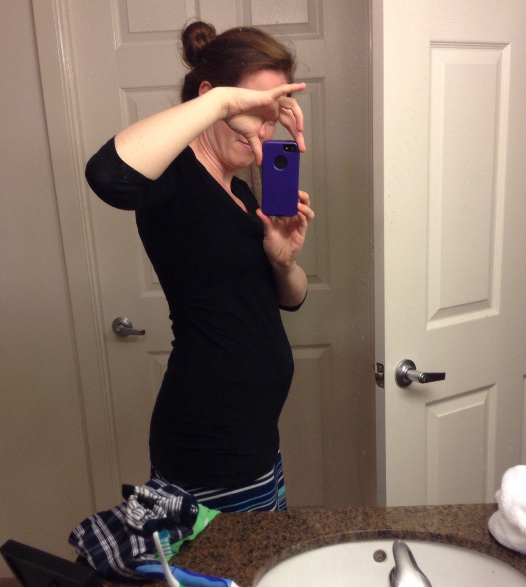 You ladies all look amazing! Love that actual bumps are starting to form. I would love to participate but I'm still in pajamas deep cleaning the house. I would probably break the camera if I took a pic today! I'm a sweaty mess but hey, you could eat off my floors, so that counts for something, right?