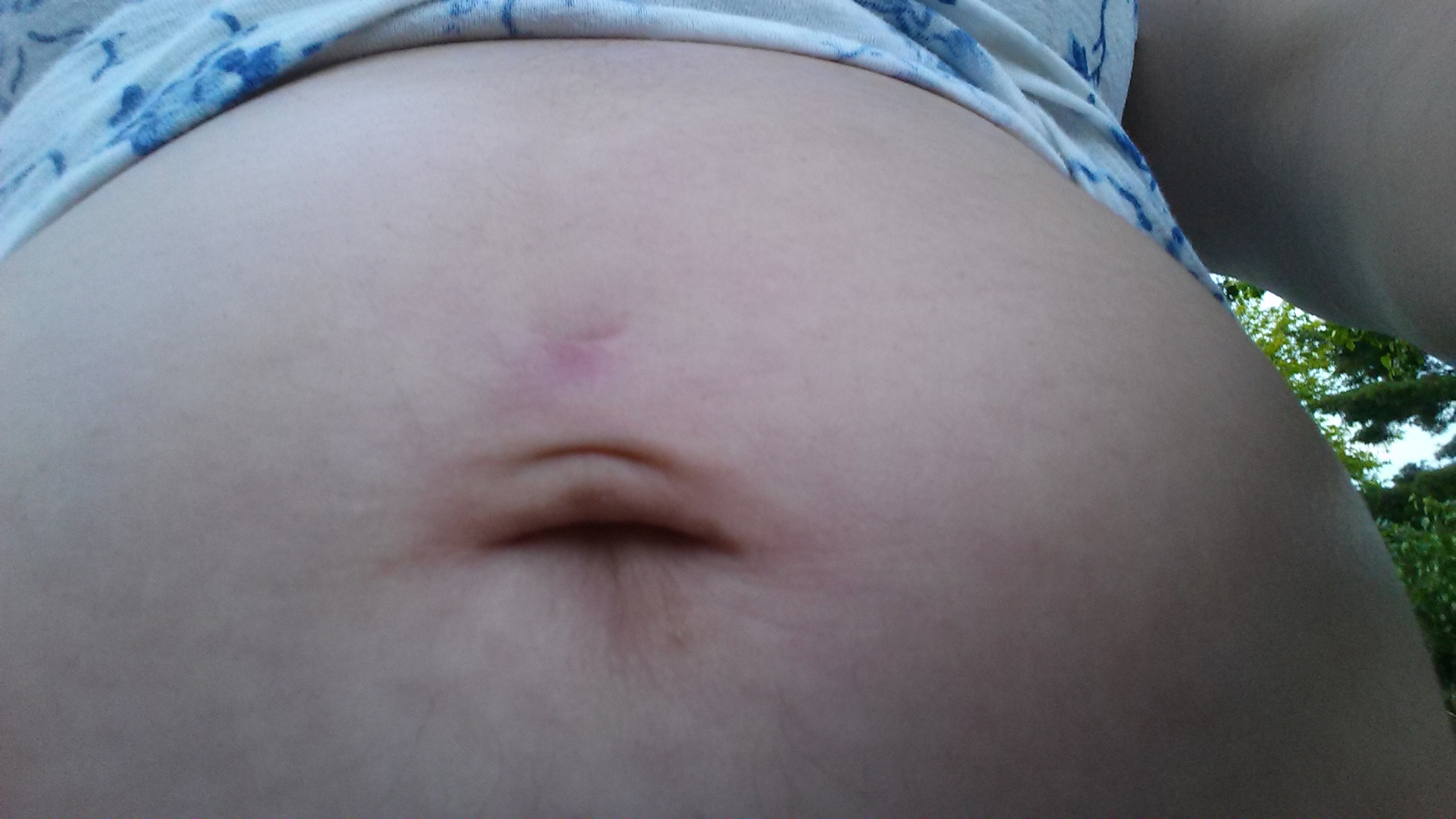 So although not a full belly shot, I noticed a damn stretch mark between the top and bottom holes on my belly button piercing. Also when I laugh my belly button pushes out and looks like a butt hole.