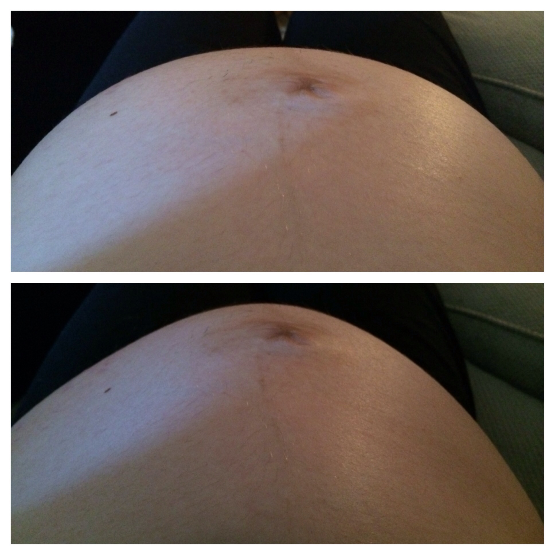 Okay, I have talked with a couple of people, and no one says their belly has done this. The top picture is when I try to sit myself up using my abs, and it freaks out DH haha. I told him it's just where my abs have separated and they are still somewhat functional. Am I right? Haha.