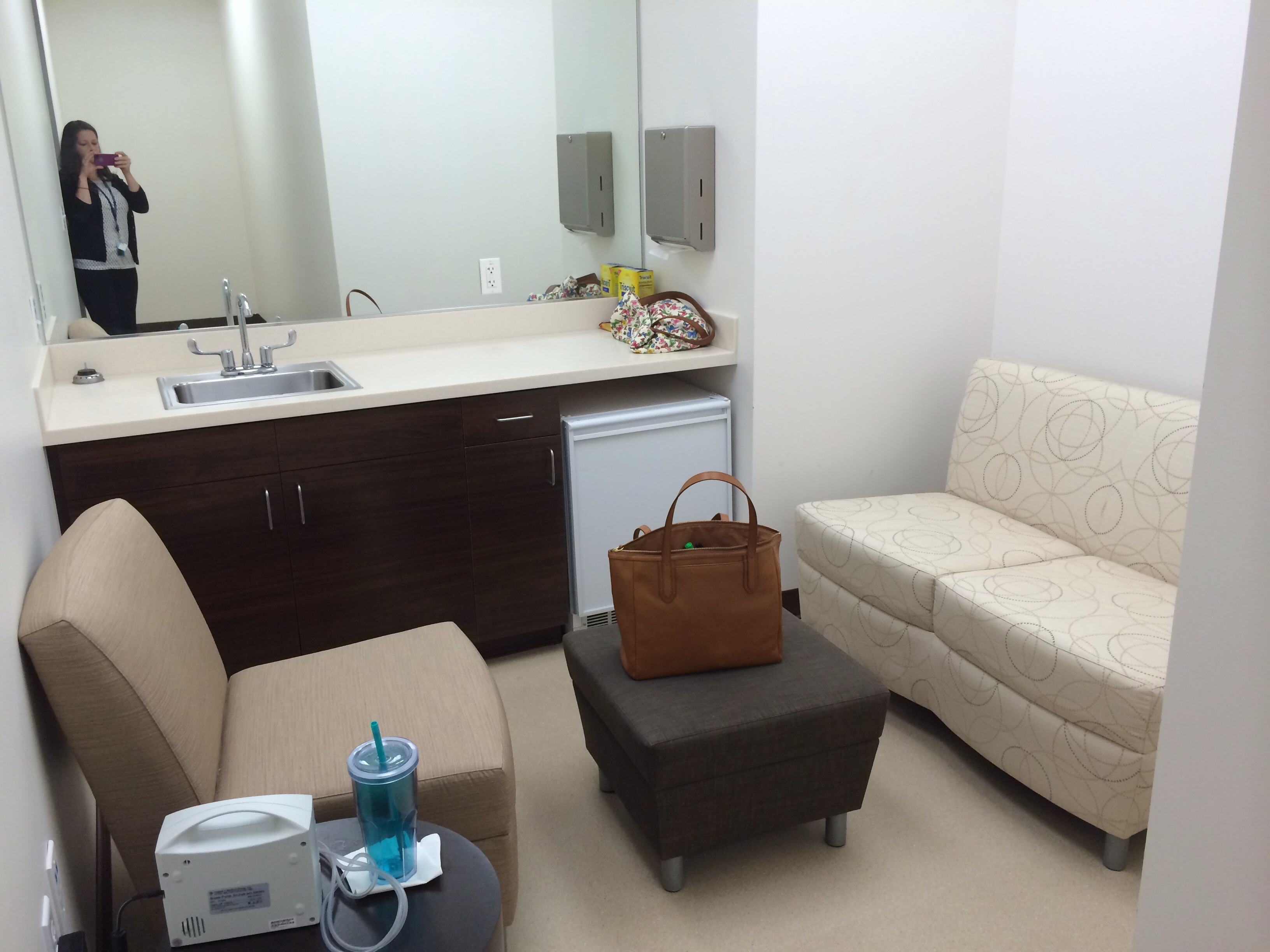 • I work for a city and we built a new city hall in 2010 so they added in this room as part of the plans. It's in a secure area and only ppl who use it have a key (and that's just me for now) so no concerns about being walked in on. I'm very, very lucky!