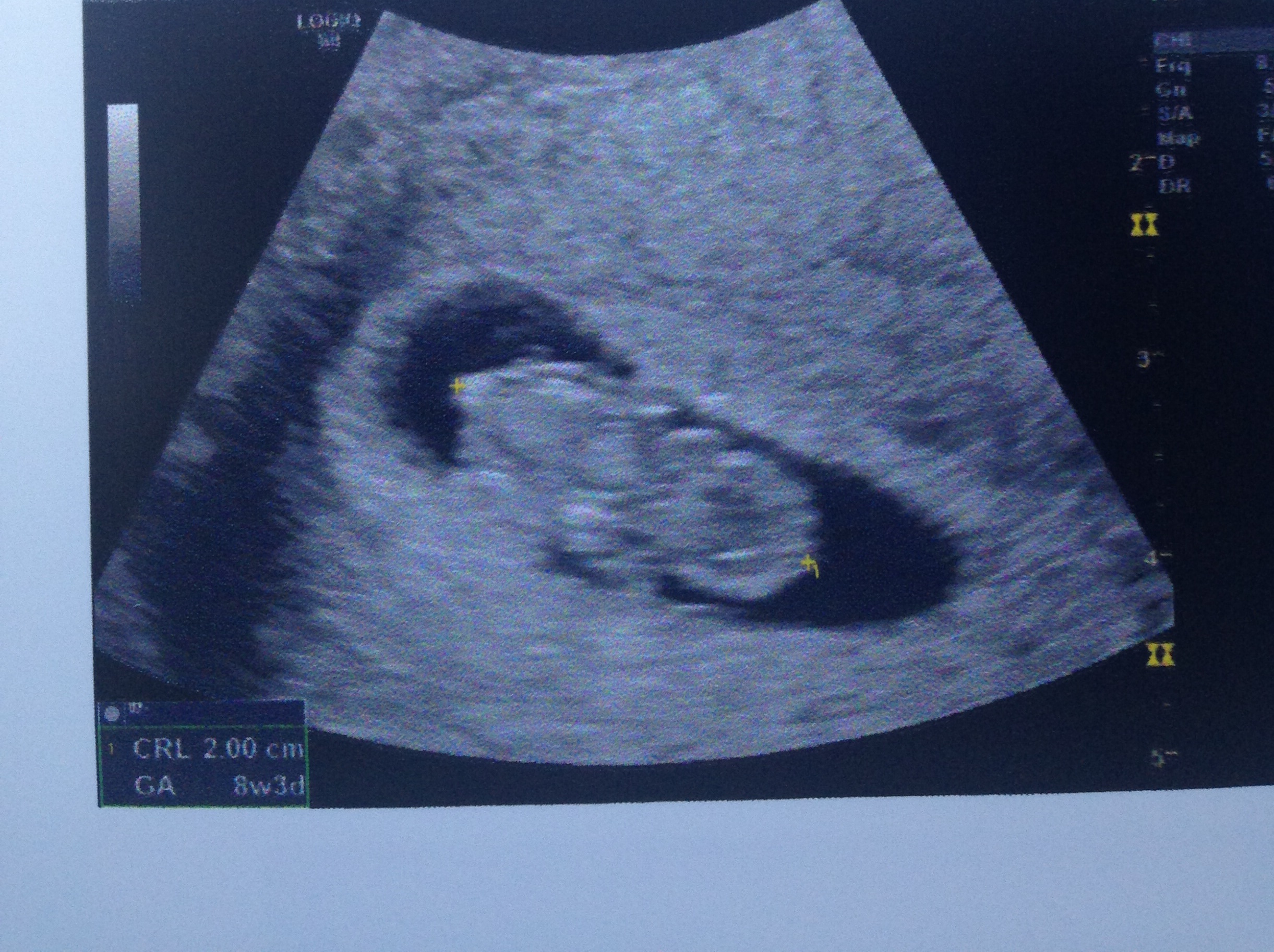 So today I started spotting at work which I know isn't a big deal but for me I've had 3 previous losses and they all started out with slight pink spotting which is what I had today. So as worried as I was I left work and went straight to the GP thank goodness she saw me without an appointment and the didn't even charge me! (I normally pay $85 to see her) she rang a ultrasound place to see if they could fit me in and they managed to squeeze me in, I went in expecting to see no heartbeat and be given bad news cause this is the same week I lost my last baby ( 8 weeks 3 days) I went straight in and straight away there was baby with a heartbeat of 176 and measuring exactly on track! I was expecting to just see a big blob but it actually kind of looks like a baby