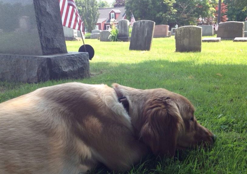 This was last year my golden Hogan laying down as we listen to the speaker at the Memorial Day parade.