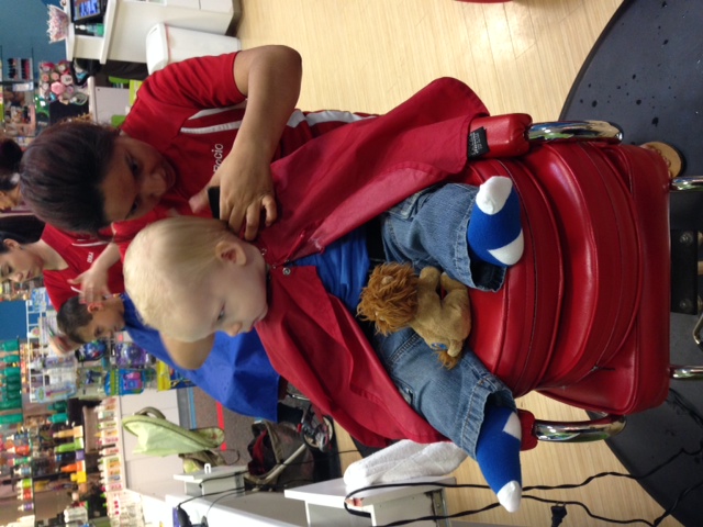 He has hair like Logan, same color and everything. I'm debating getting the back cleaned up. It's like a fuzzy short mullet! It has a mind of its own and bugs the crap out of me. I'm nervous they will cut it too short and he will look bald again.