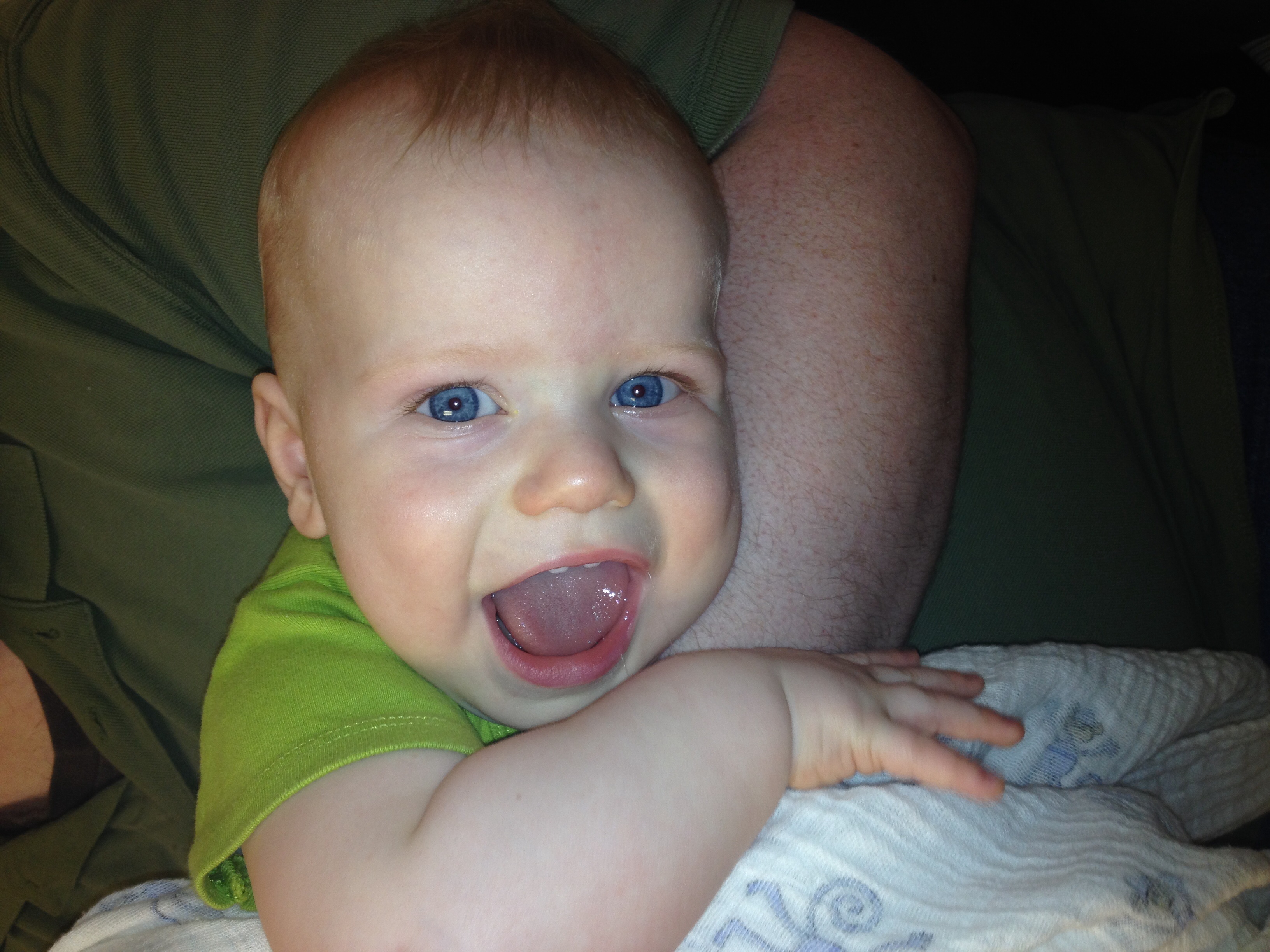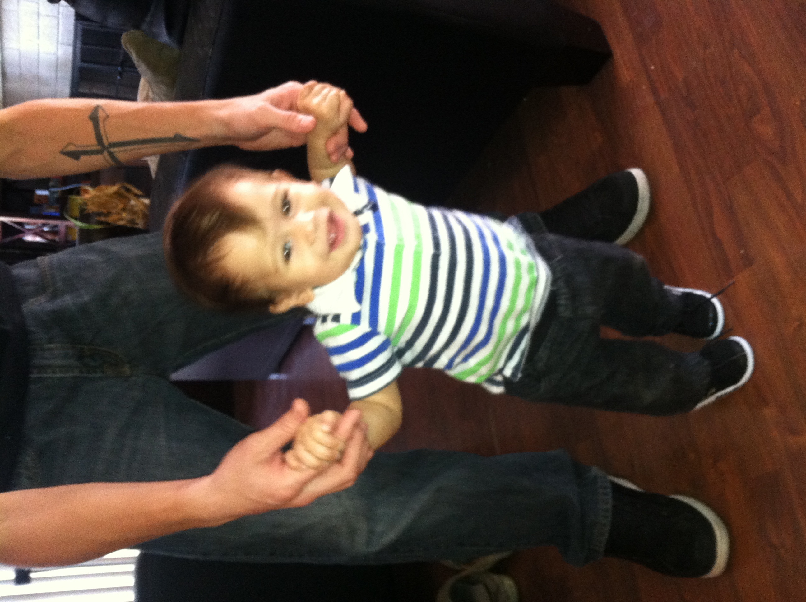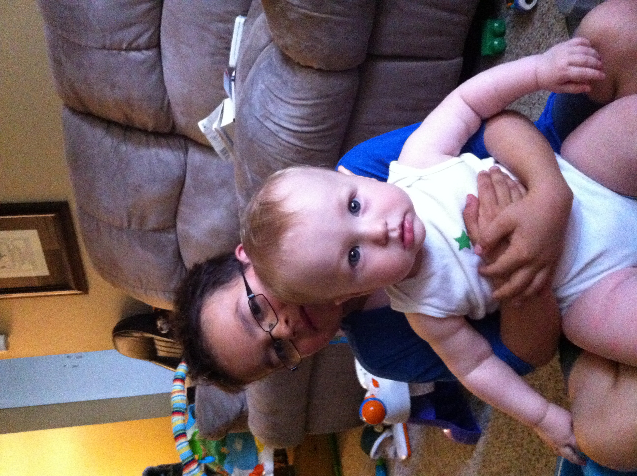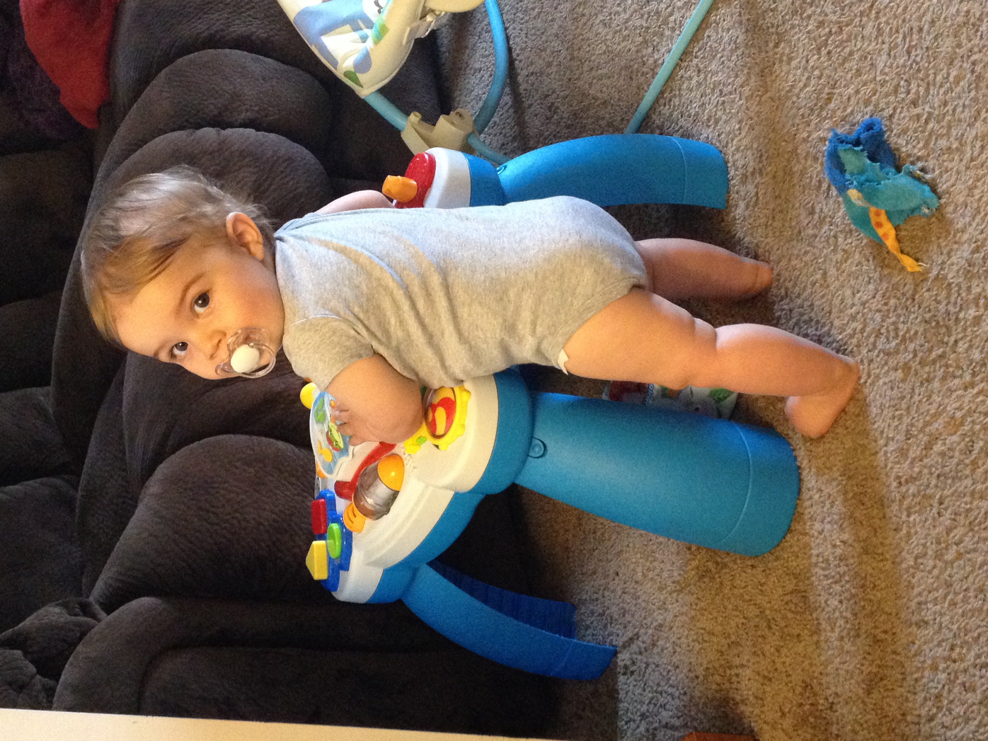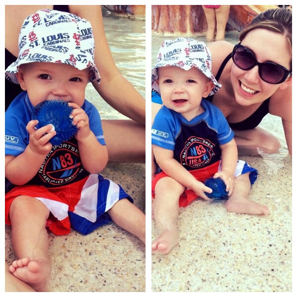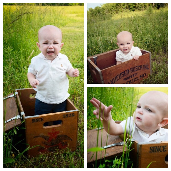 We had family pics taken for my mom's bday next week with my little sister. Here are a few from that. I couldn't resist the one of O crying in the box. It was the first one he stood up alone! And he was pissed!! ...(sorry) and a shot from the pool this weekend!