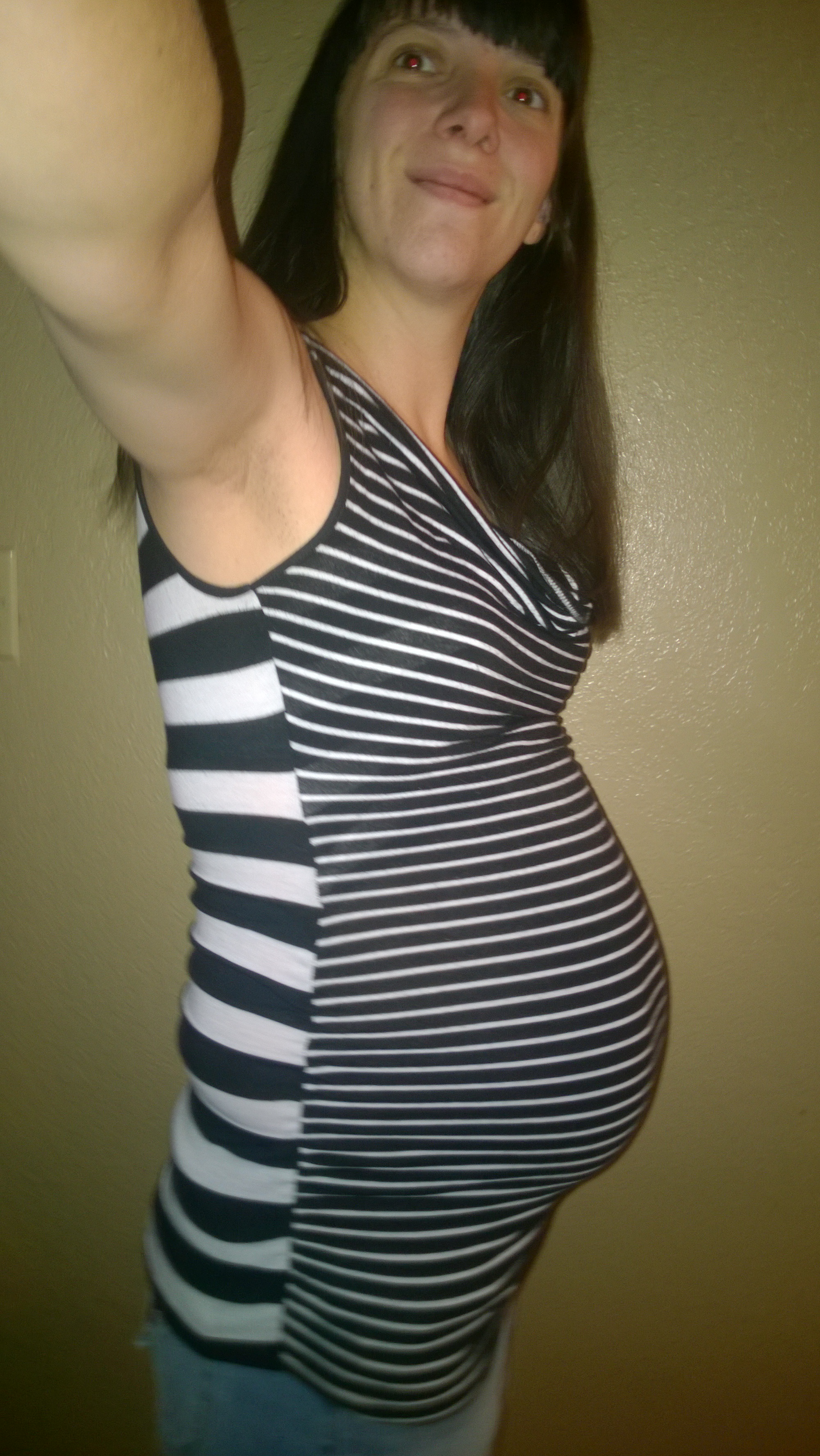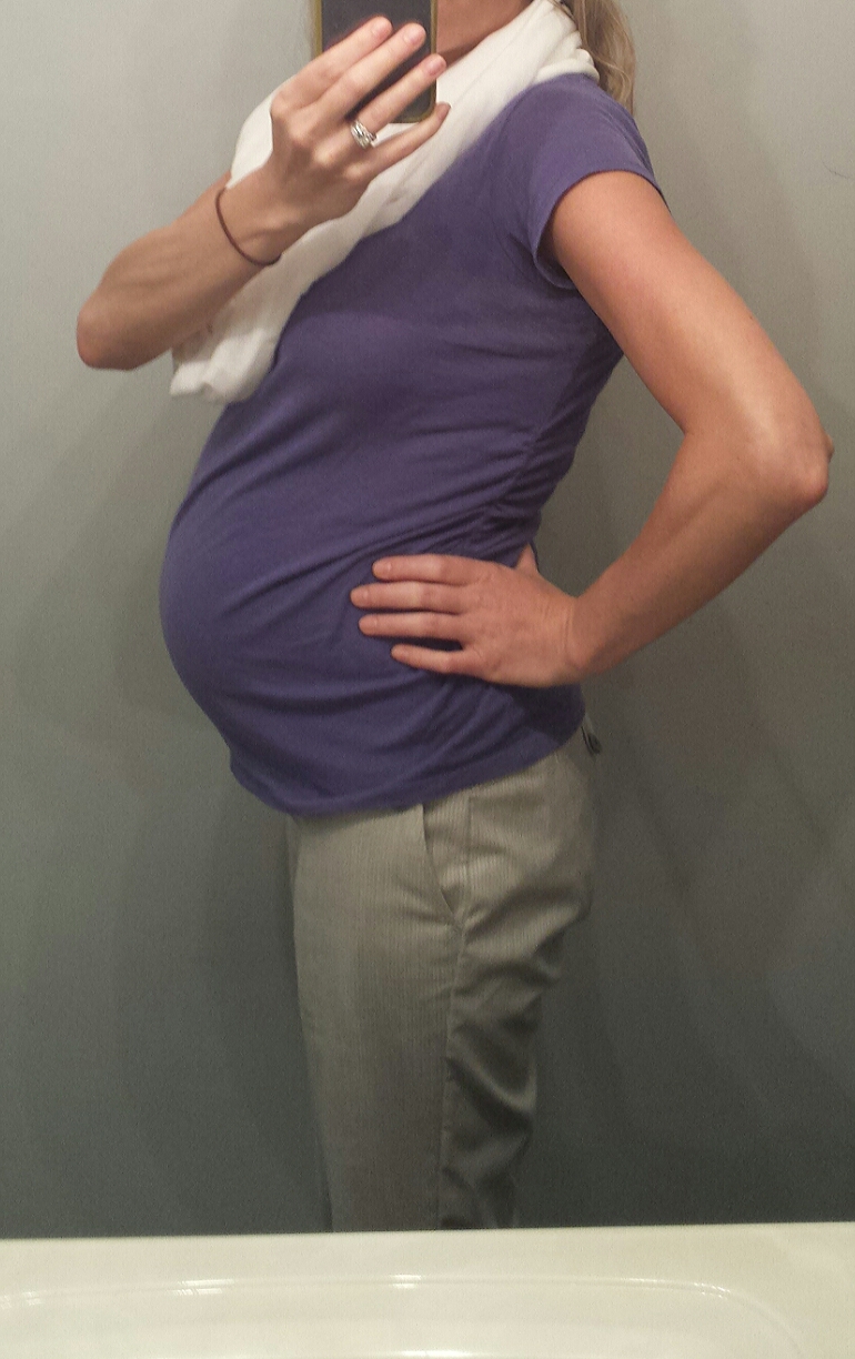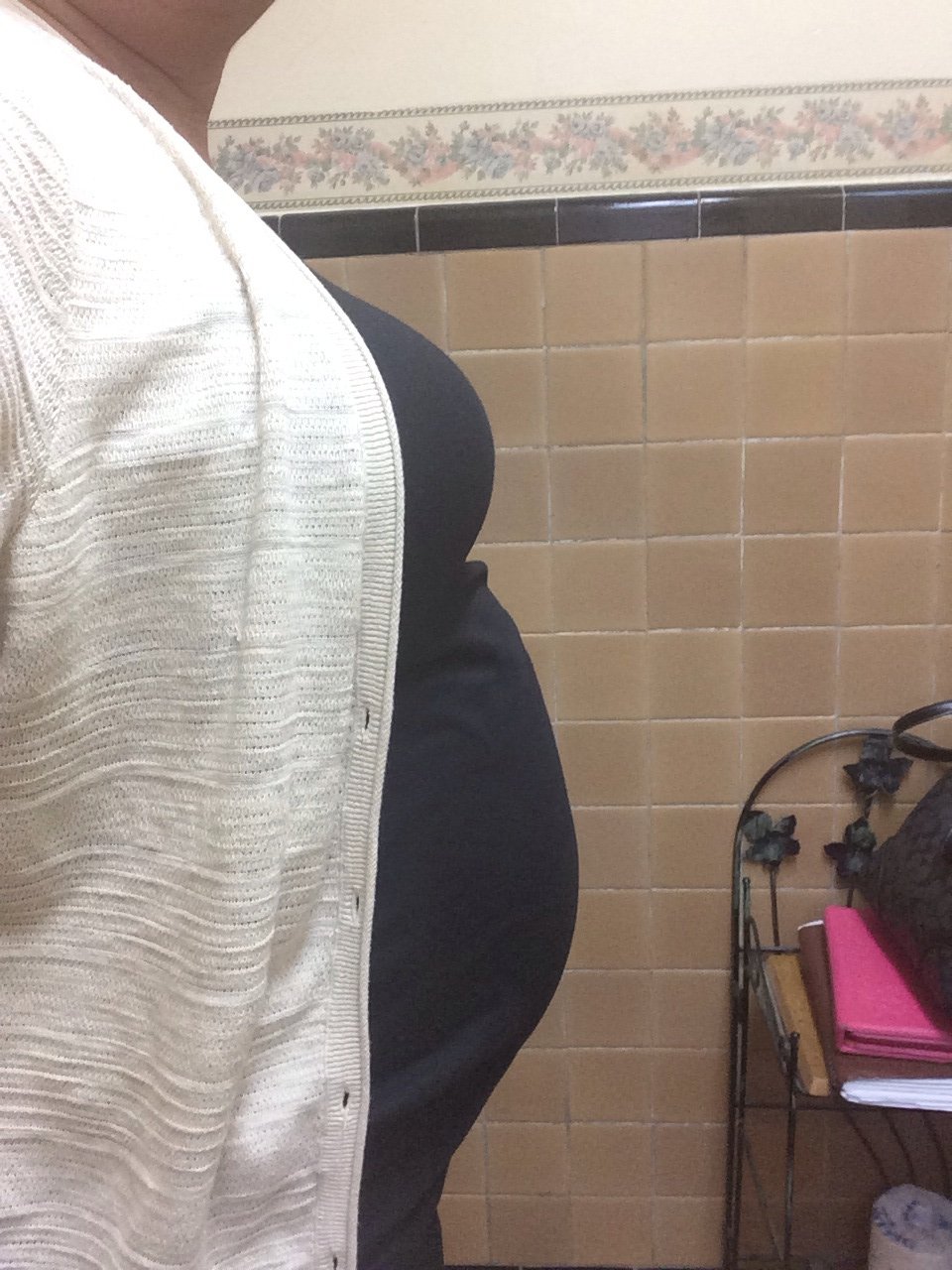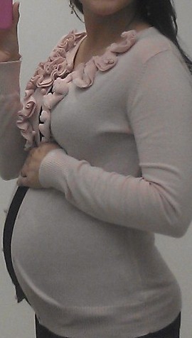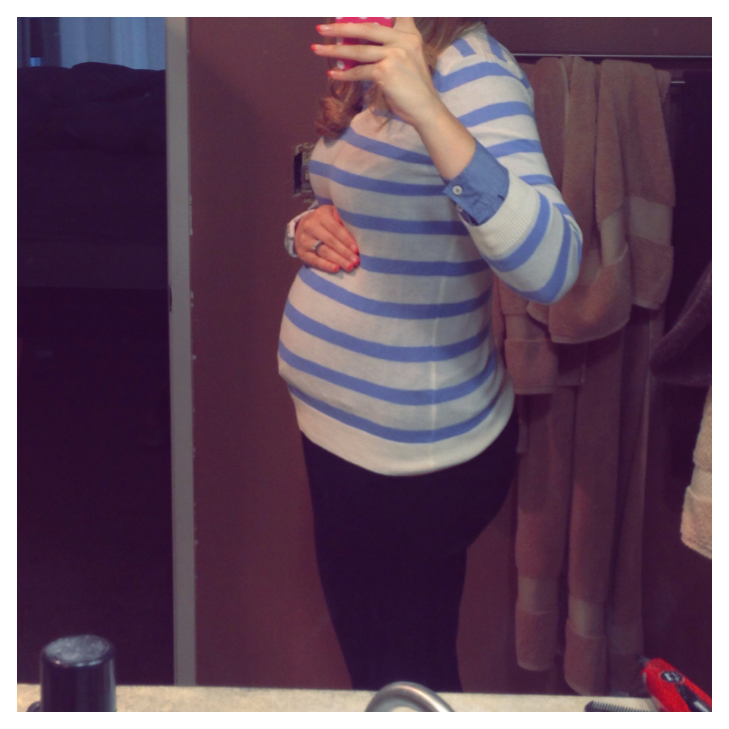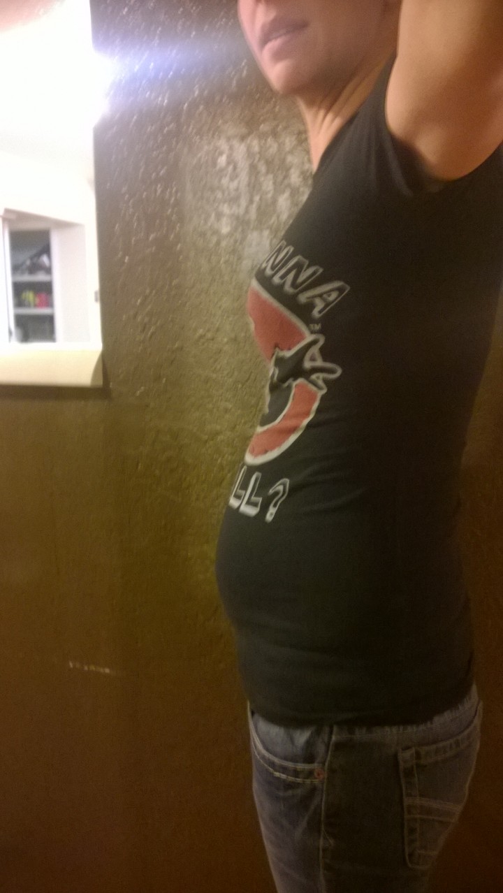 Today at 26+2. Still trying to fit my pre-pregnancy shirts into my wardrobe but this shirt and sweater are creeping up and I think I may retire them until after LO.