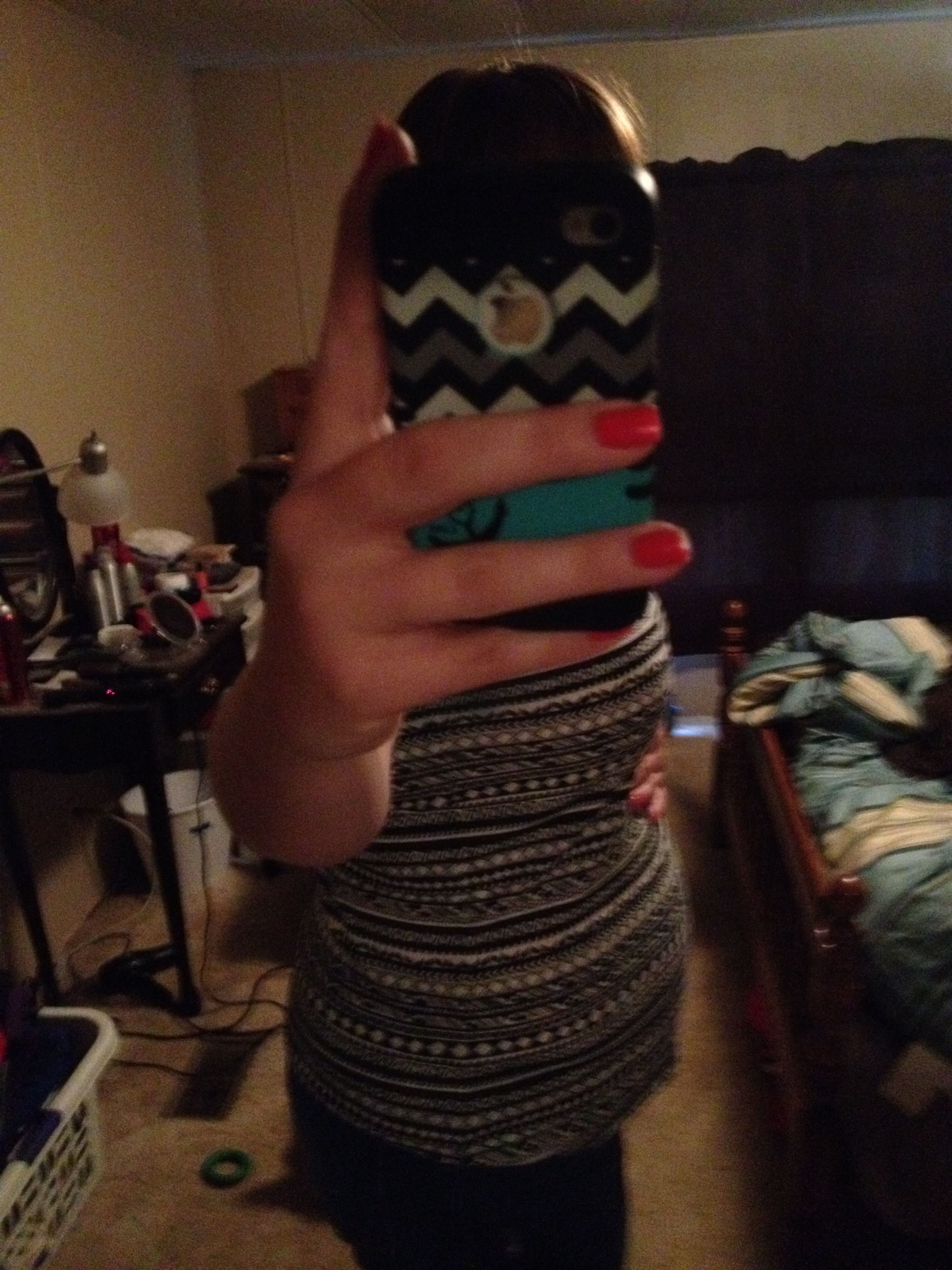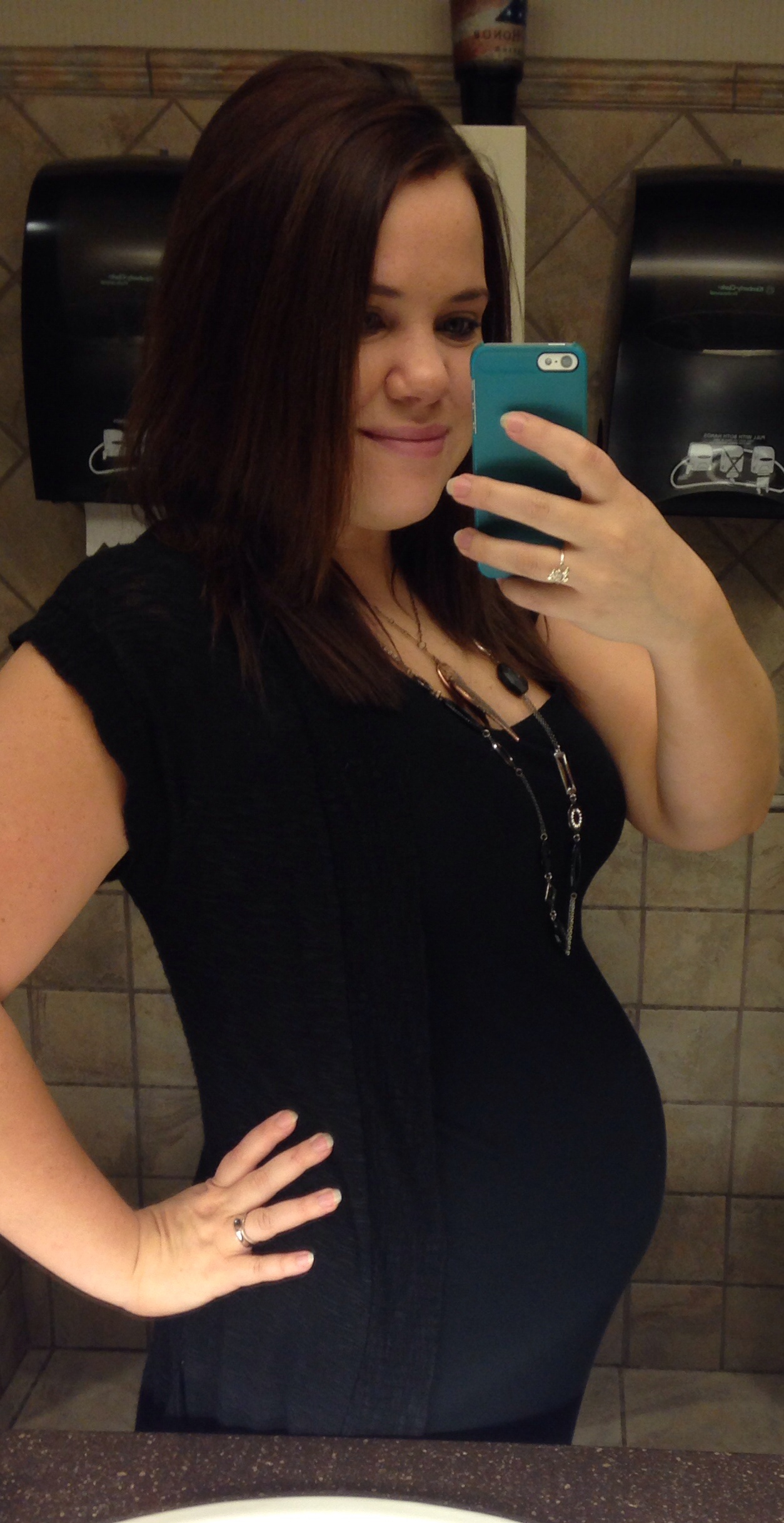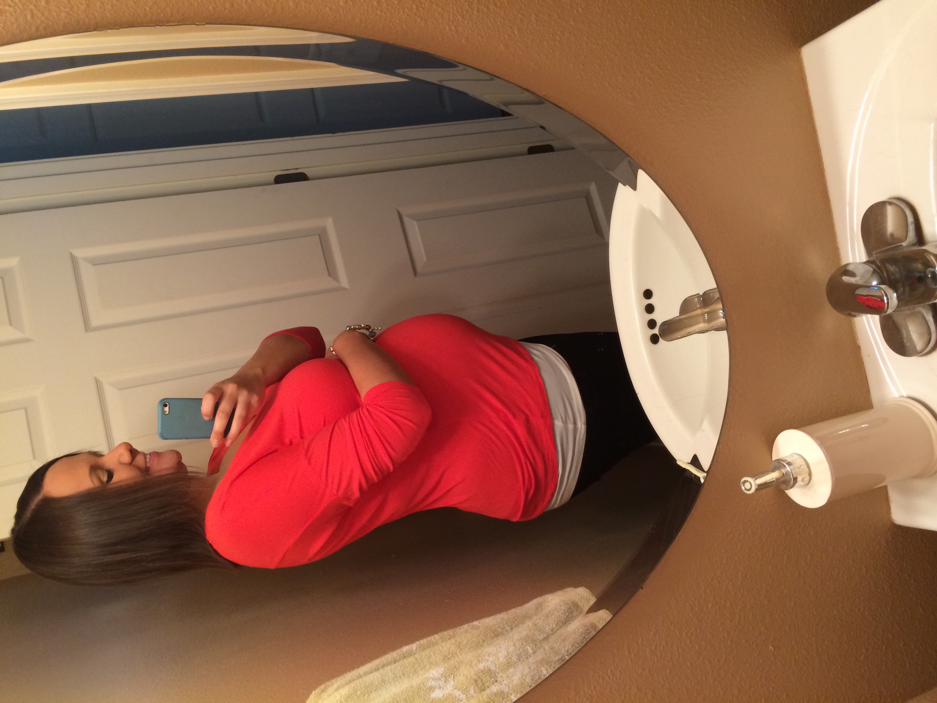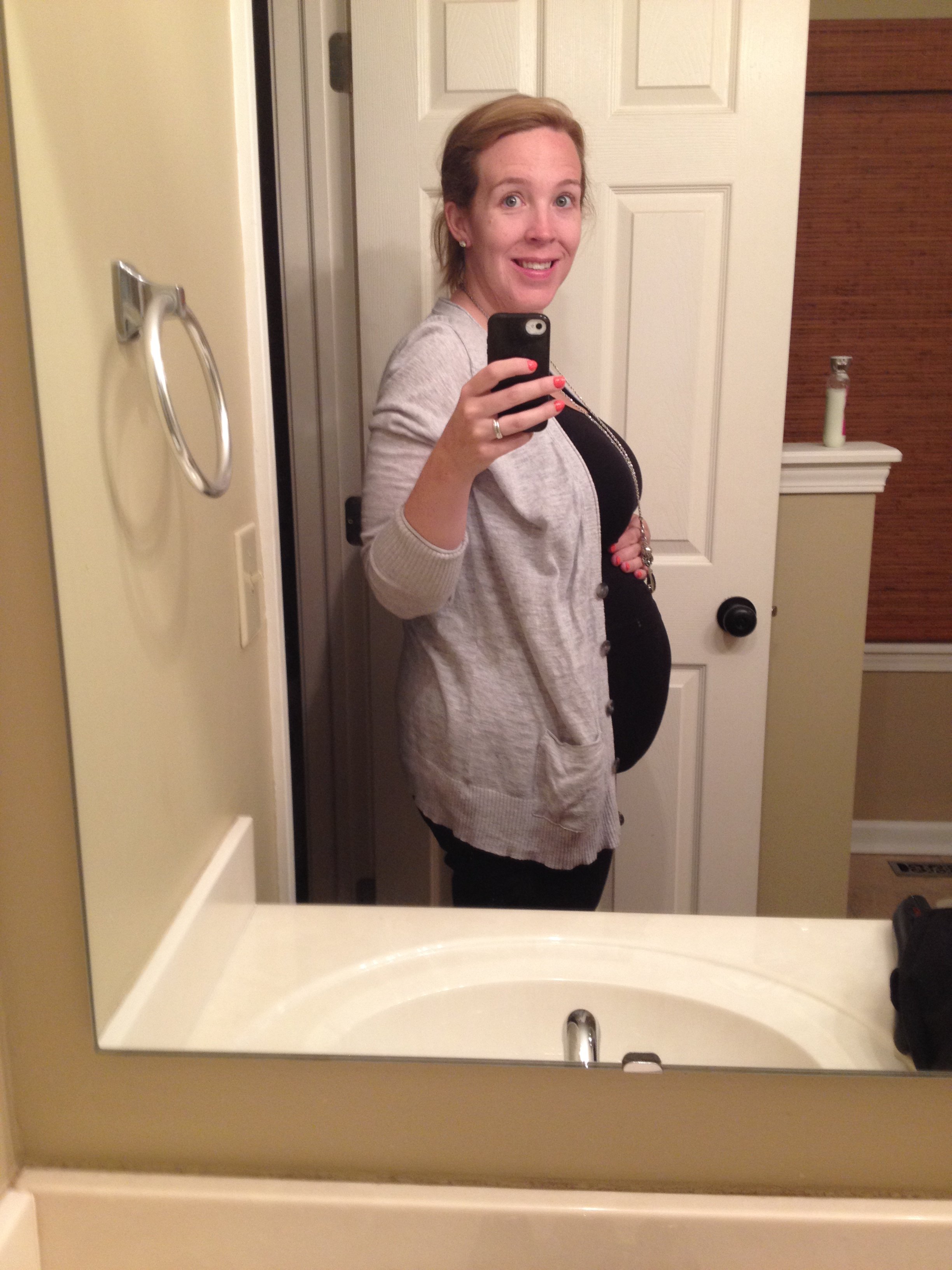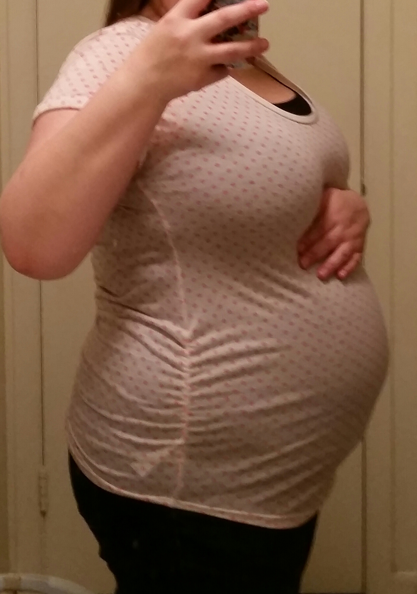 Today at 26+2. Still trying to fit my pre-pregnancy shirts into my wardrobe but this shirt and sweater are creeping up and I think I may retire them until after LO.