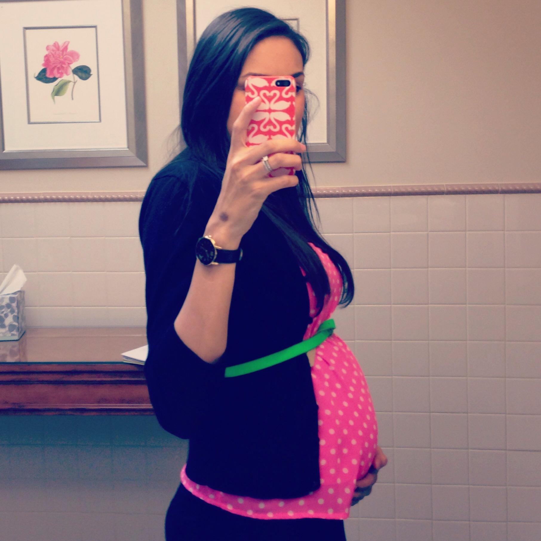 Here I am at 23 + 5. Finally looking and feeling a little bit more pregnant than fat haha.