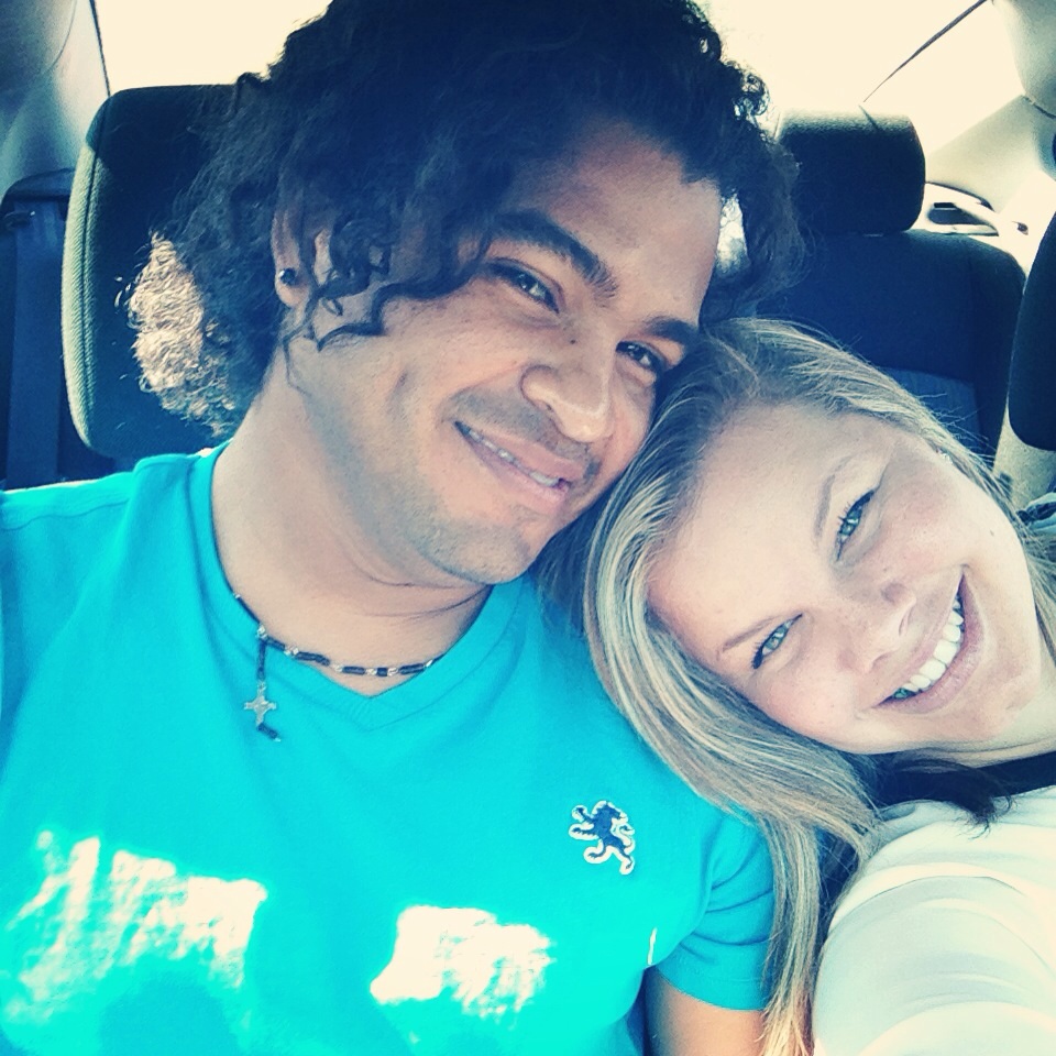 I will start; this may be more fun for me because we look SO different. I am white haha and he is Hispanic.