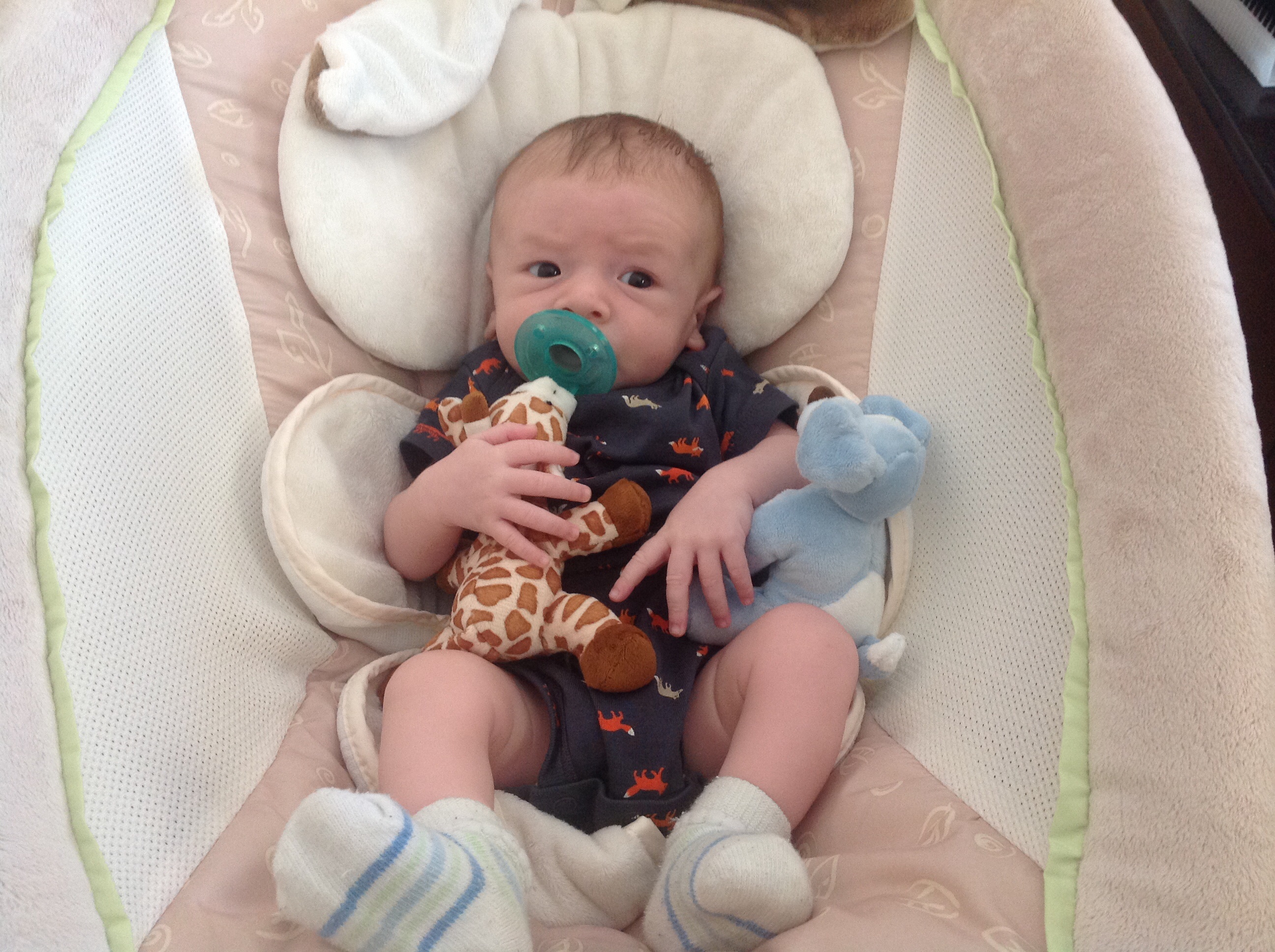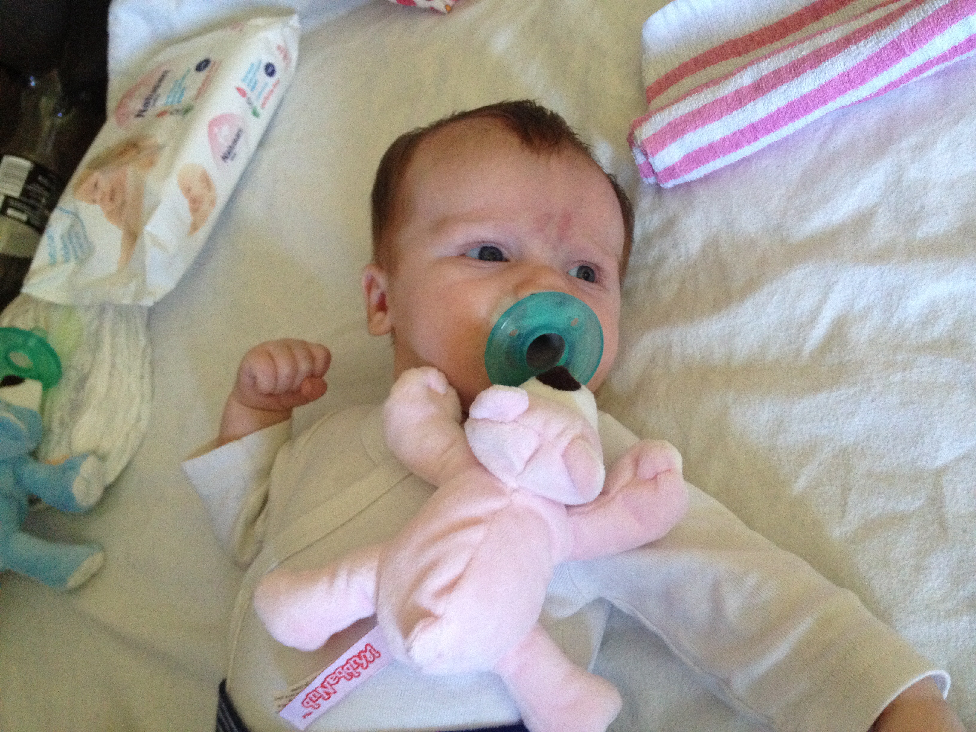 My dog just ate the pacifier off our wubba! Cue over the tired tears. Now he's currently pouting upstairs. I think he gets that it was the wrong thing to chew! And to think I just bought him a nice new toy last night...