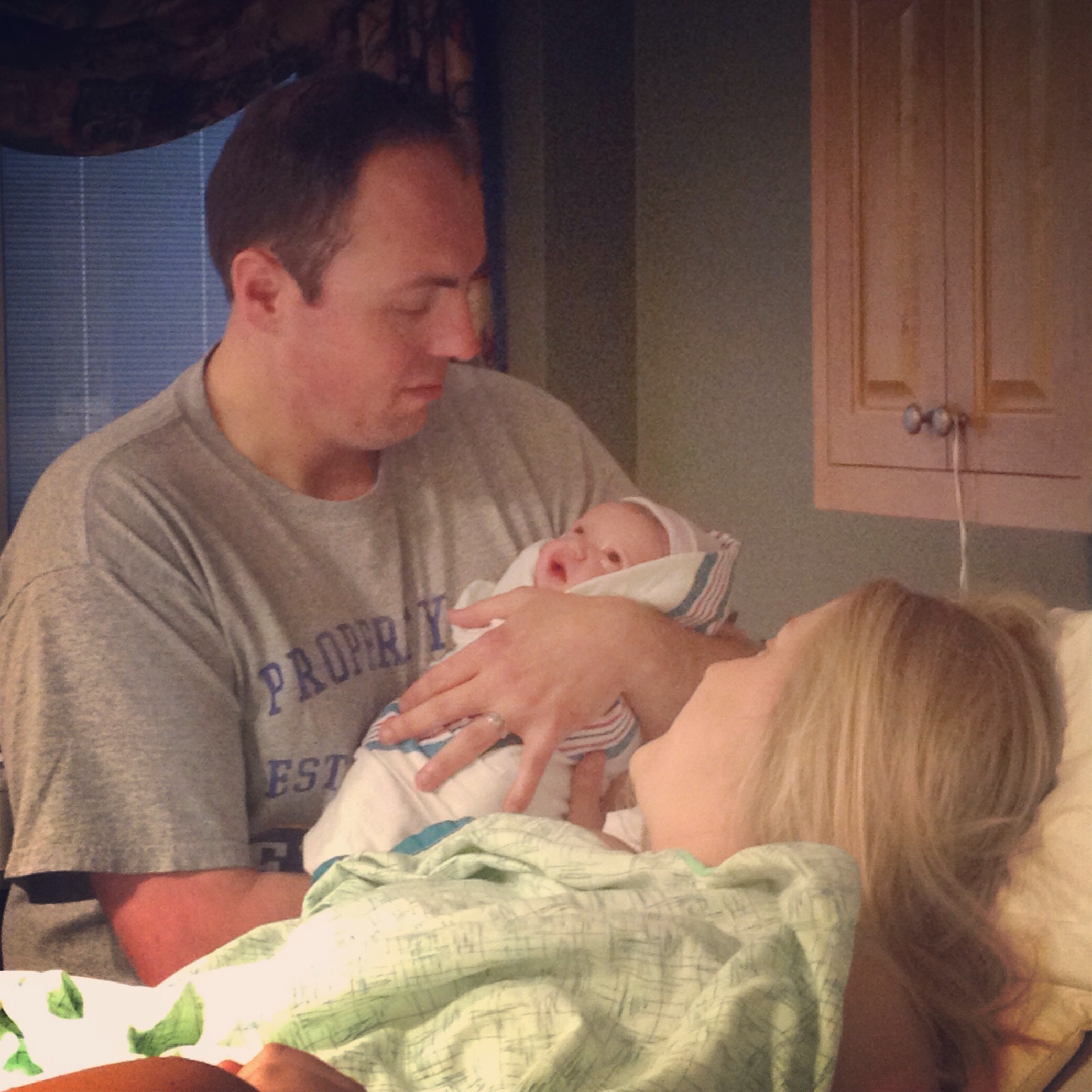 An hour later I was 6cm & continues making good change until 6:15 when I was complete & ready to push! My best friend (who lives 9 hours away) walked through the door right before I started pushing. Talk about a sob fest. I had no idea she was coming.
