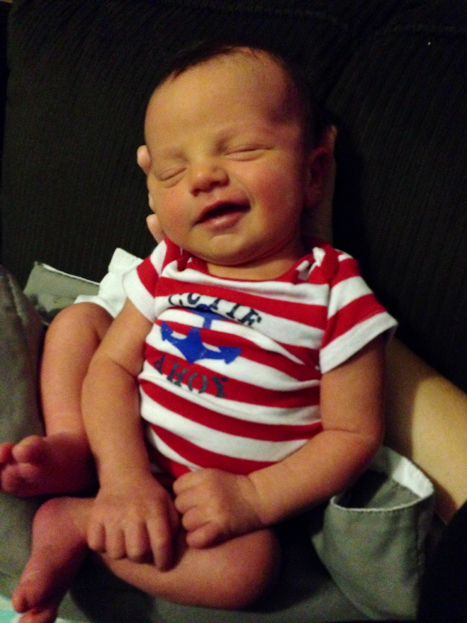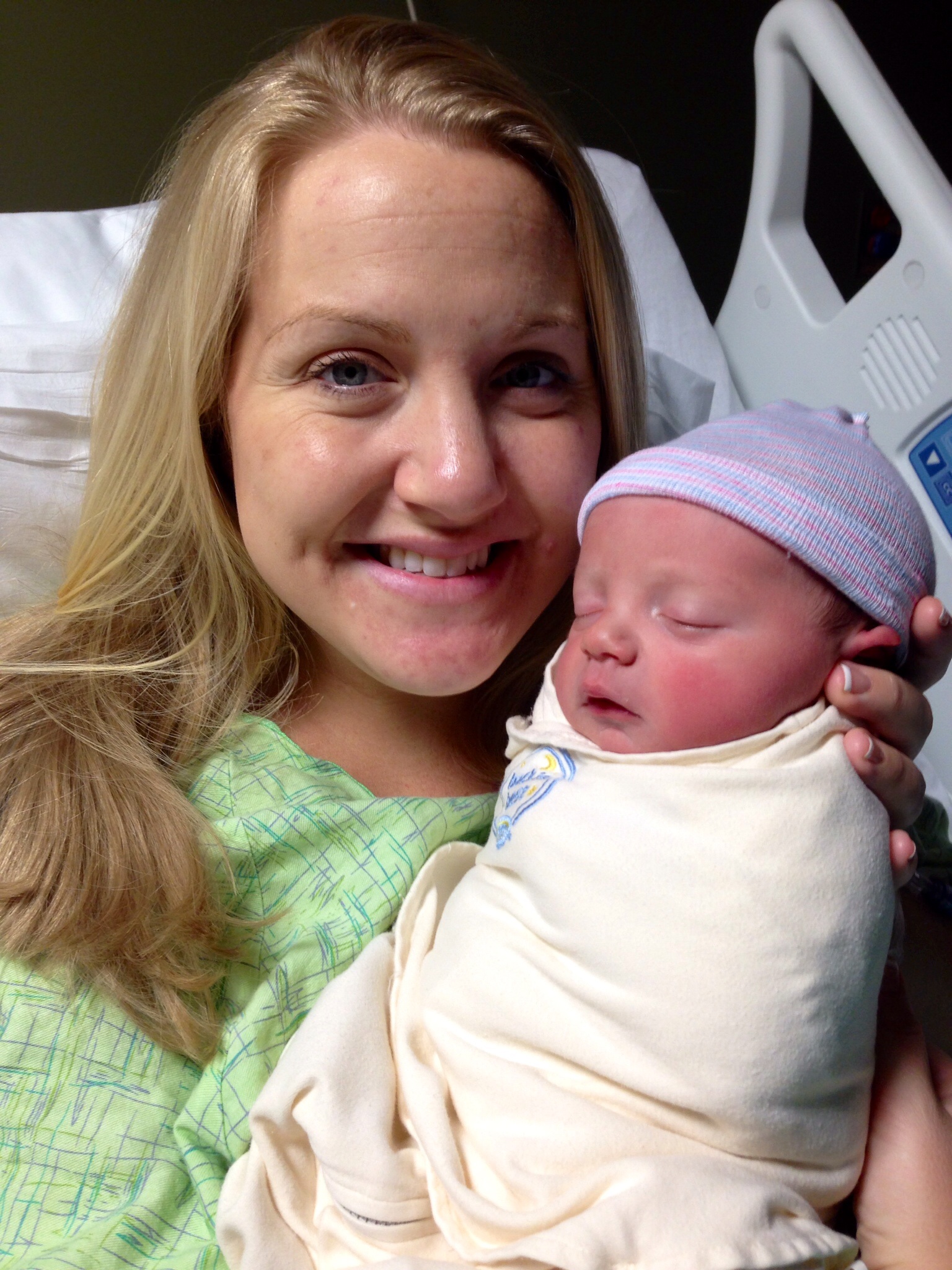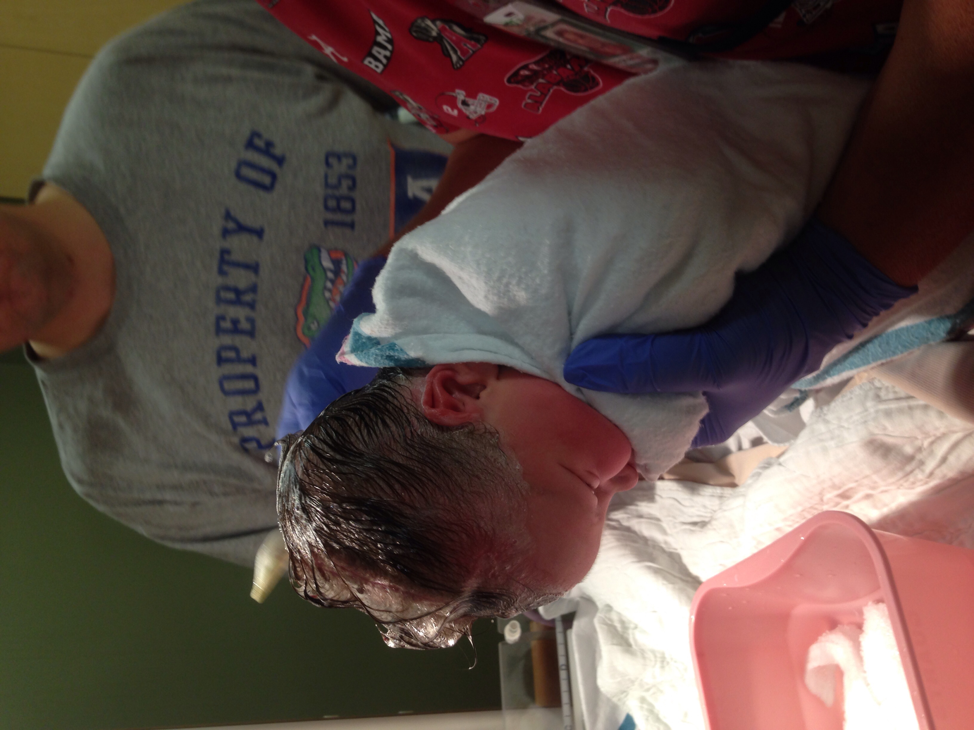 I pushed for 45 min with my husband, my mom, my best friend, and about 6 nurses in the room (I didn't mind bc I work with them all). Corbin Quinn was born at 7:16 pm...of course a nurse would have a shift change delivery! He had the cord around his neck so was a little stunned at delivery, but nothing that couldn't be fixed with a little roughing up by the nurses to get him to cry. It was a wonderful experience & even with the tears and painful bottom it was worth every bit!