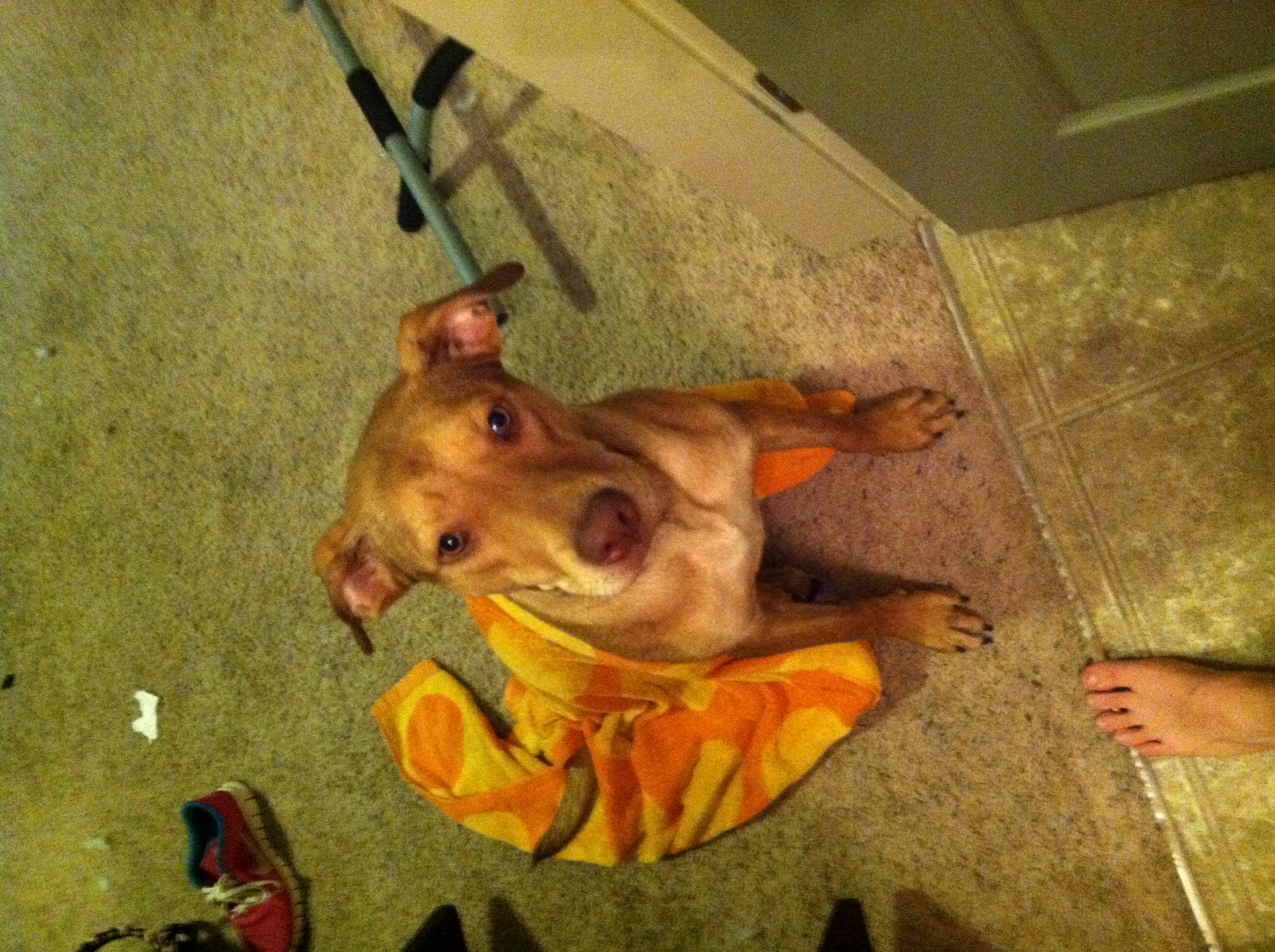 Haha I would never bother someone with my puppy! What brought it up is that the other day my Bestfriend and I were walking our dogs and Layla walks up to this man and he gives her this look and slowly moves backwards! I thought it was strange. But someone did mention to me how Layla looks like this dog all over the news. Apparently a pit attacked a boy and a cat attacked the pit? But Layla isn't even a full pit bull and not all pits are mean. It depends on how the owner raises the dog. Sorry, rant over. I'm just a dog lover:) this is Layla!