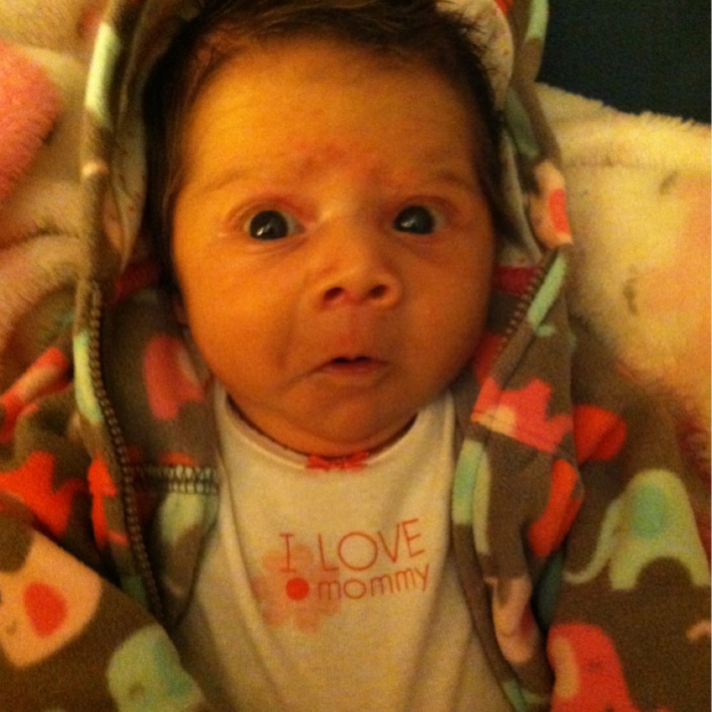 We've started saying she's part gremlin because of the sounds she makes sometimes. She makes us laugh constantly. She likes to mess with us by either peeing or pooping on changing table, in pediatrician's office, as soon as we put a fresh diaper on her...