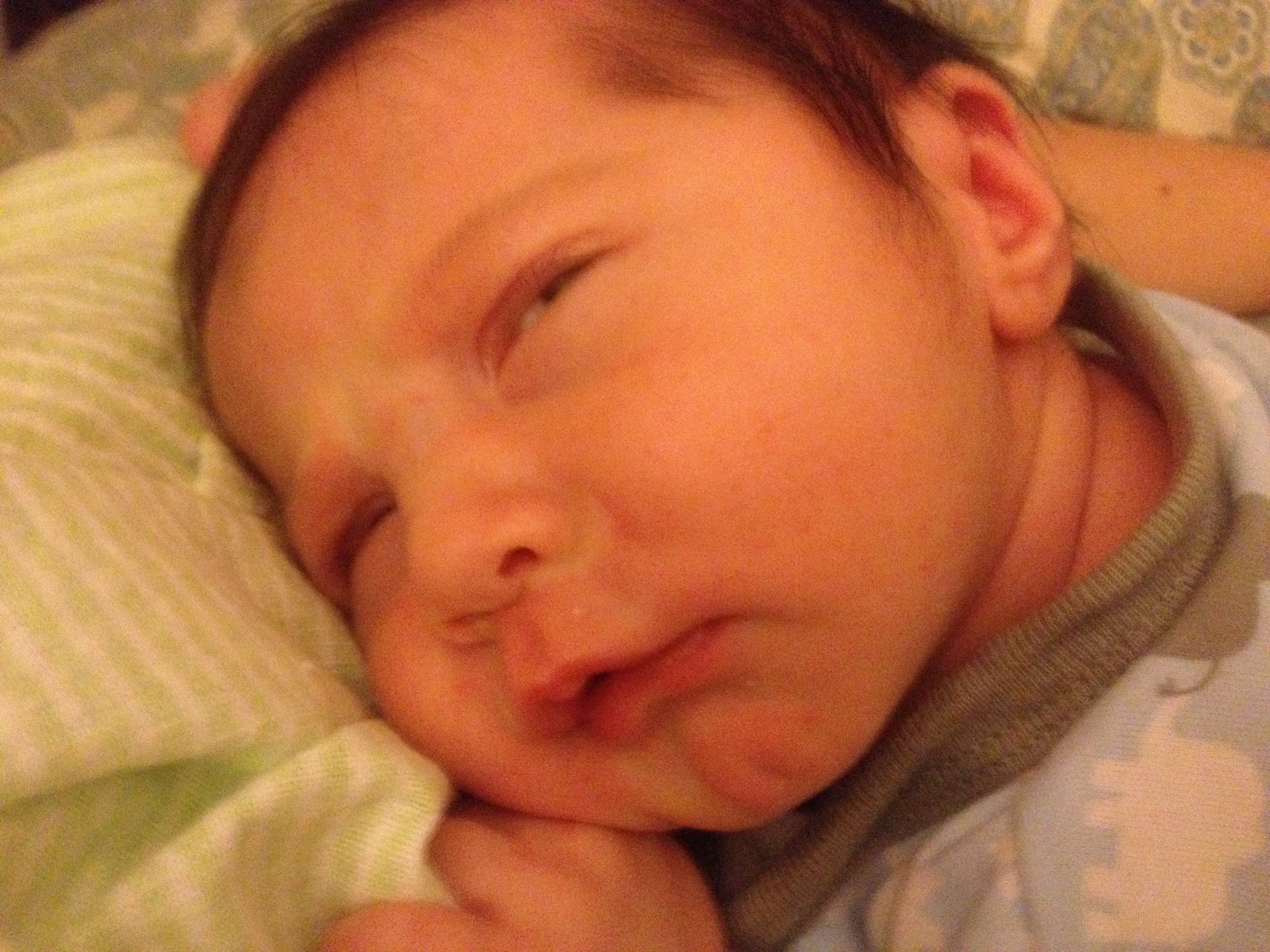 He sounds like a frog when he had the hiccups and when he poops he stretches both of his legs which is really cute since he keeps his legs in the fetal position mostly from being breech in my belly for so long.