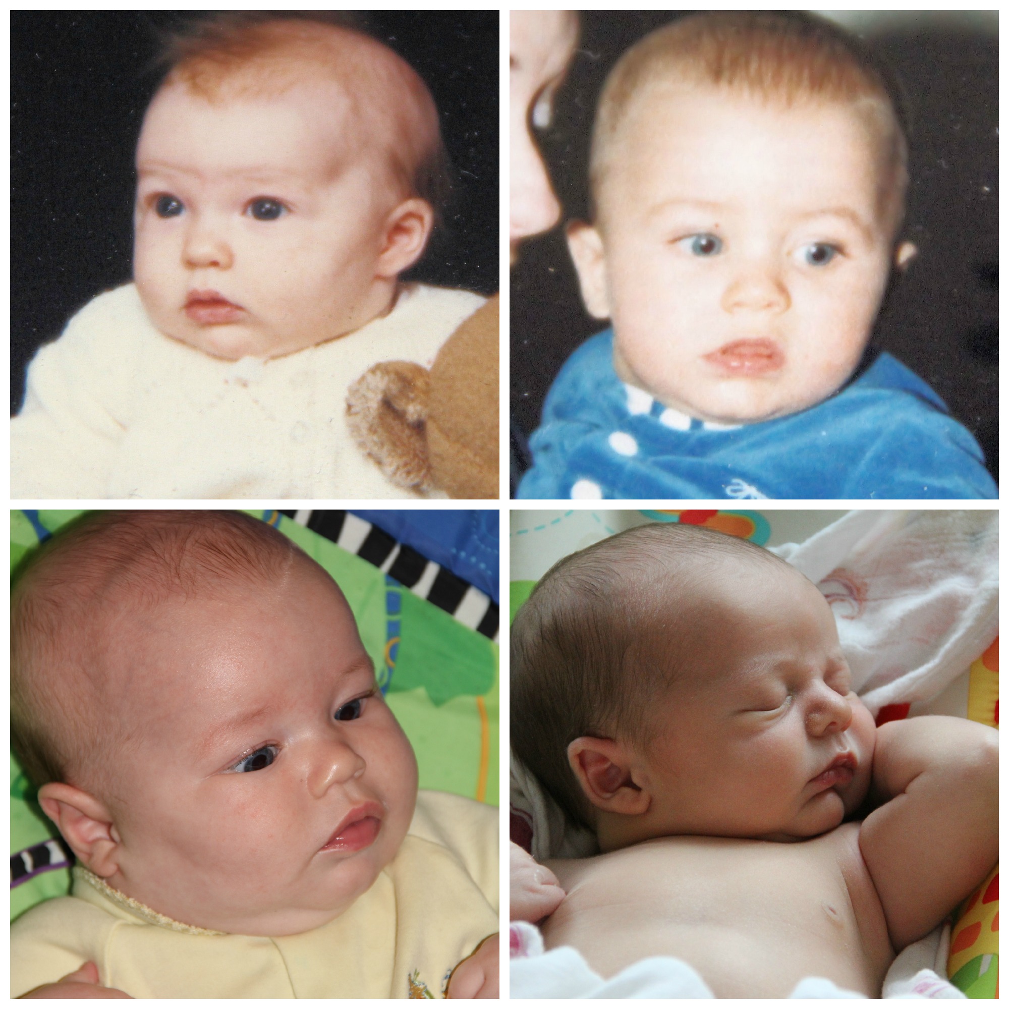 • Here we are!  I'm top left, DH is top right, Catherine's bottom left, and lazy sleeping Charlie is bottom right.  I think both kids resemble me more physically, but oh goodness do they have their daddy's expressions!  I also think C is a bit more like DH in temperament, at least compared to how I was as a child, but he disagrees based on how I am now :)