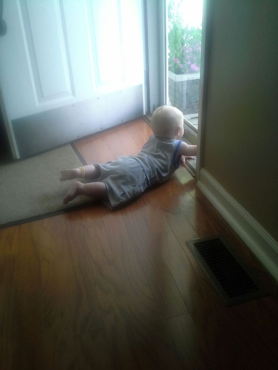 Emerson isn't crawling yet, but he's not quite 8 months old, either. Pretty sure he's gonna be doing this until he's 4.