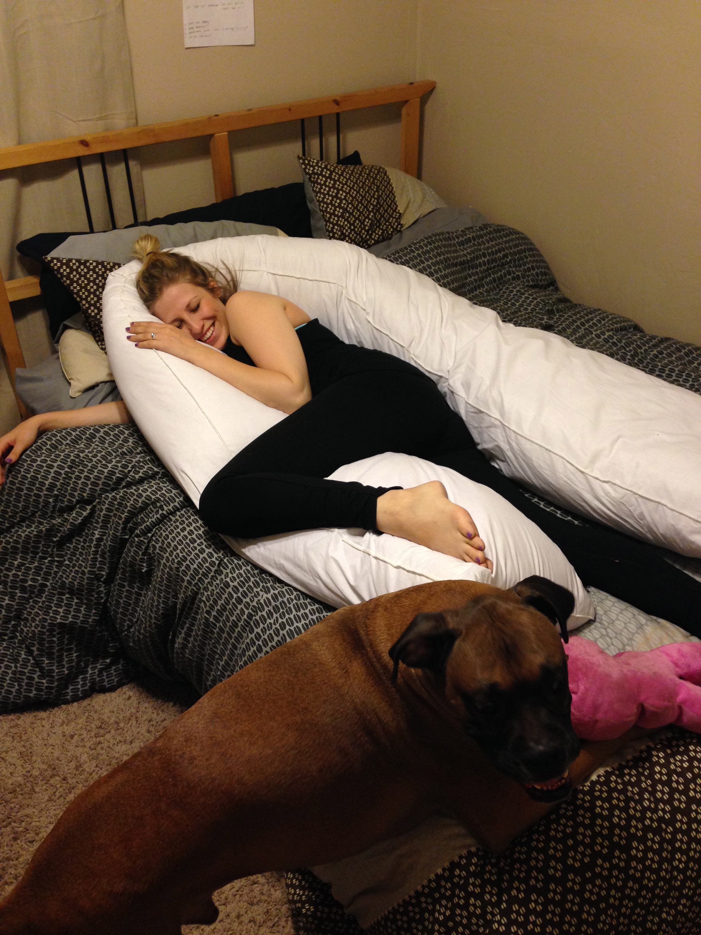 I have a body pillow from Target. I don't like that it takes up a 1/3 of our queen size bed. So I end up on the couch. 2nd I tend to move a lot when I sleep. So having to move myself, pillow, and rearranging the blankets, is just a hassle. In which I most likely end up on the couch. 3rd my shoulders hurt when sleeping on my sides (my chiropractor is my favorite to help with this) So with all that being said. 8 to 9 times out of 10 I end up sleeping on the couch. I go to bed with DH and then once he is asleep I go to the couch. I am having to take one of my head pillows to help my bump feel right with the space between me and the back of the couch or to snuggle with. So the body pillow is big and annoying to move. But when first falling asleep in bed I do snuggle with it. Until I go to the couch. ">