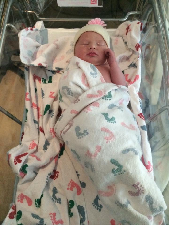 I was surprised but excited that I was going to soon meet my little girl. I didn't get to my L&D room until about 4pm but they were good about getting things rolling quickly. I got my antibiotics for being GBS positive and pitocin was started. I was already 3cm so had a head start. They broke my water around 9pm and soon after I got my epidural even though I was still 3cm. A few hours later they checked me and i was 6-7cm about 2 hours after that I was 9.5cm, and the nurse called the doctor. As the doctor was arriving I was feeling pressure and her head was right there ready to come out. 4 pushes and she was out! So much different than my 2 hours of pushing with my first one. Her cord was wrapped around her neck which could have explained the decelerations in heart rate. She was placed immediately on my chest as I had requested and I couldn't believe how much she looked like my other daughter. They were the same length when they were born and within an ounce of each others weight too! I had an amazing epidural this time around which I could not be more thankful for.